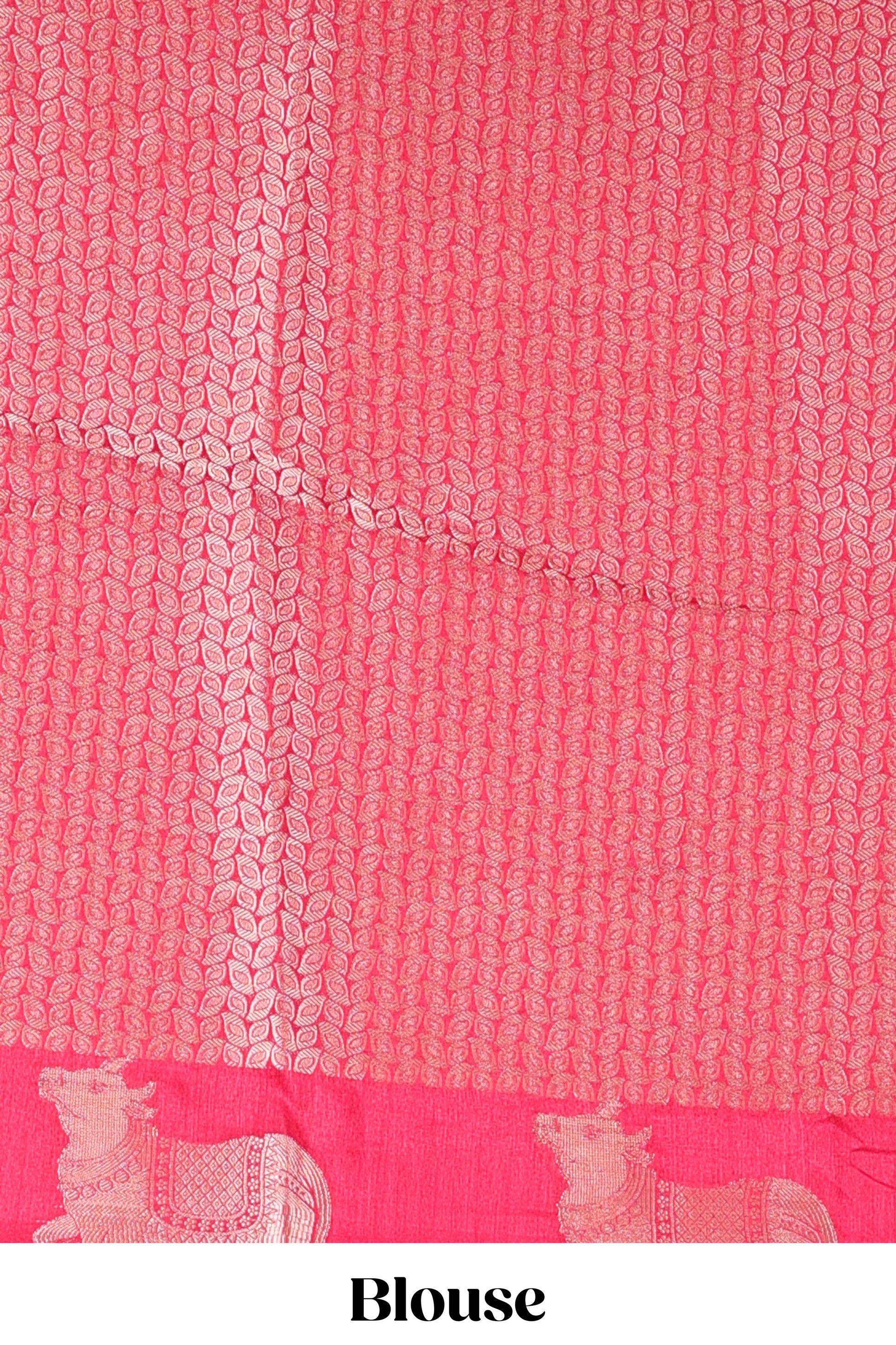 Lavender viscose dola silk saree with zari butta weave, pichwai motif border and contrast blouse