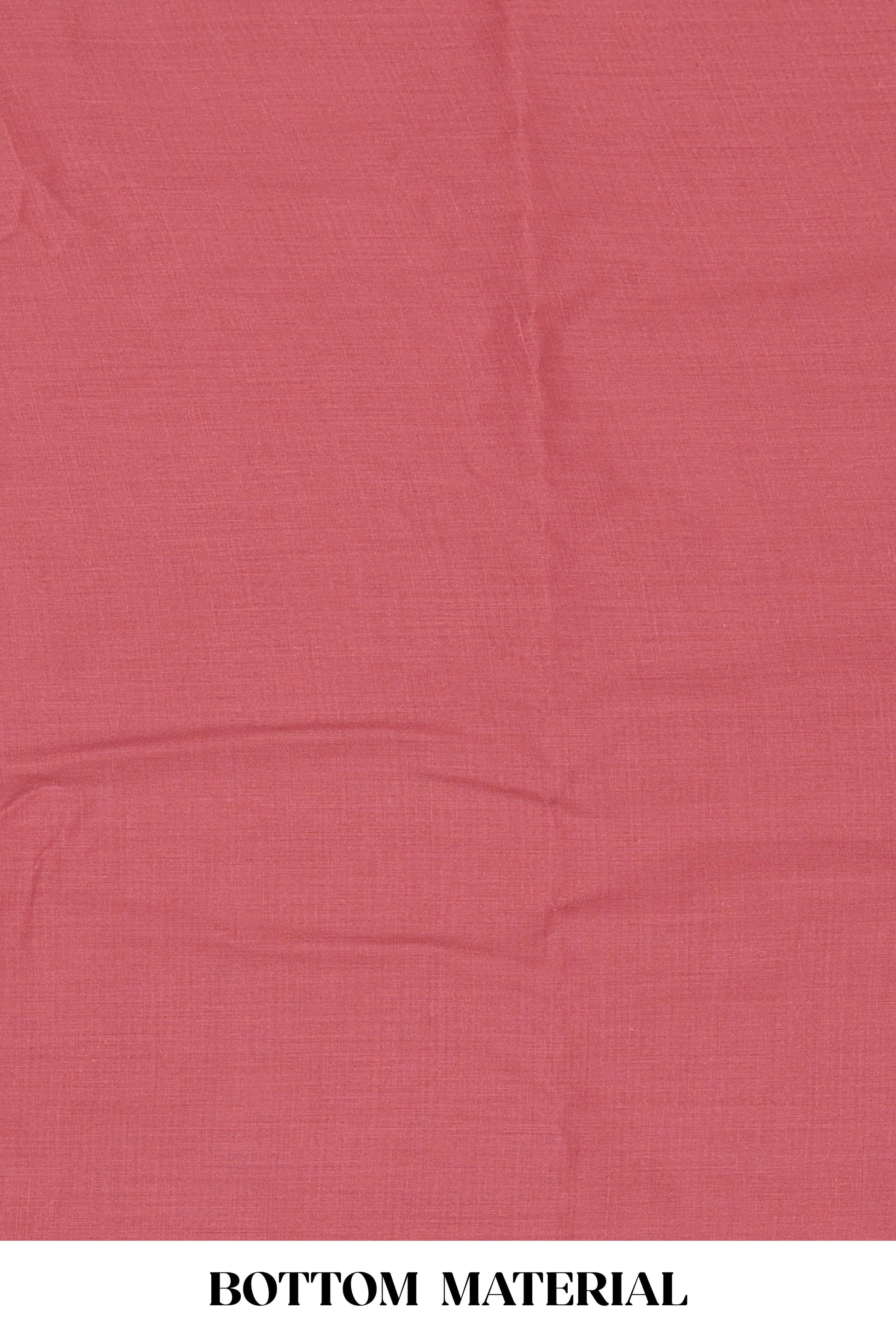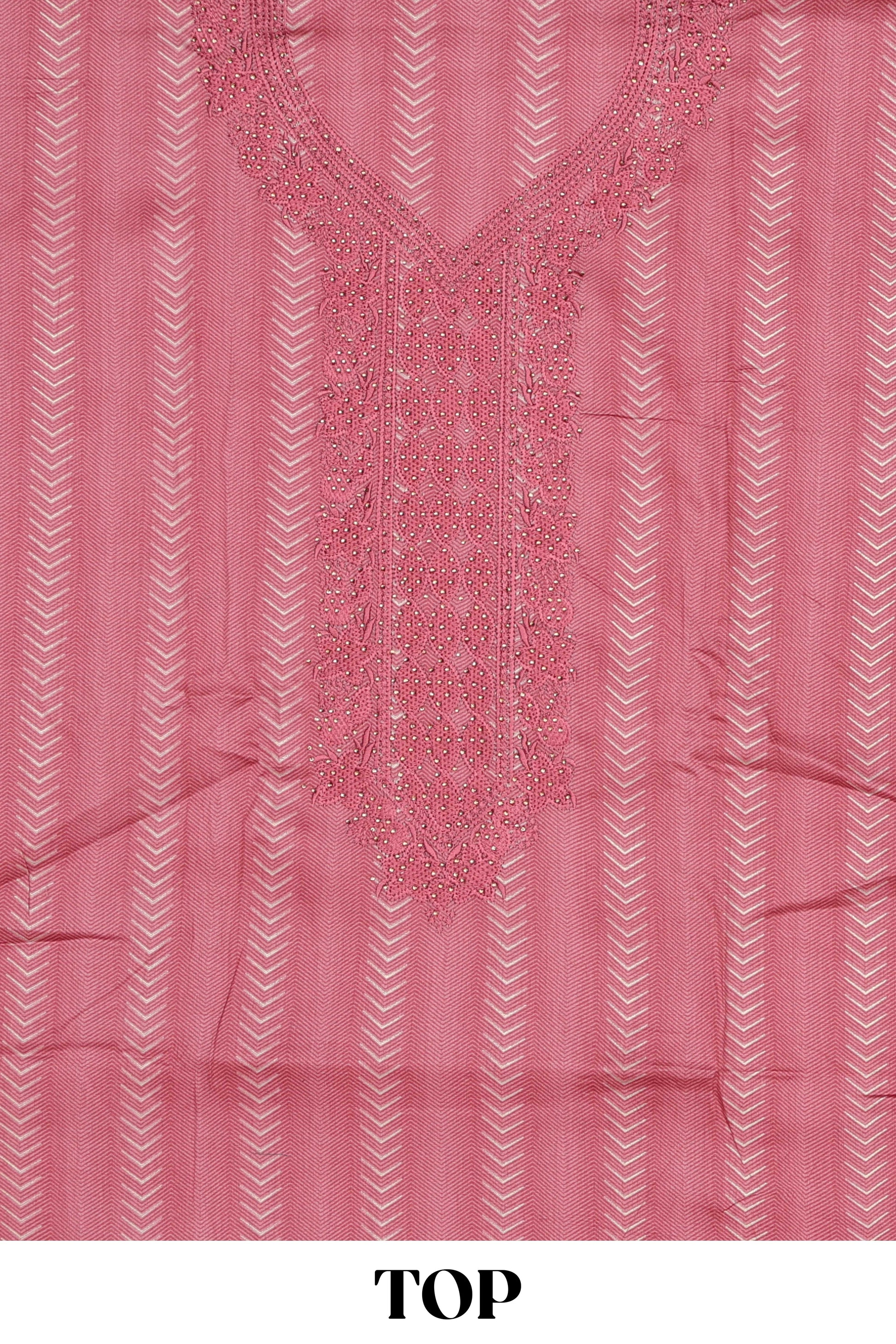Light red cotton embroidered chudidhar material with bottom and striped dupatta