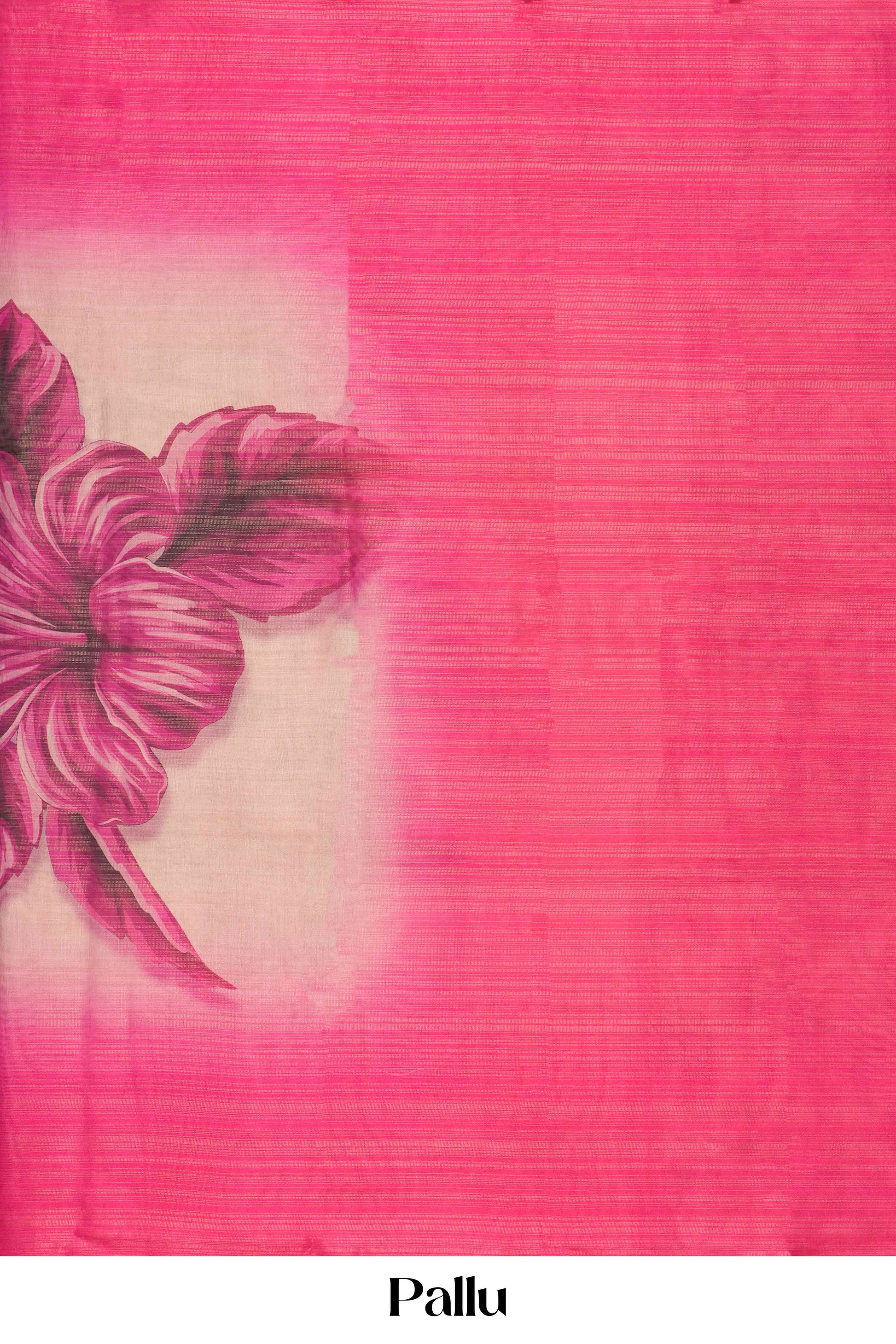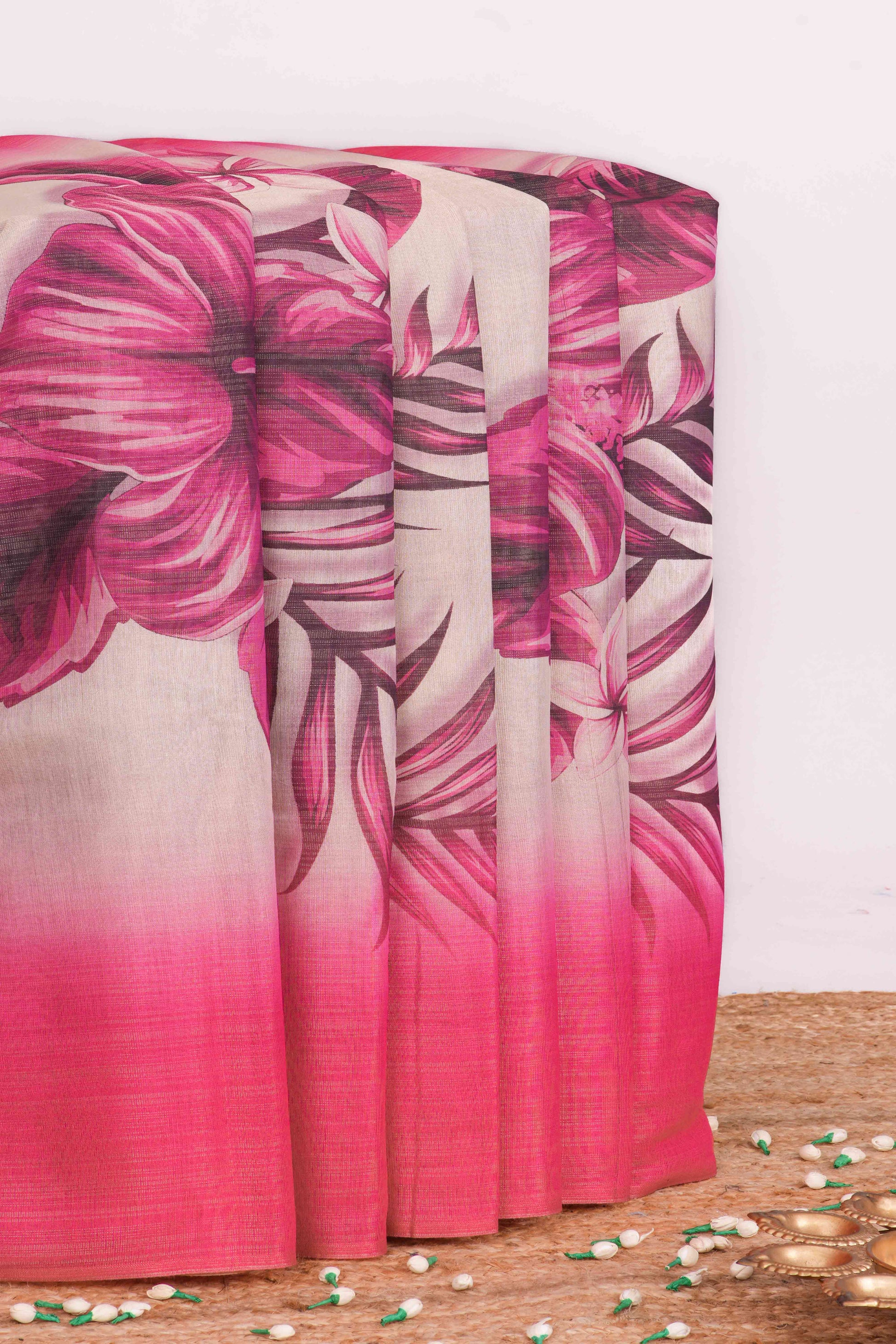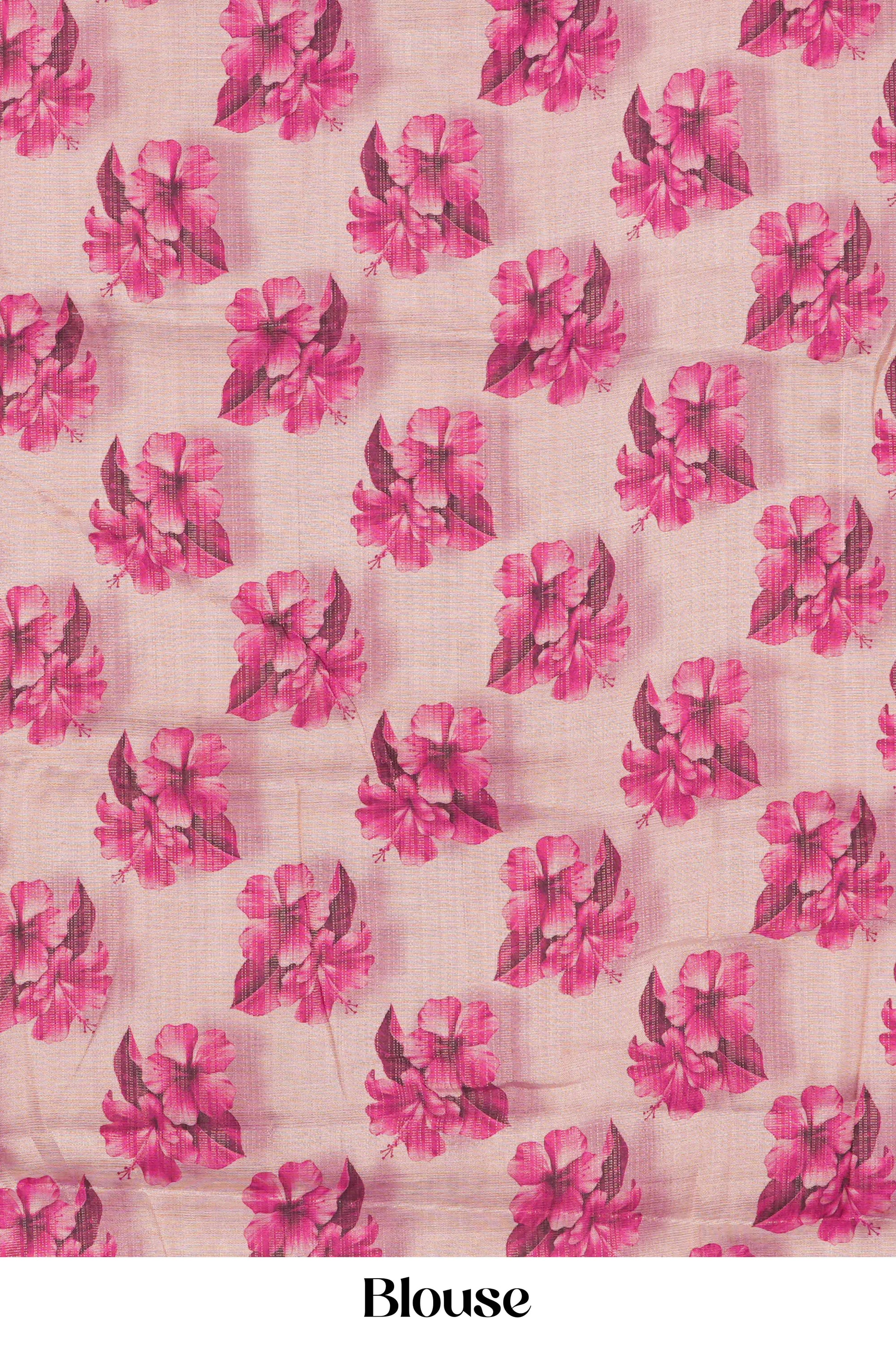 Sandal Linen Tissue Saree Floral Digital Print Contrast Pallu