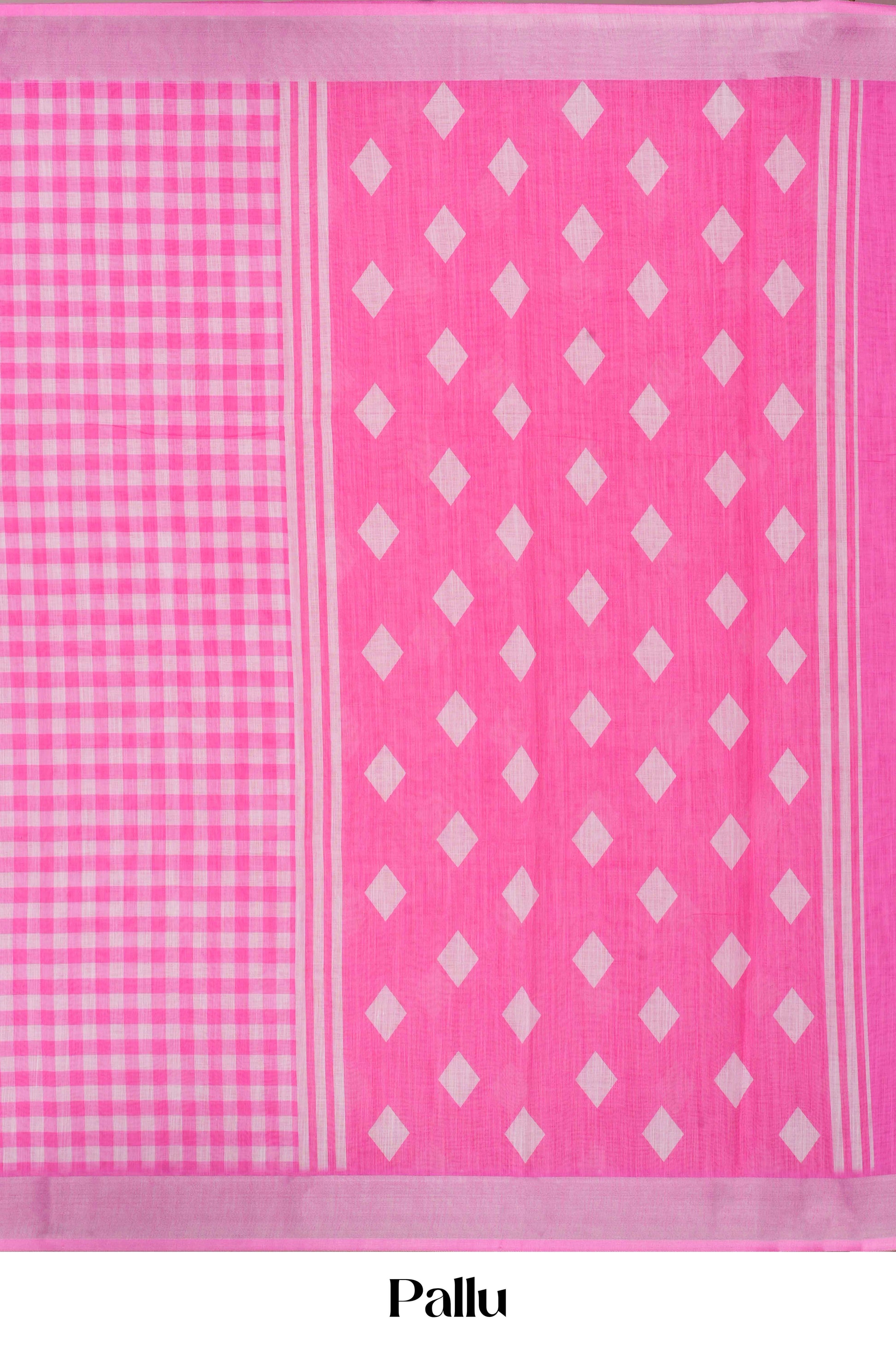 Pink Linen Checked Sarees With Self Border
