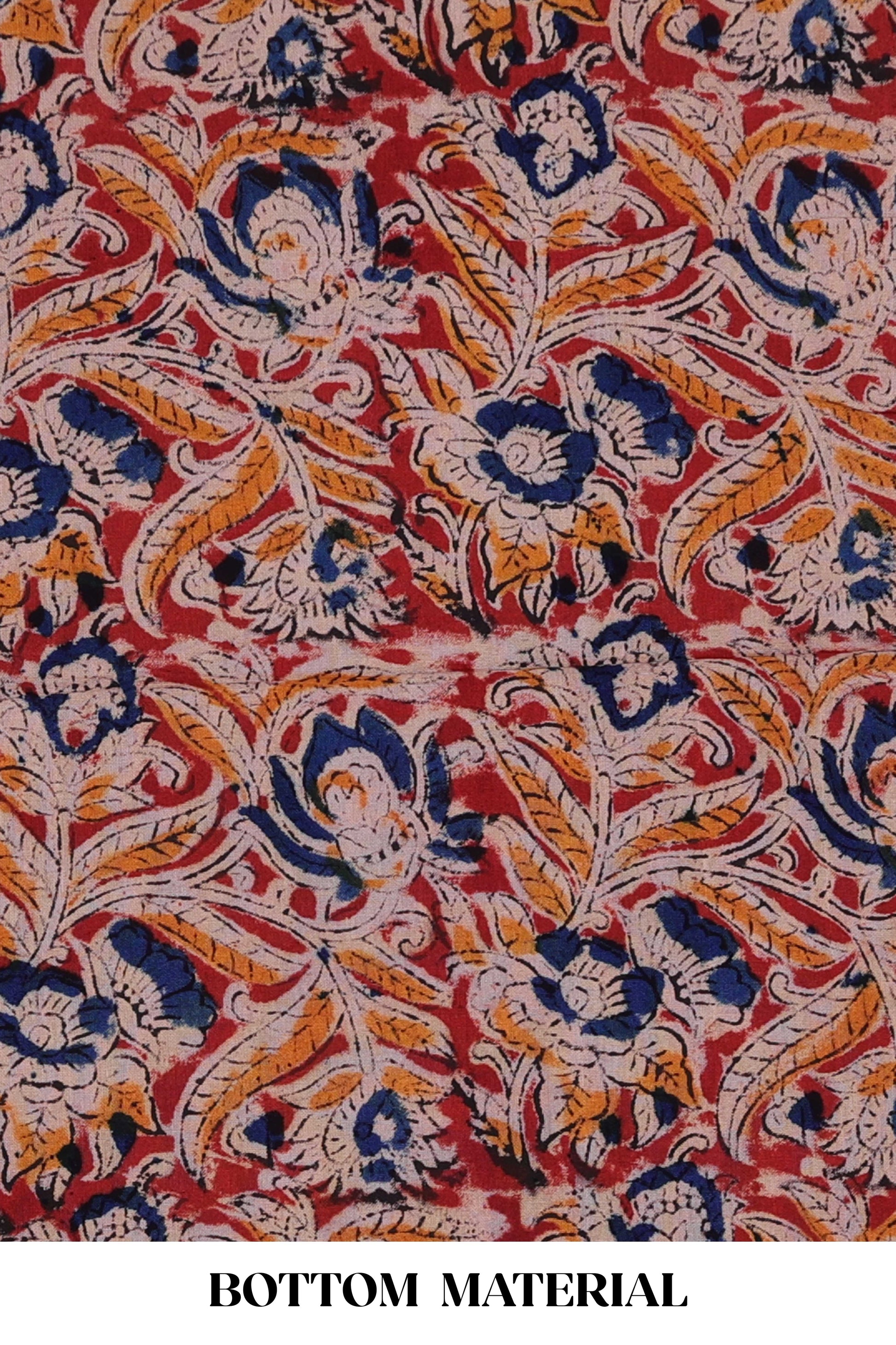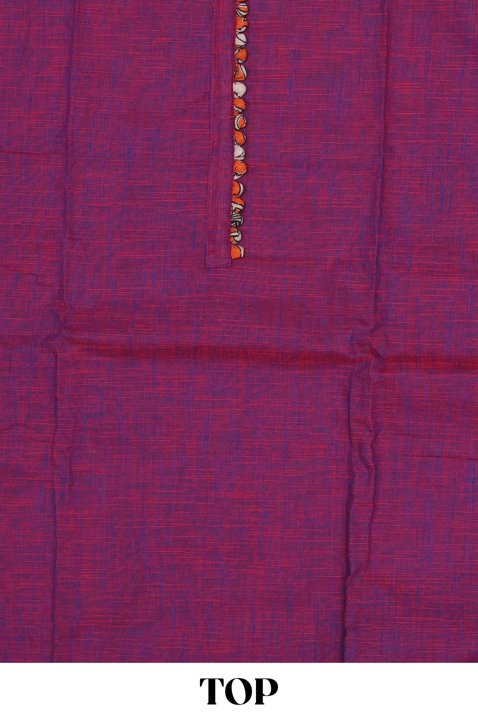 Magenta plain cotton chudidhar material with kalamkari style bottom and dupatta