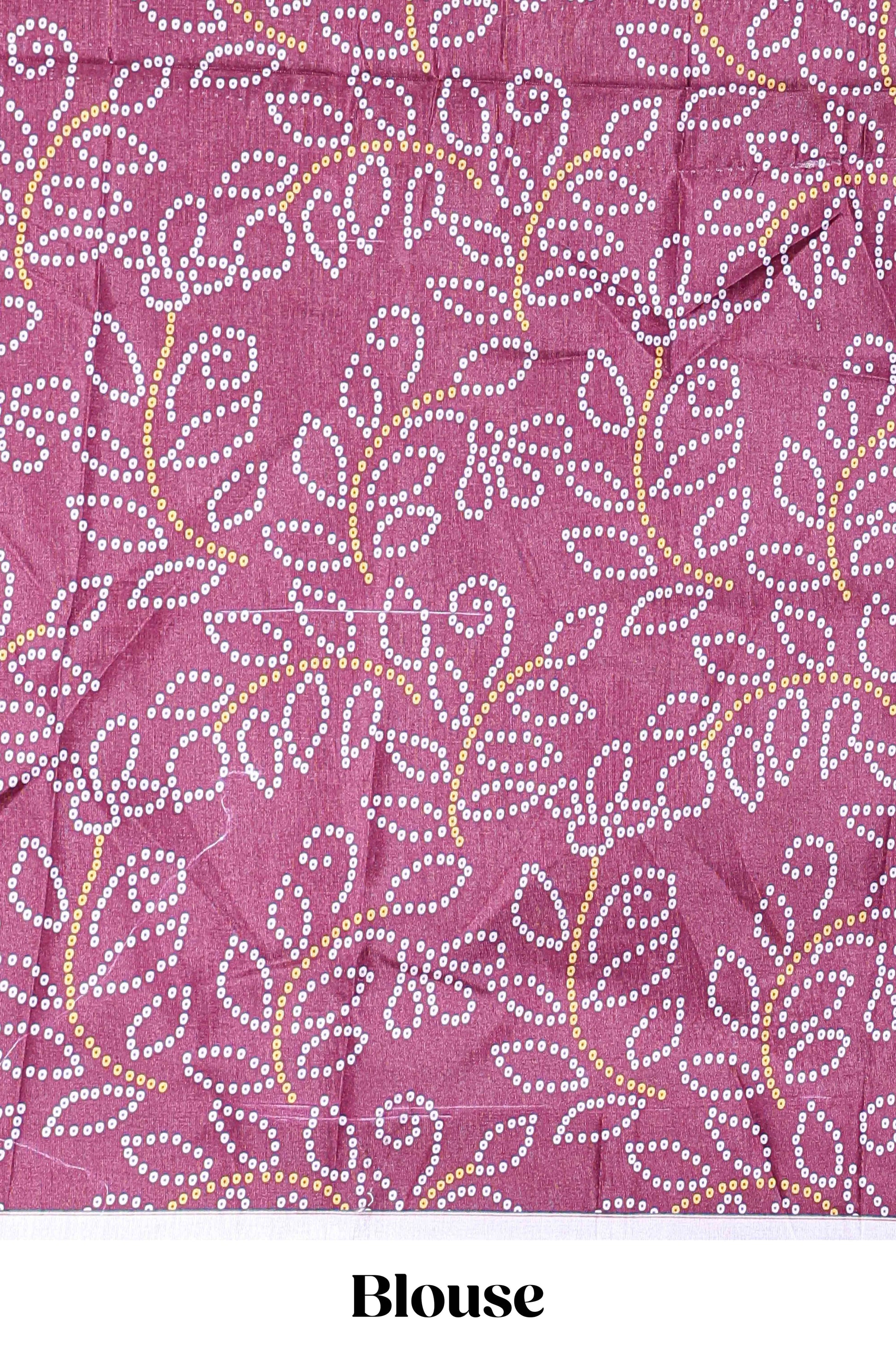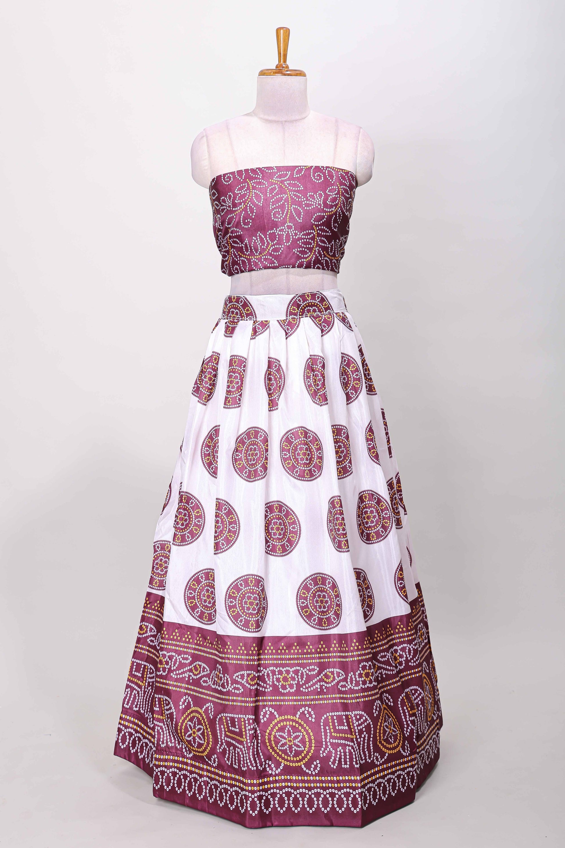 Maroon dola silk bhandani elephant and floral printed lehenga with contrast blouse and dhavani