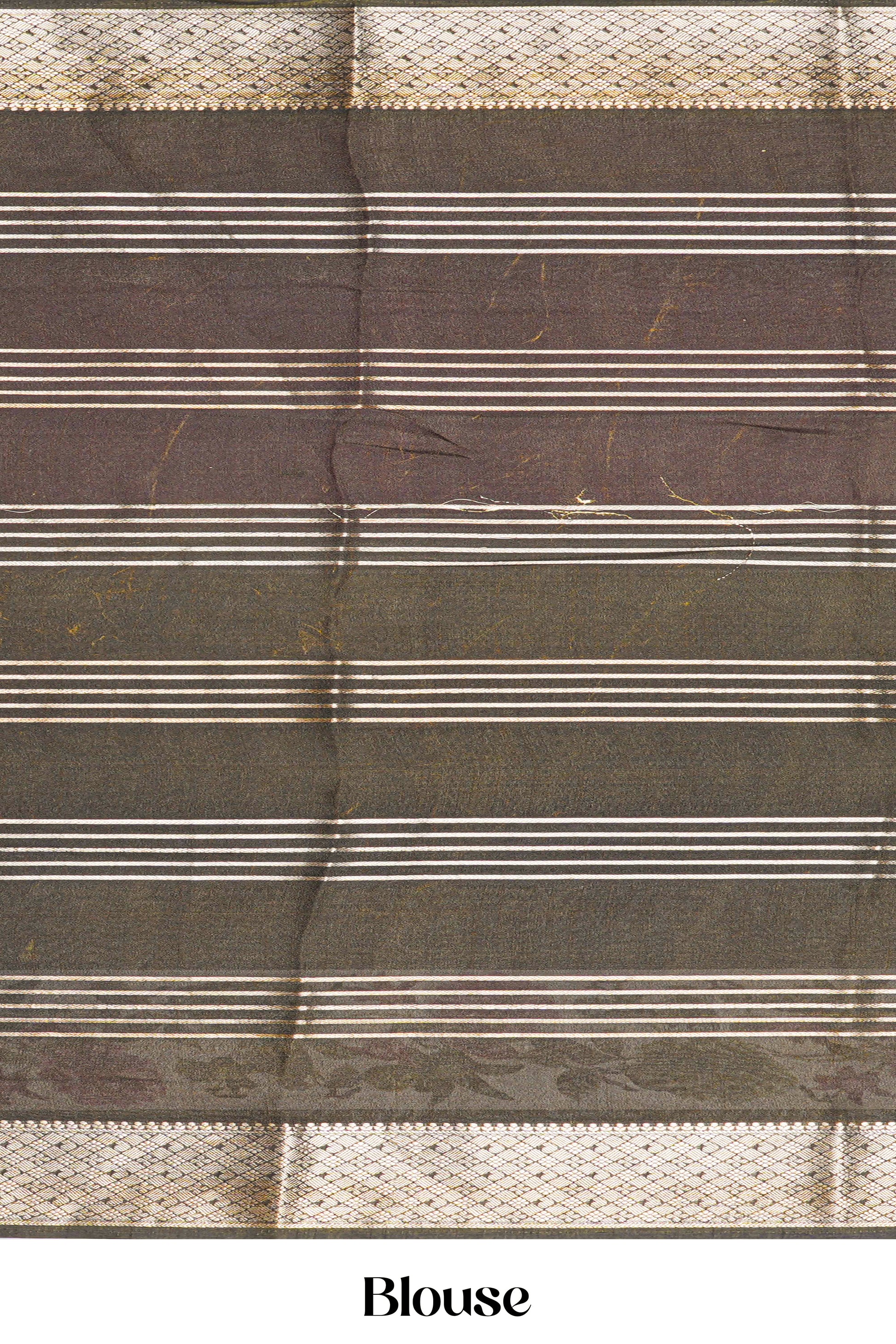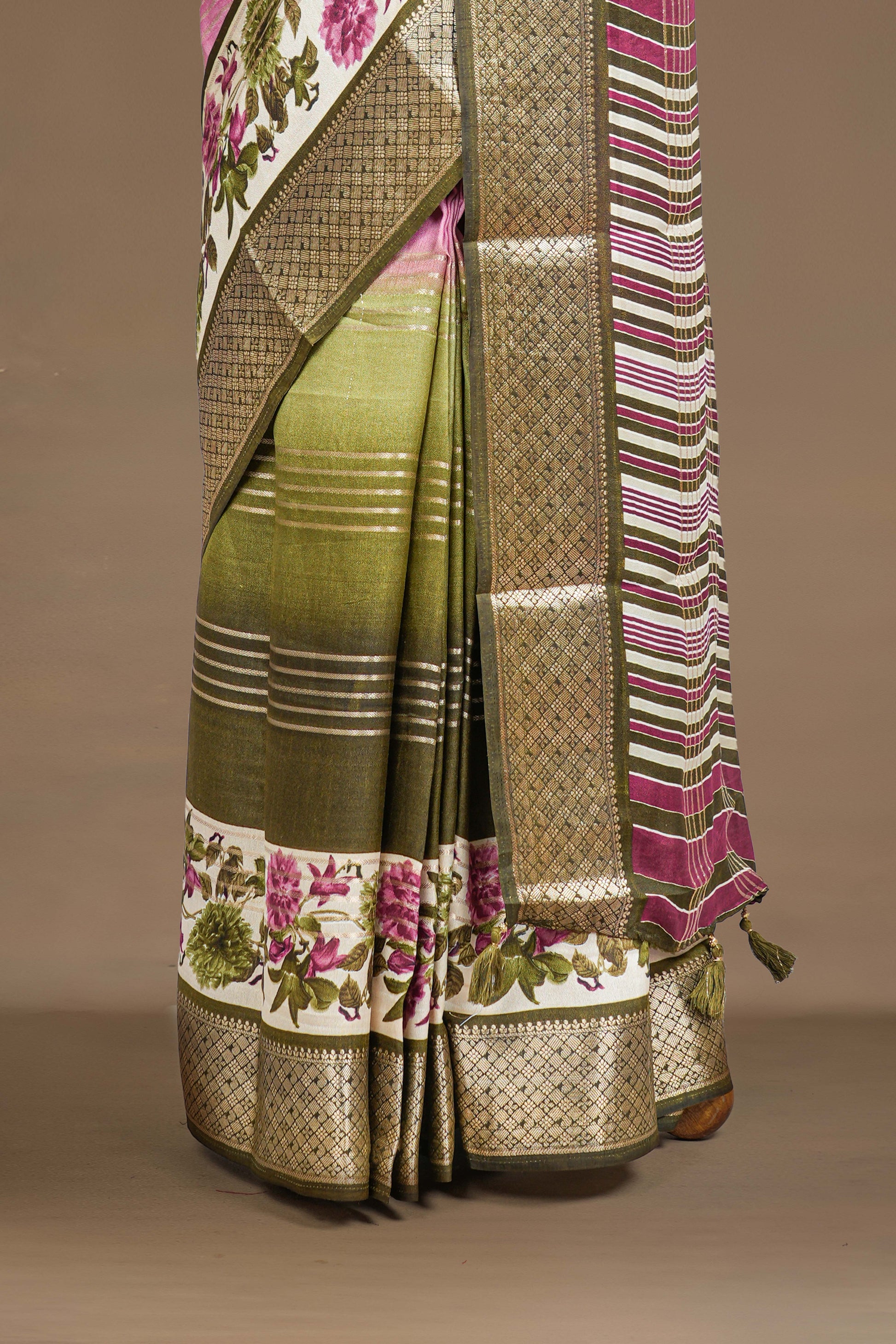 Multi Color Marsh Mellow Saree Gold Zari Stripes With Floral Design Across The Body & Stripes Pallu Along With Contrast Blouse