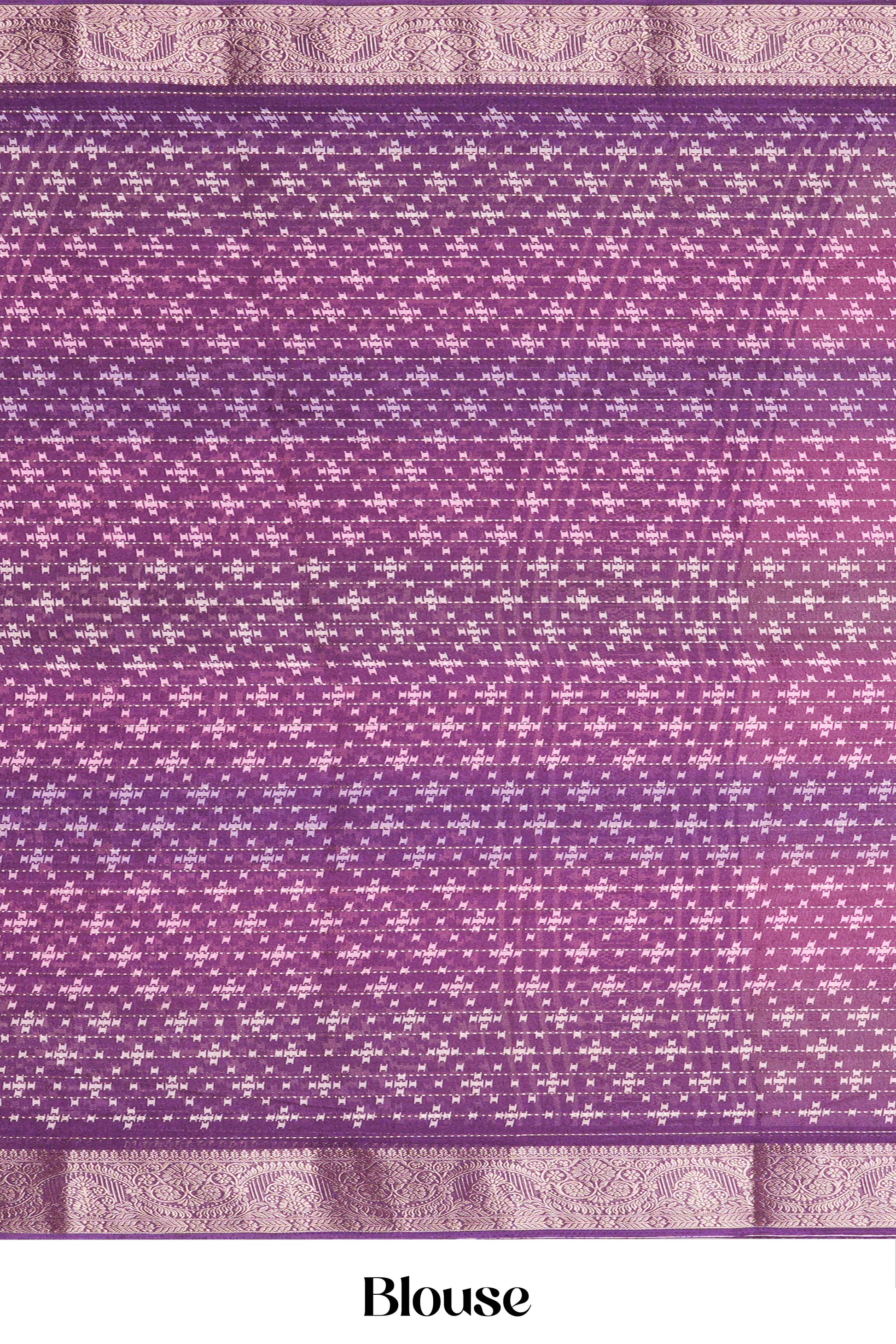 Multi Color Marsh Mellow Saree Delicate Floral Vine Motifs .Rich Purple Jacquard Border & Contrast Floral Design Pallu Along With Butta Design Blouse