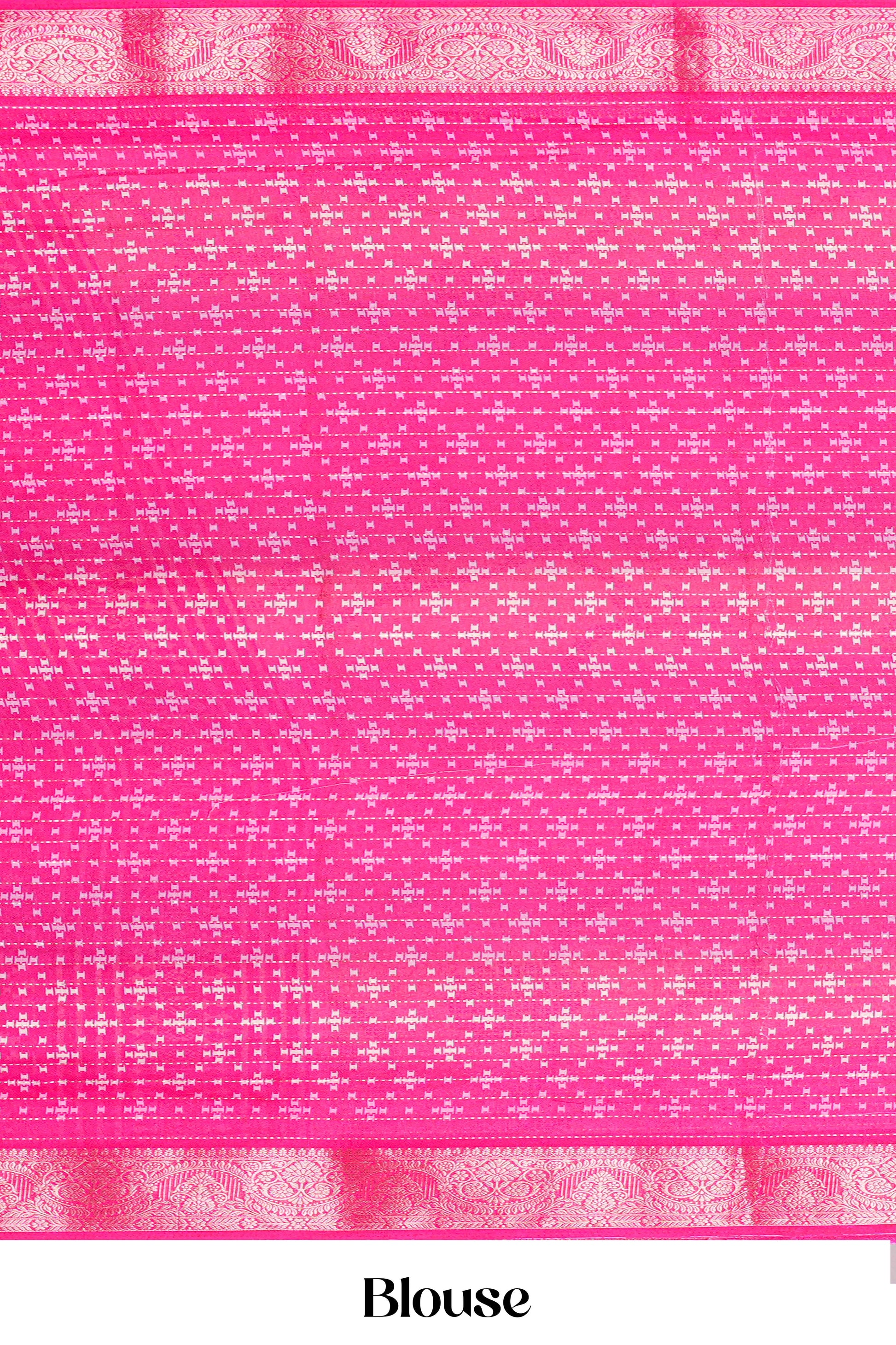 Pink Marsh Mellow Saree Delicate Floral Vine Motifs With Zari Stripes Weaving Across The Body .Rich Jacquard Border & Rani Pink Floral Design Pallu Along With Butta Design Blouse