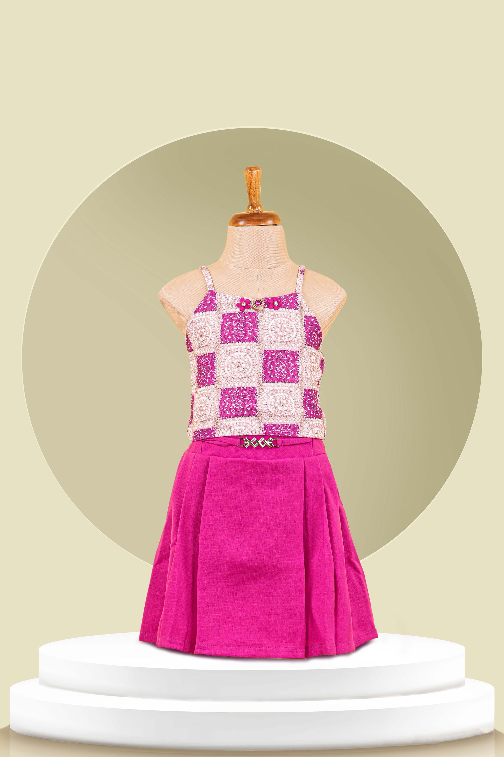 Pink Skirt Crop Top & Full Sleeve shrug Set