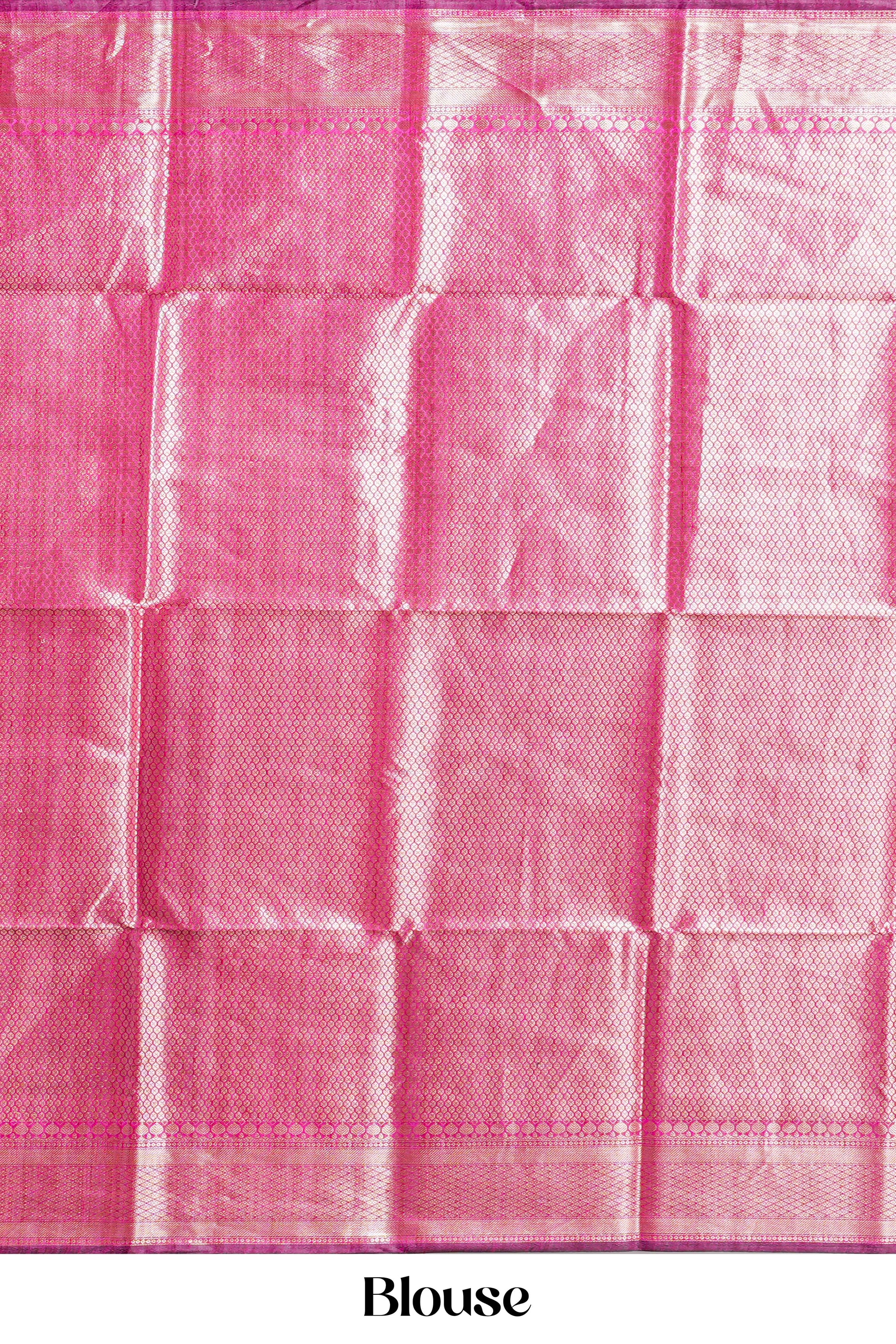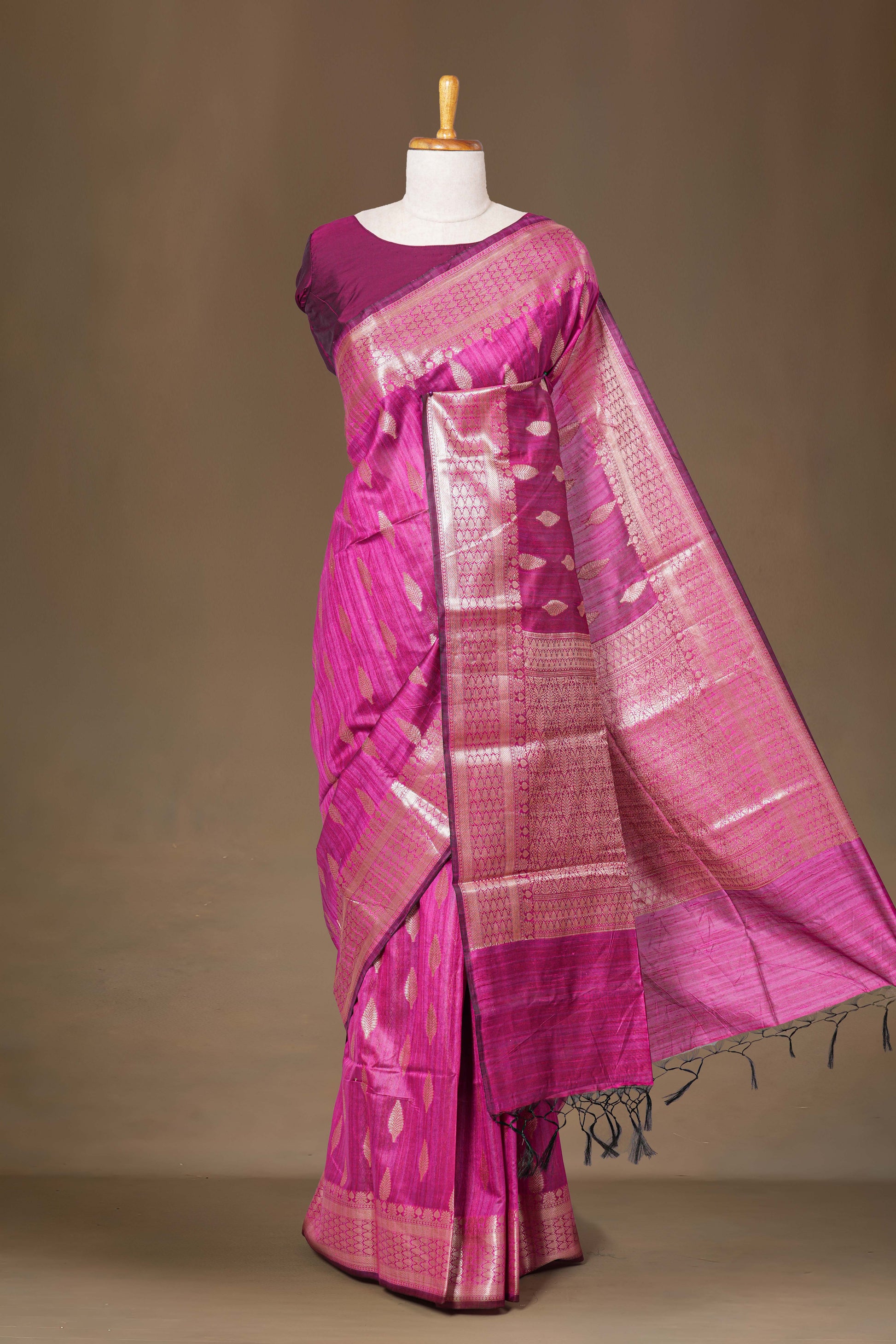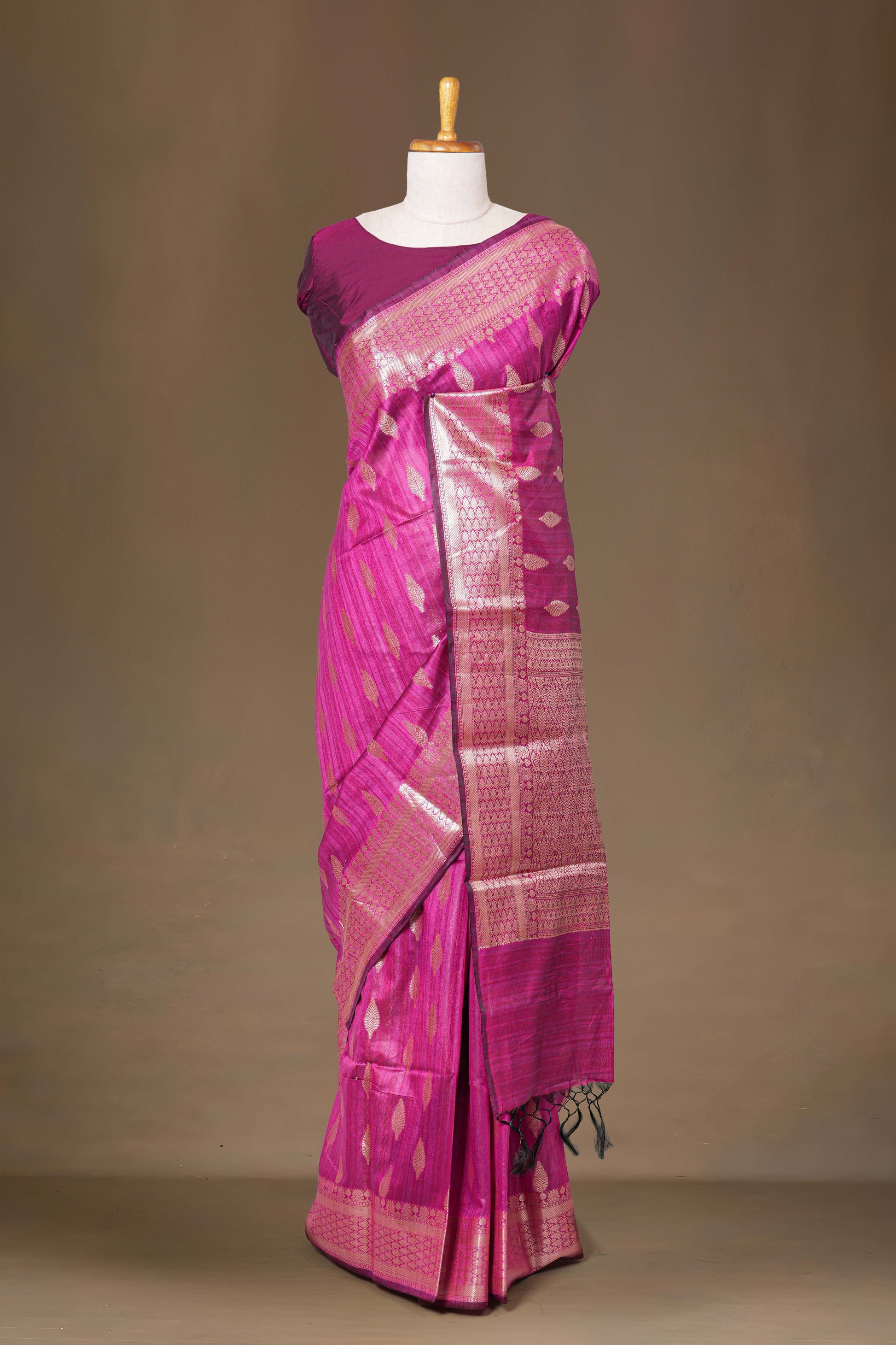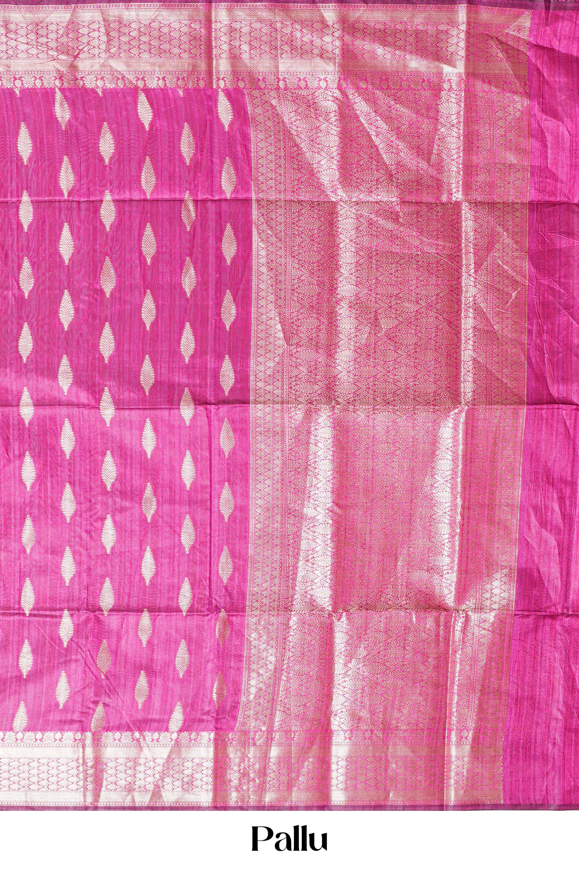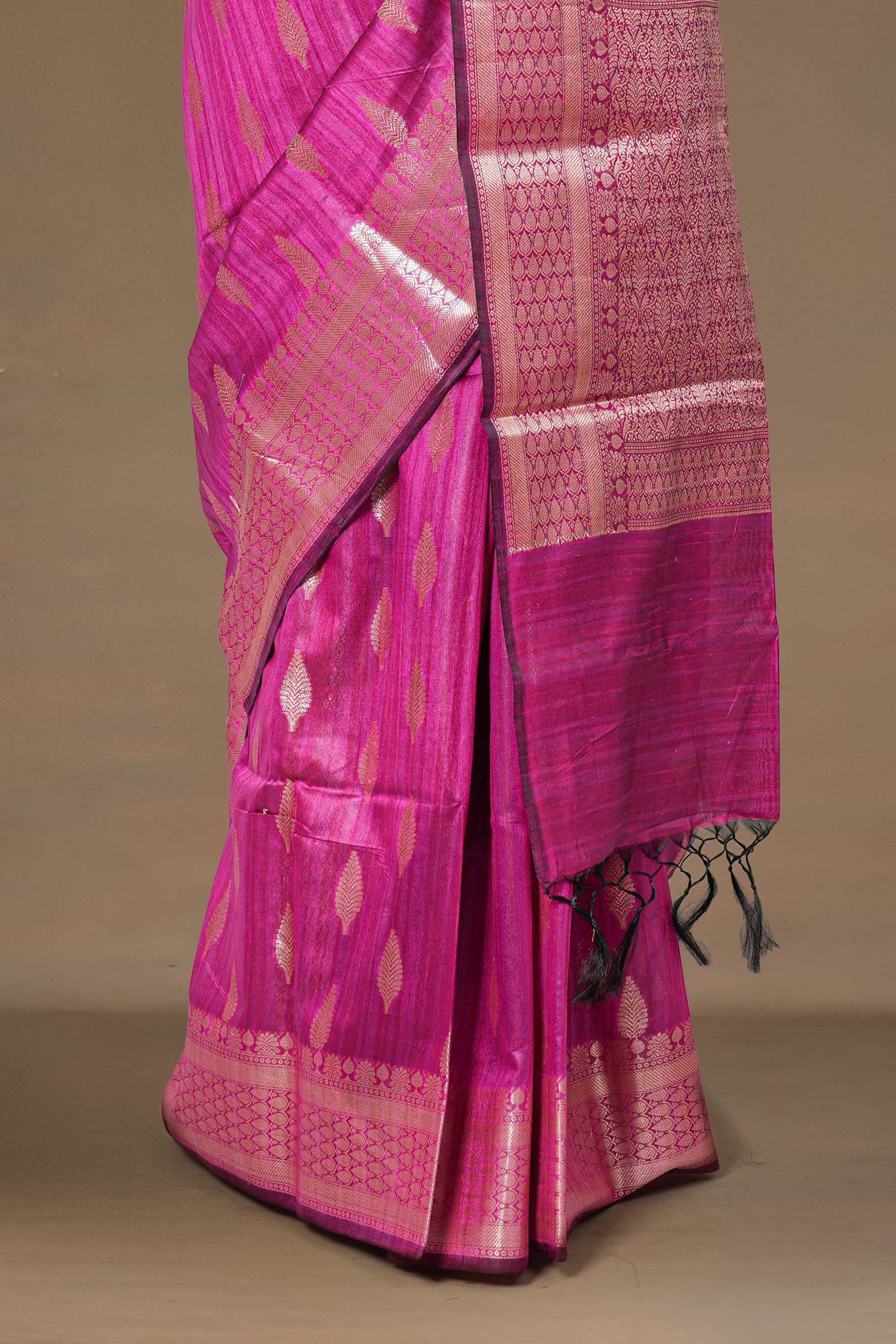 Pink Monga Silk Saree All-Over Intricate Leaf Motifs With Zari Weaving Pallu Along With Blouse