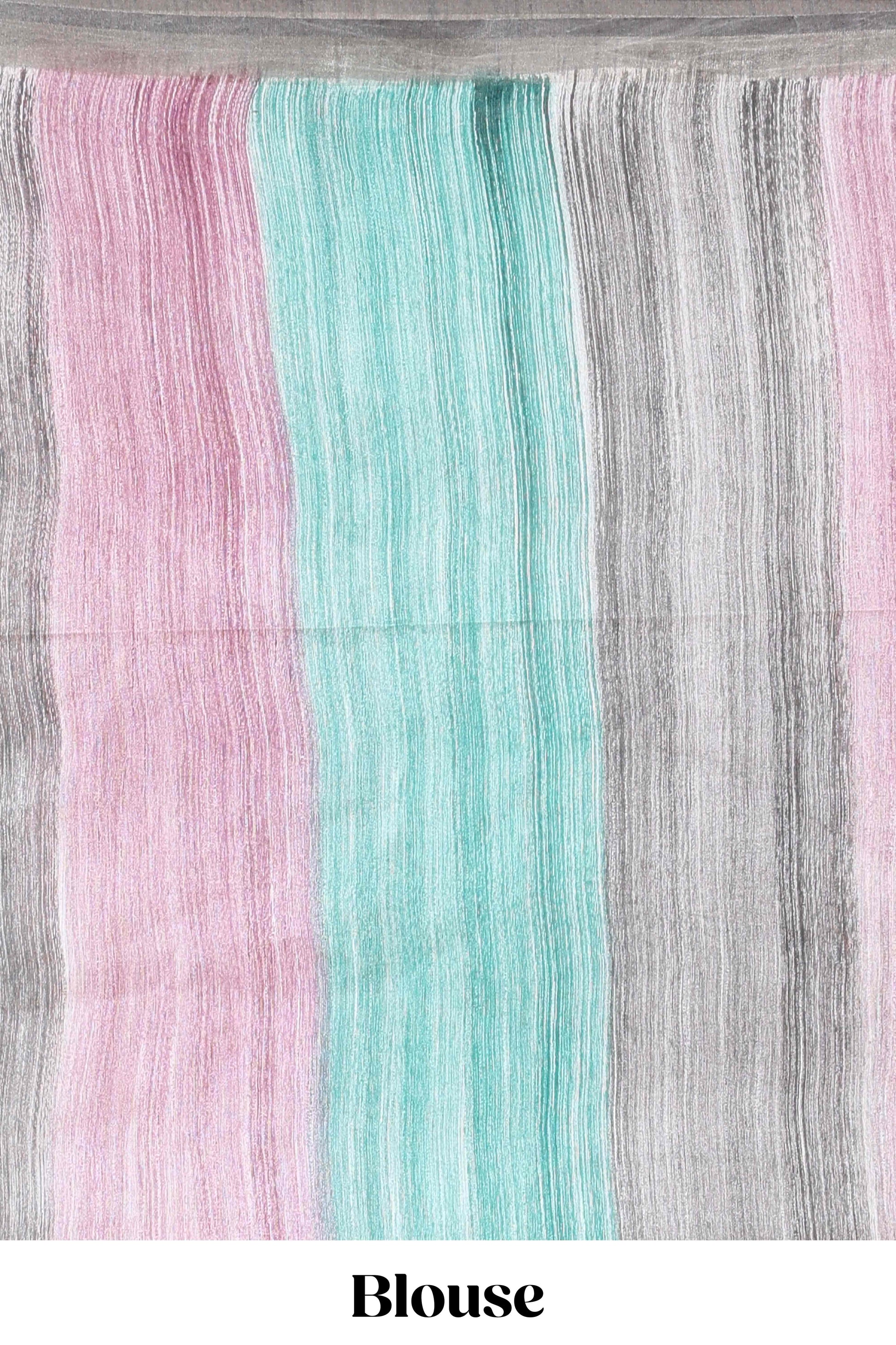 Multi color stripes chikankari cotton saree with thread work and self pallu