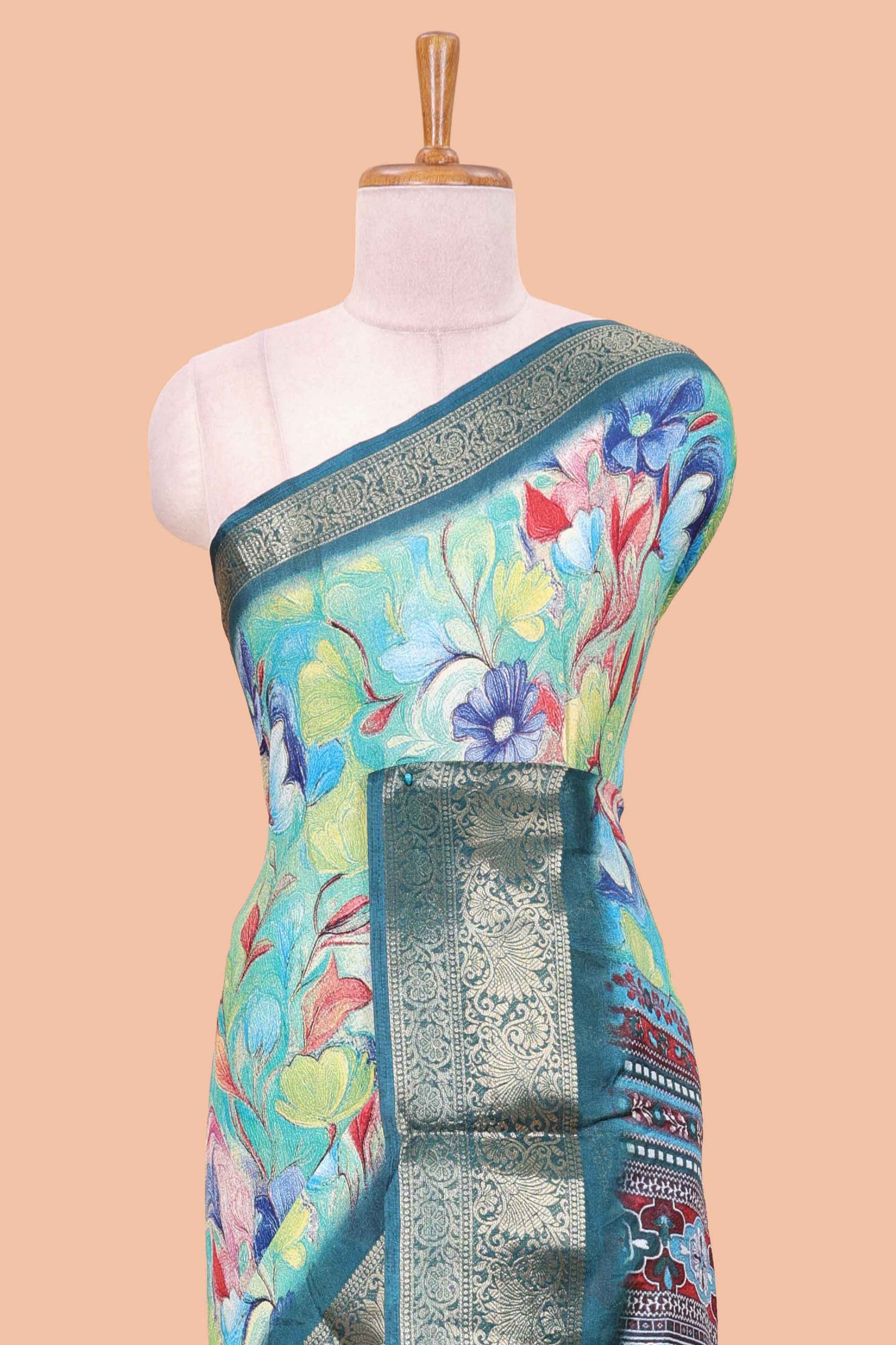 Multicolour moss chiffon floral print saree with contrast pallu and border