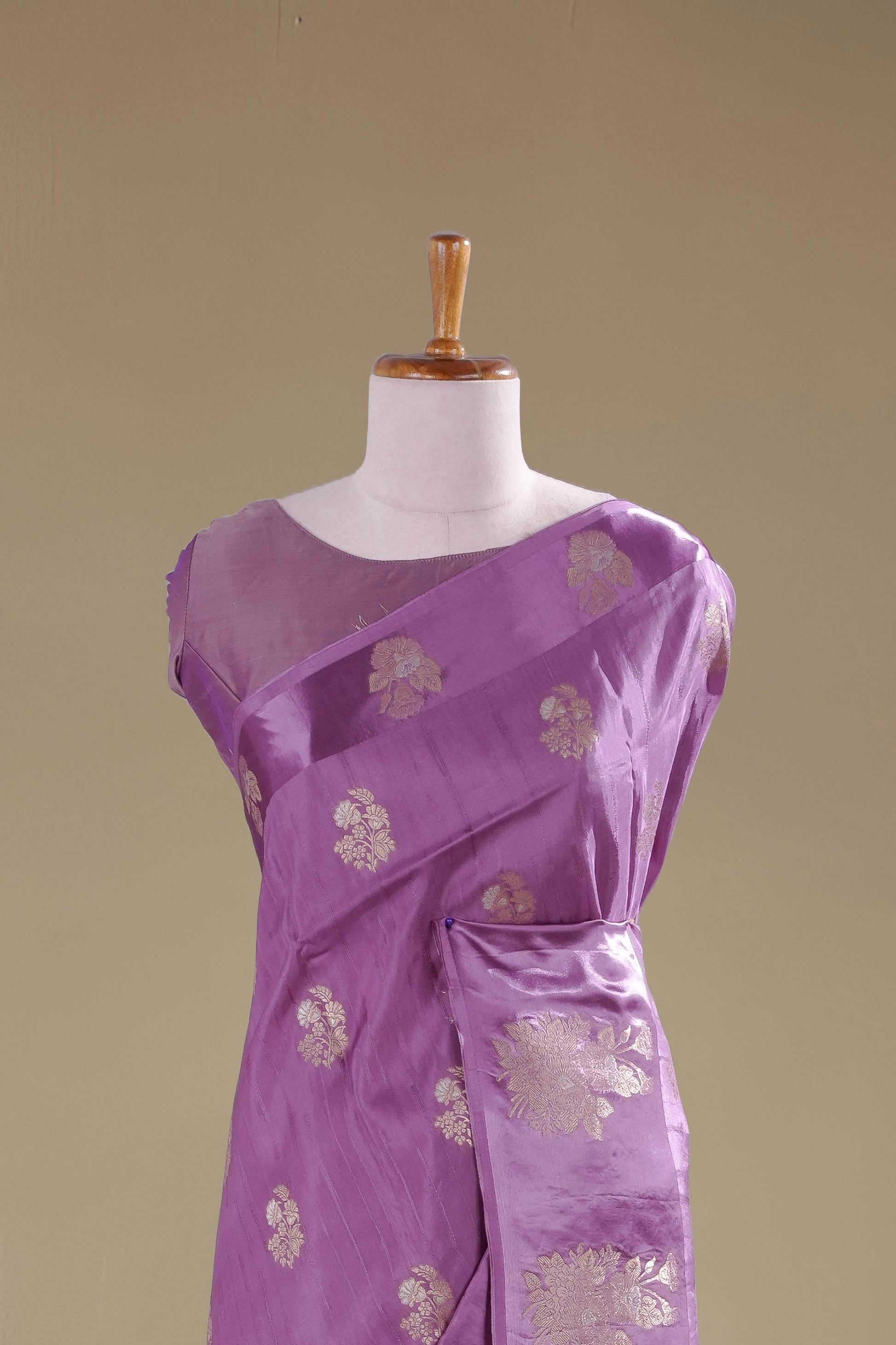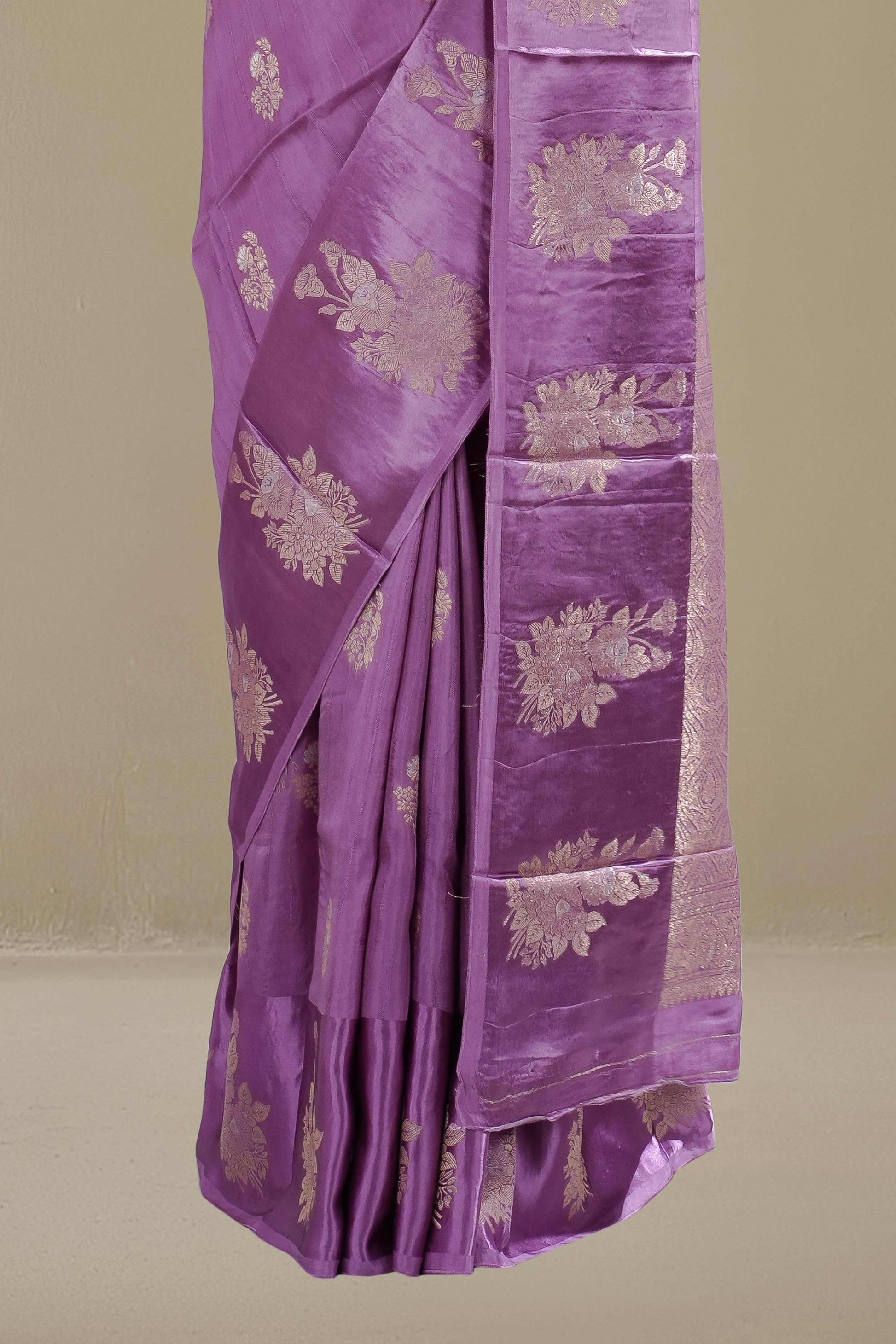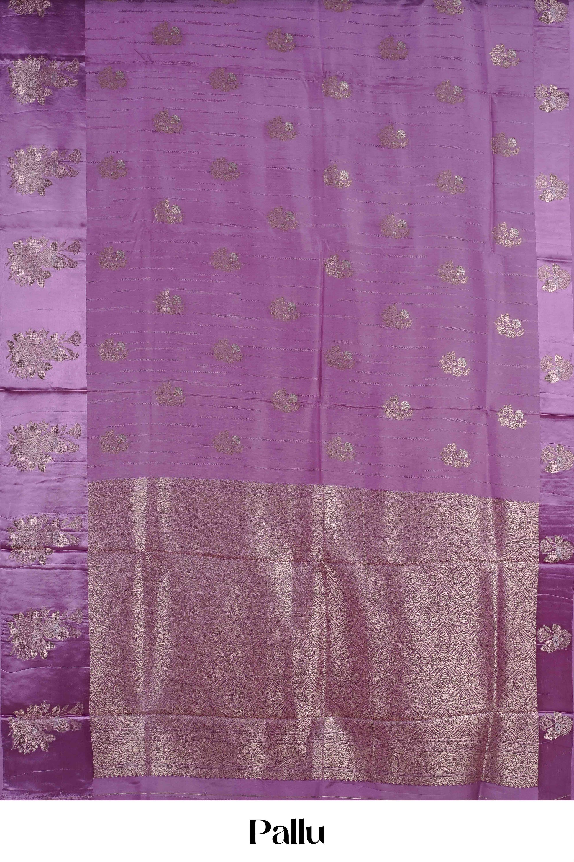 Mushru Silk With Gold Zari Floral Butta Designs Self Border