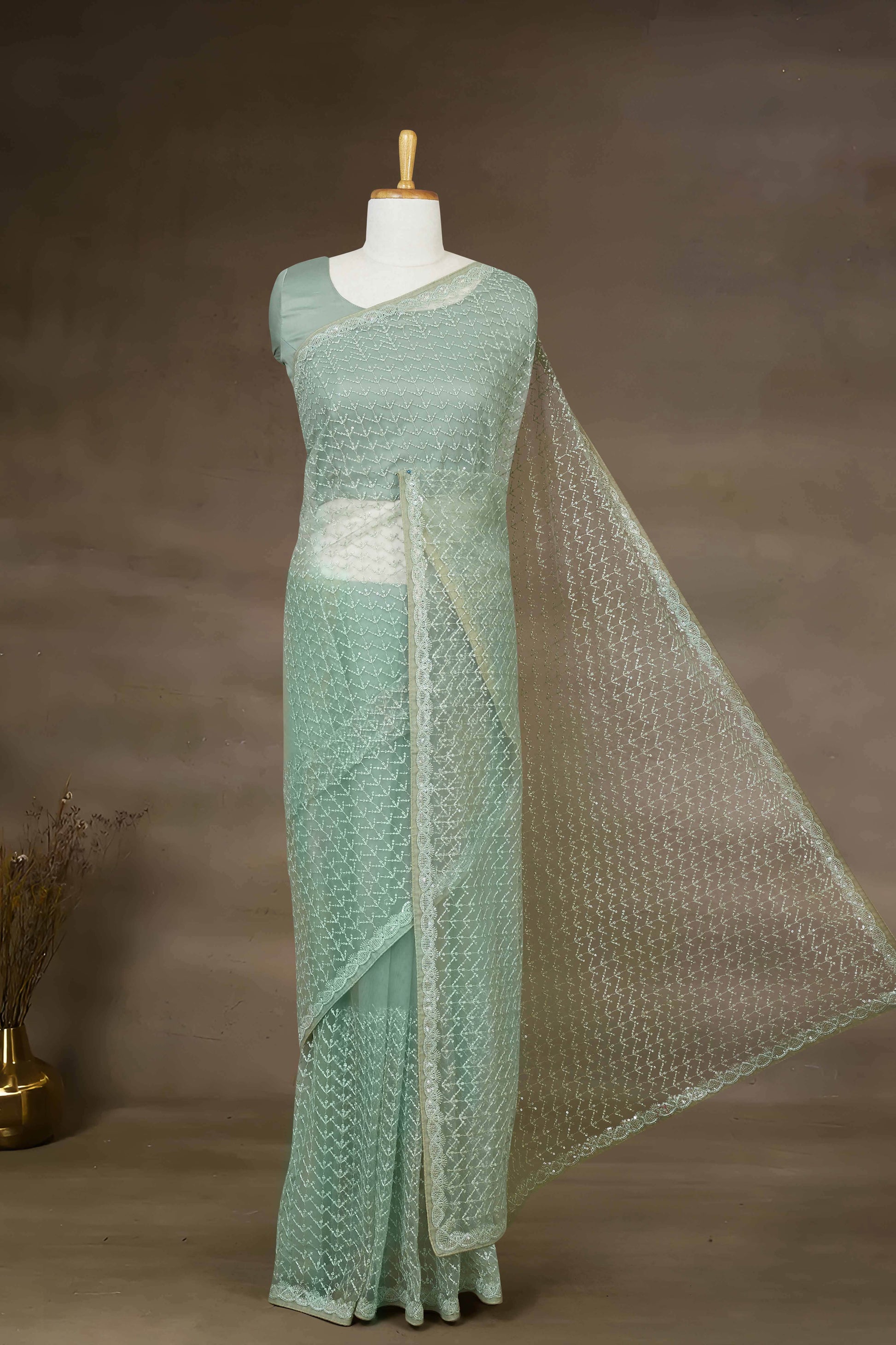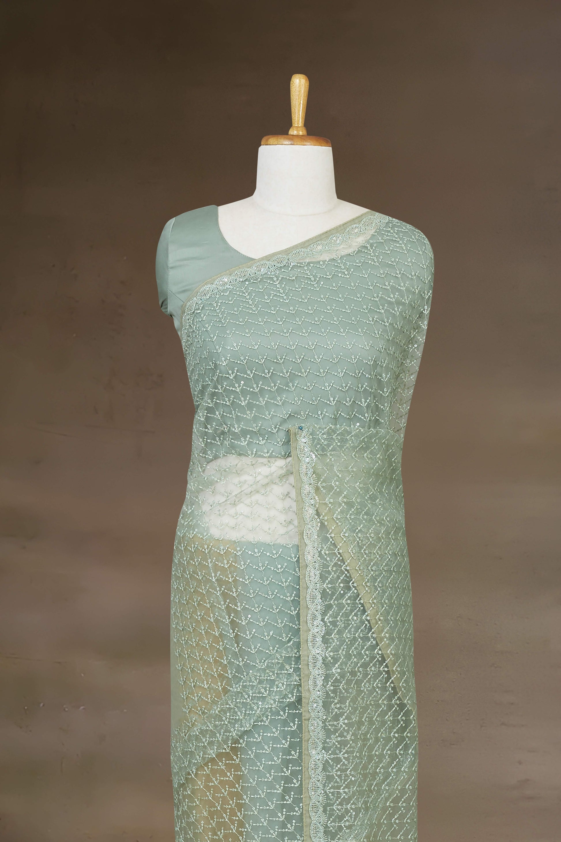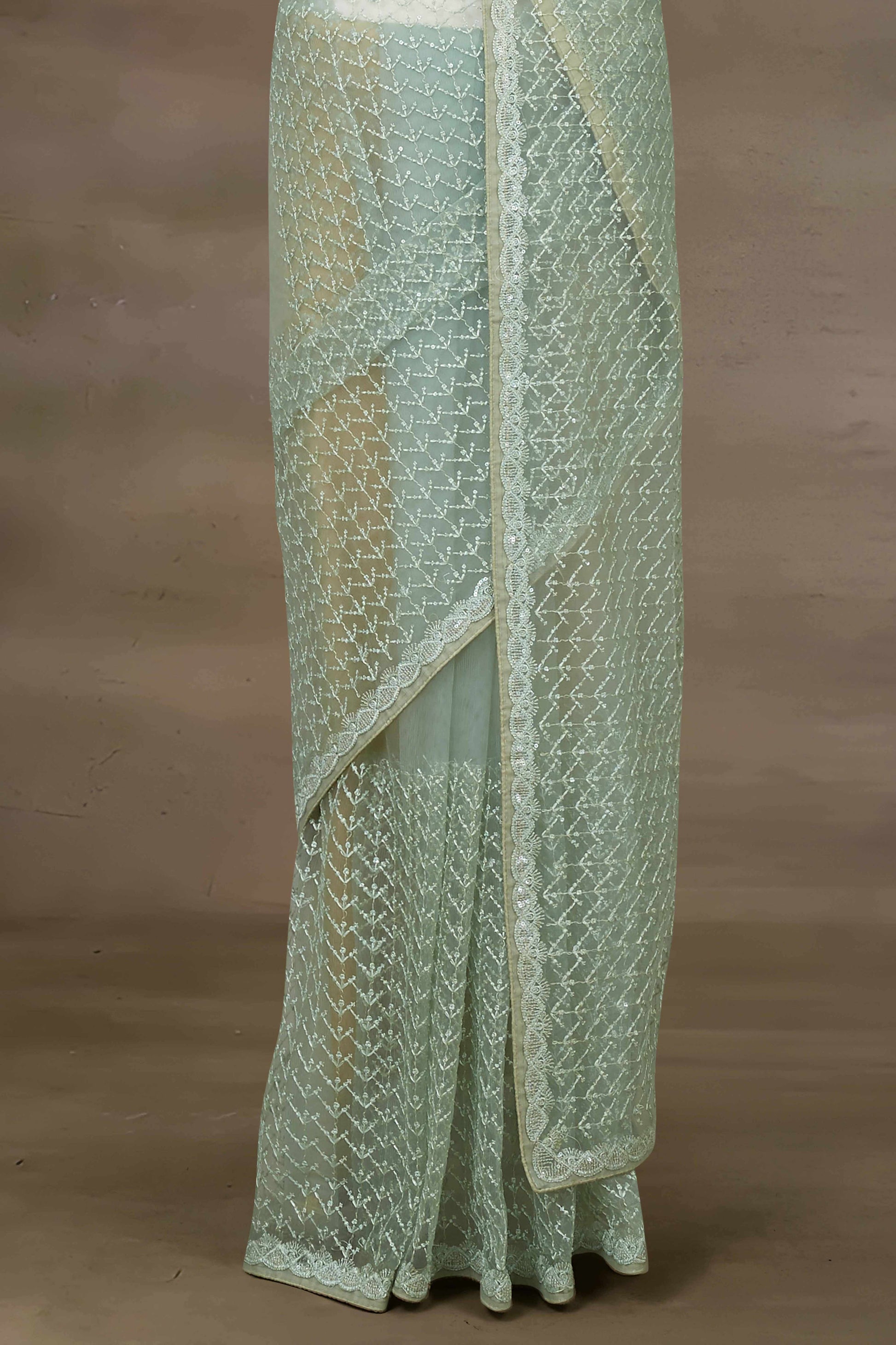 Net With Sequence Embroidery Saree