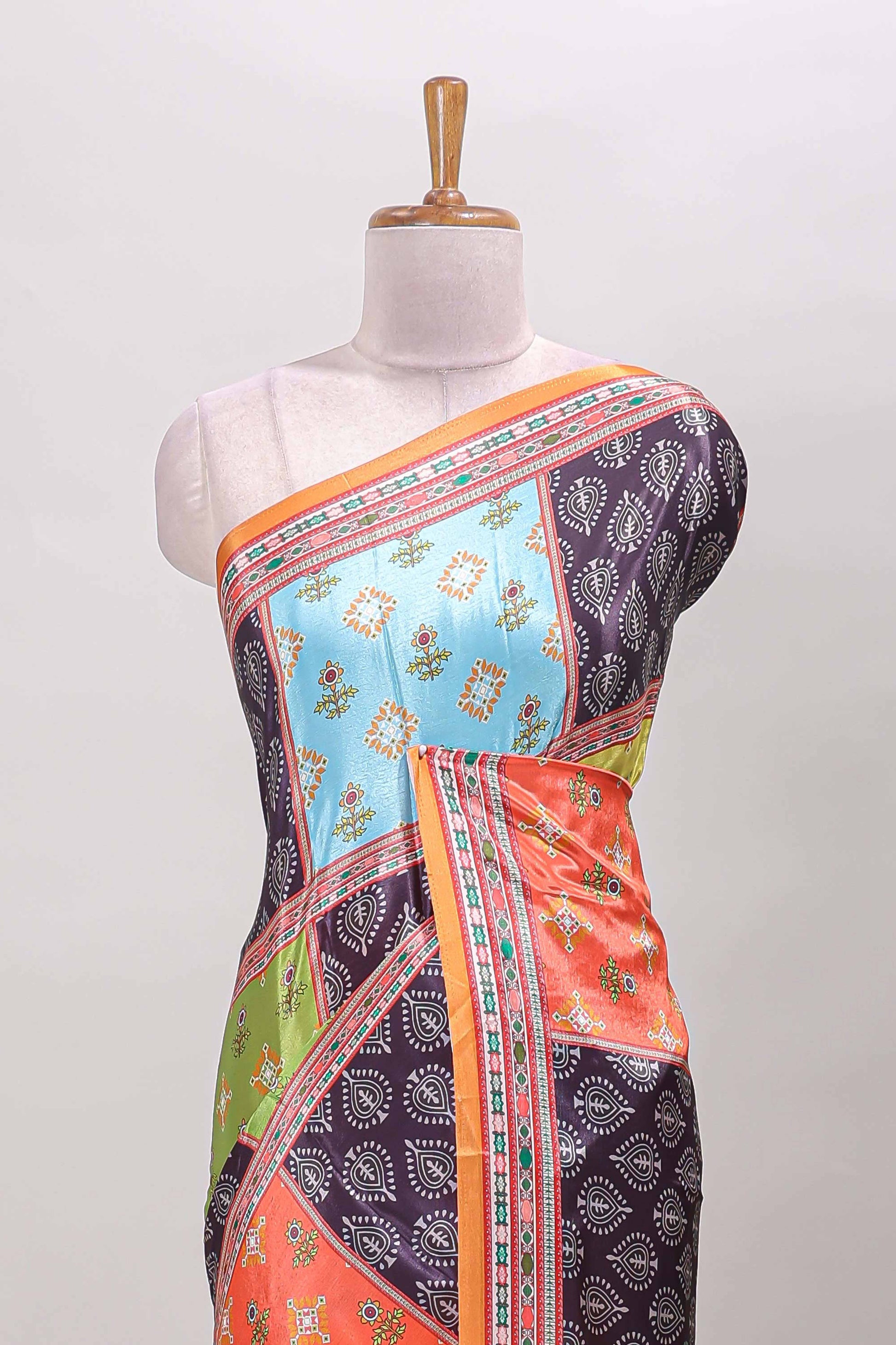 Orange geometric pattern & floral design masakali saree with self border and matching blouse