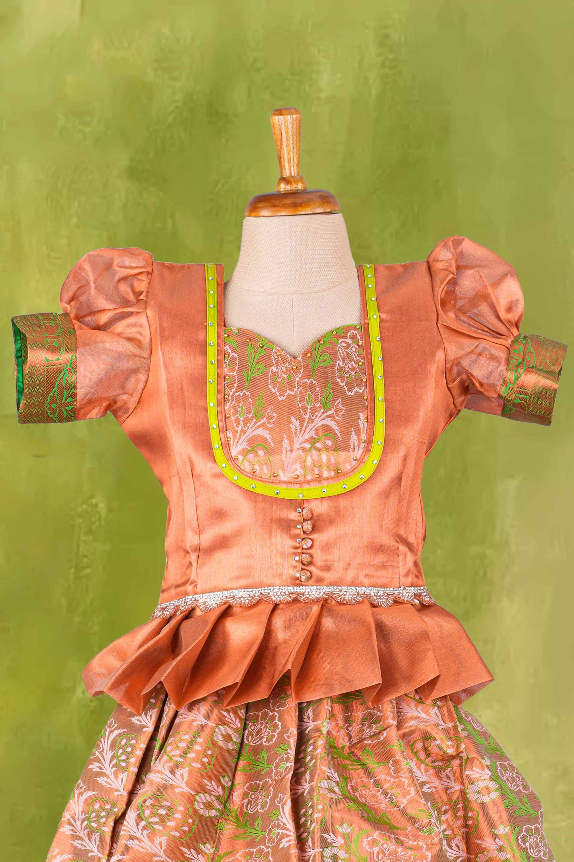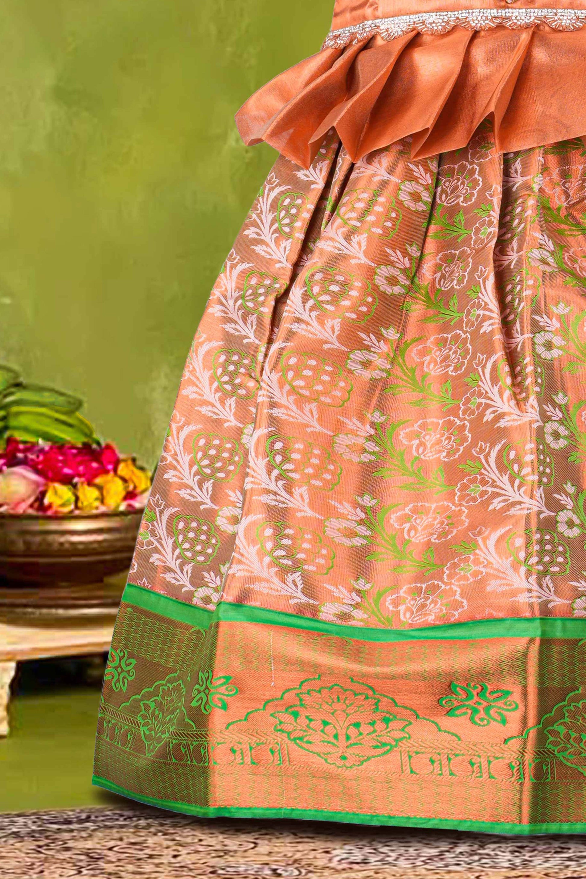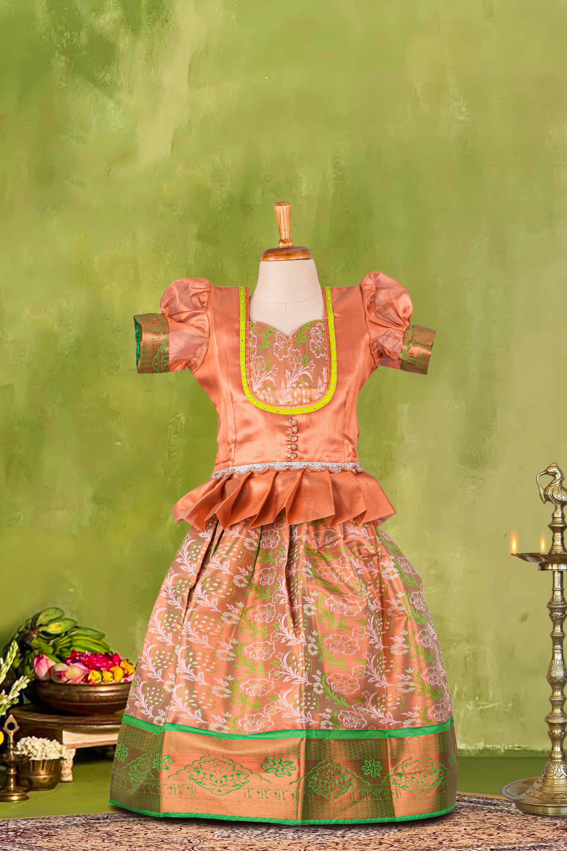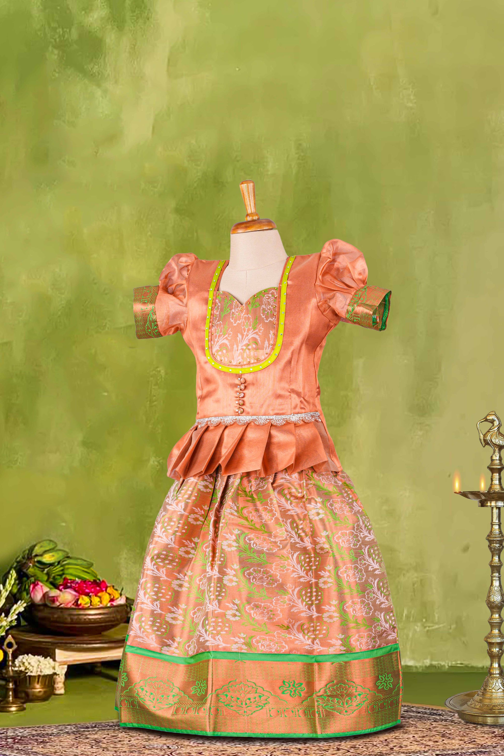 Readymade Art Silk Pattu Pavadai Zari Design With Traditional Contrast Border & Zari Design Blouse