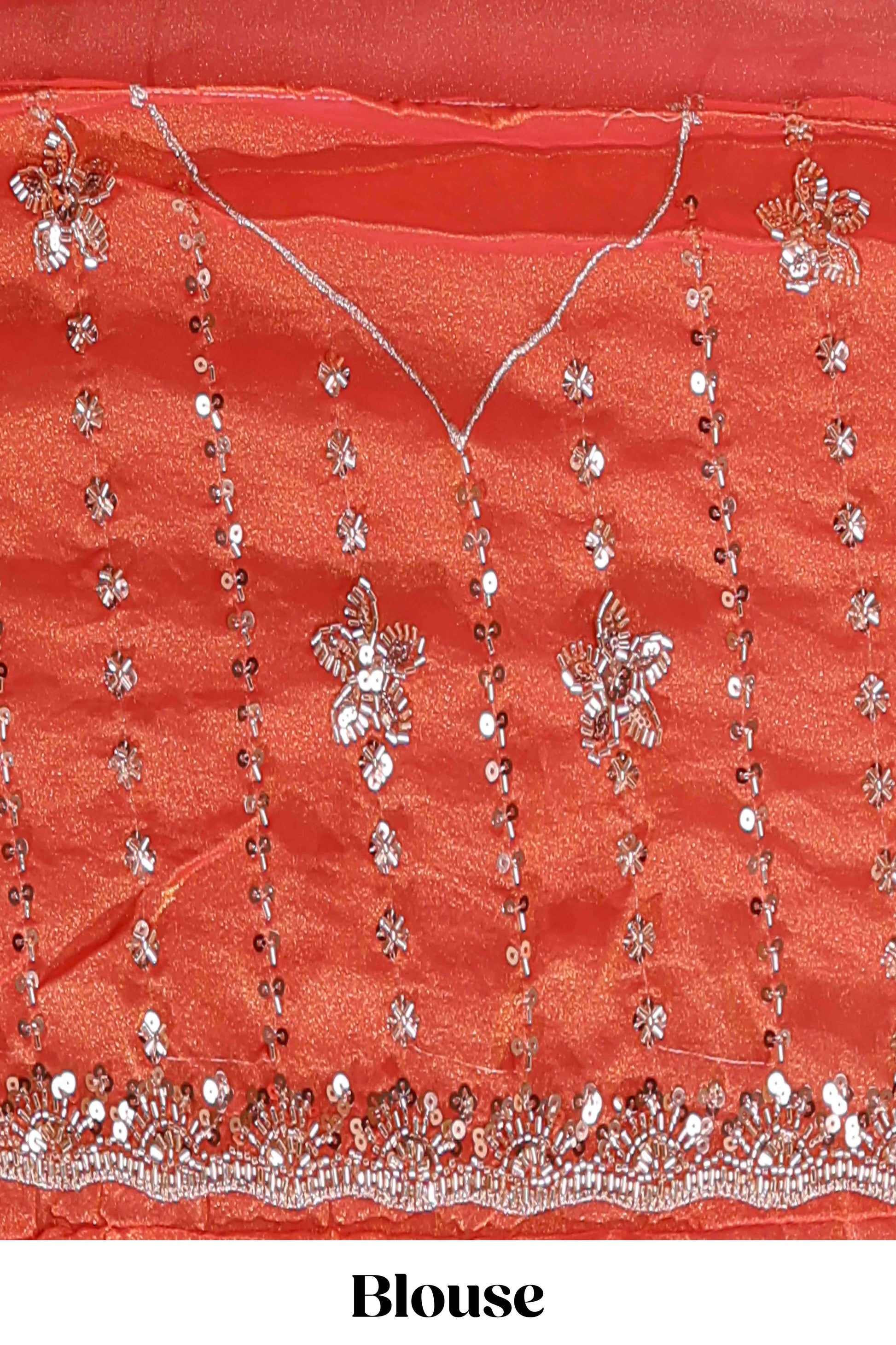 Peach floral design chamki work designer saree with self scallop border and matching blouse