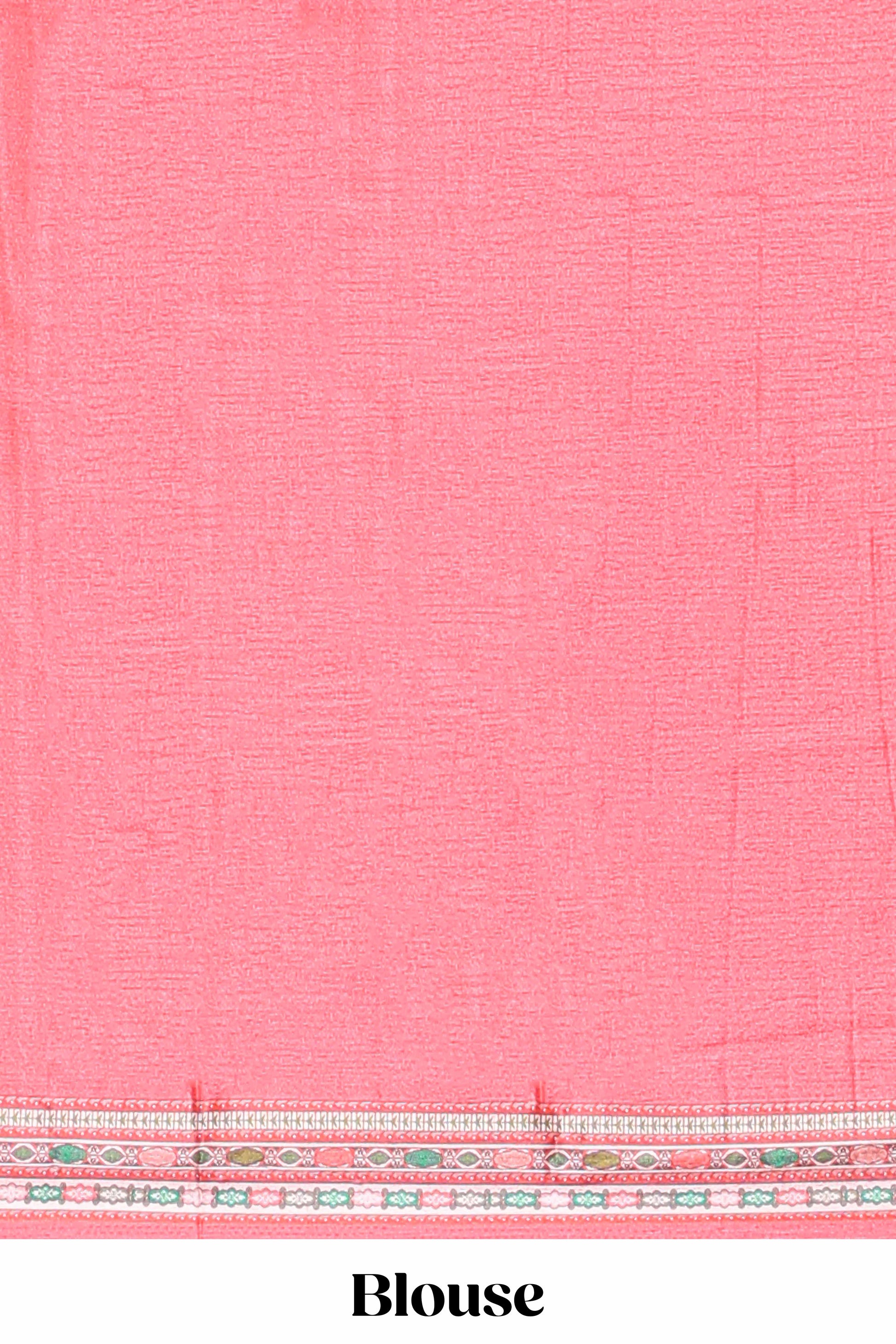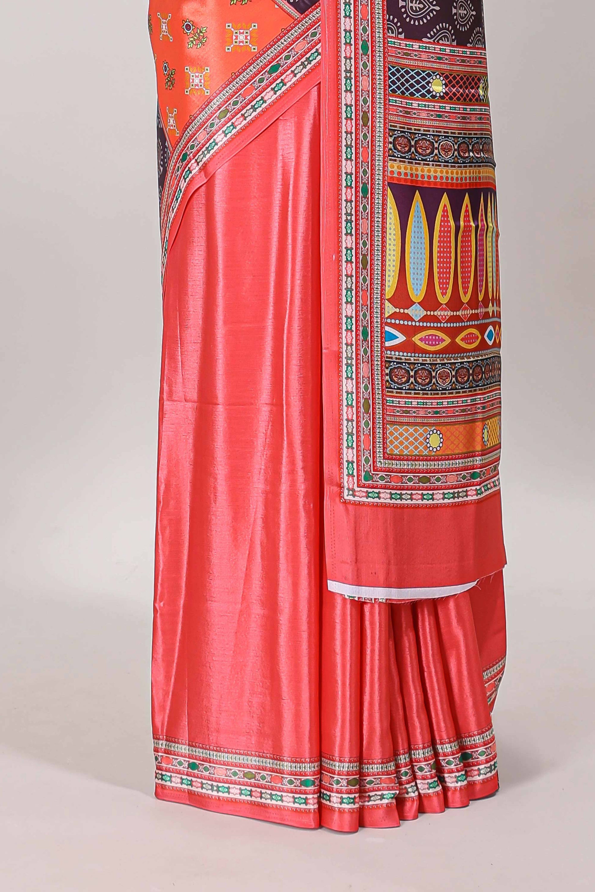 Peach geometric pattern & floral design masakali saree with self border and matching blouse