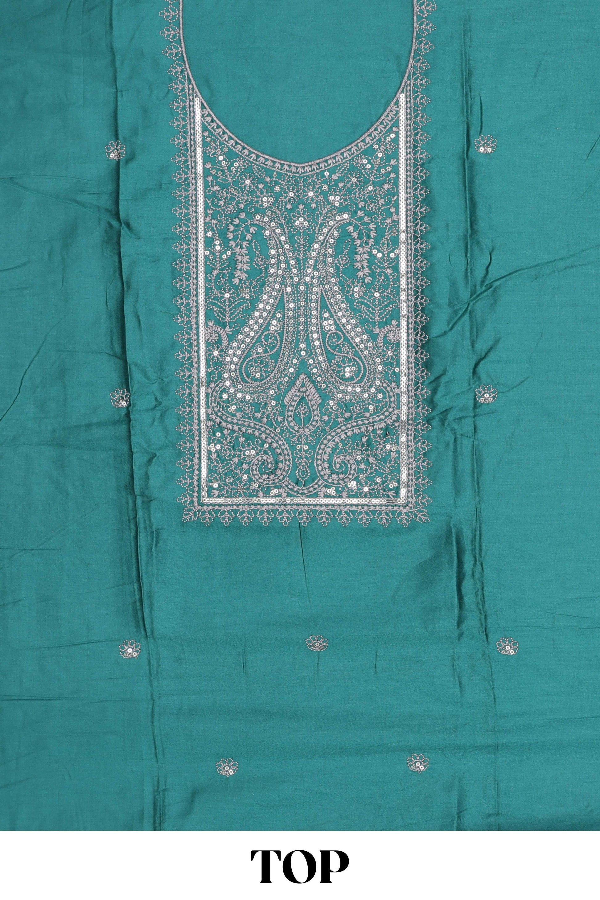 Peacock blue embroidered cotton silk chudidhar material with sequin work