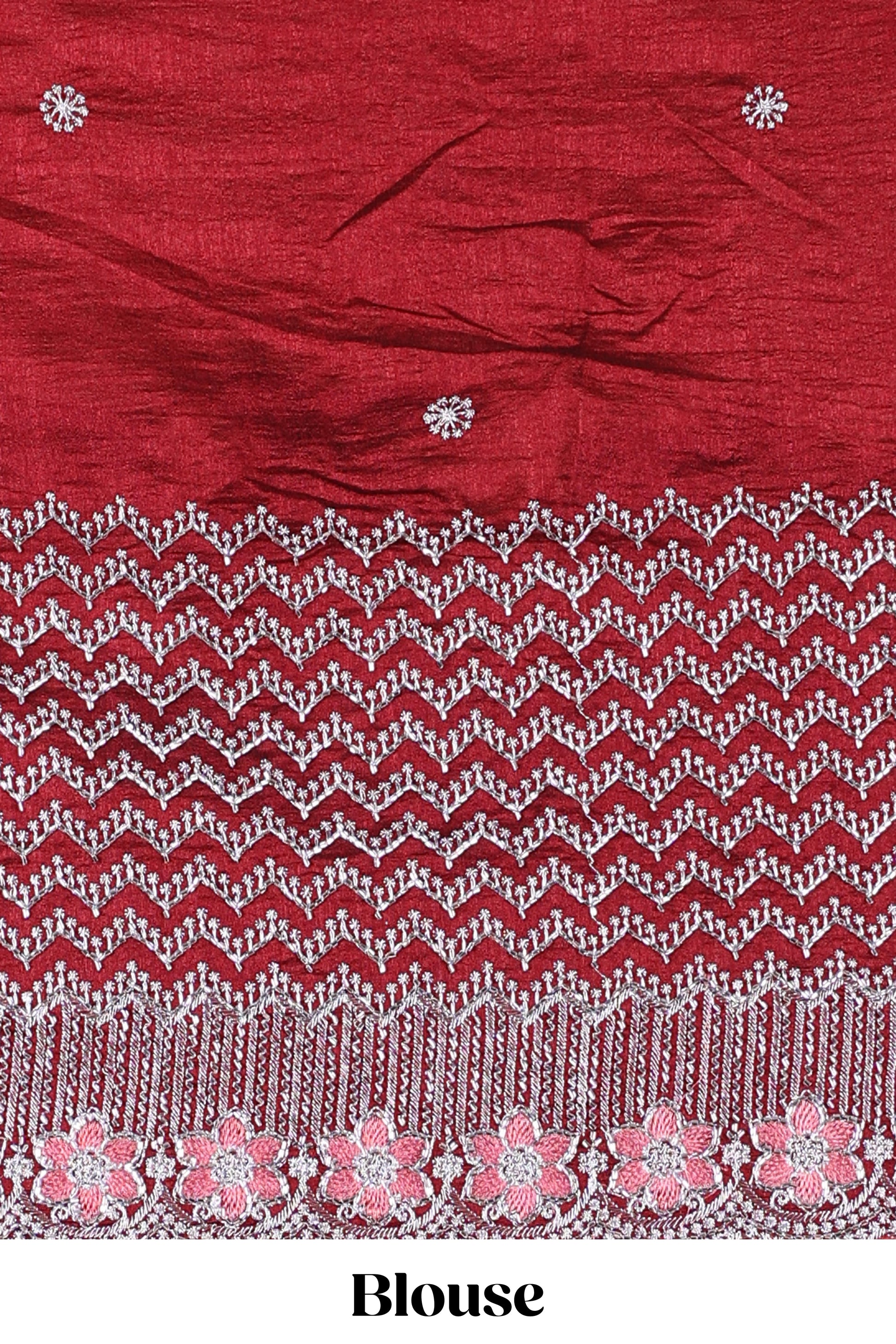 Pink designer georgette space silk saree with heavy stone & beads work, short pallu and contrast sequin embroidered blouse