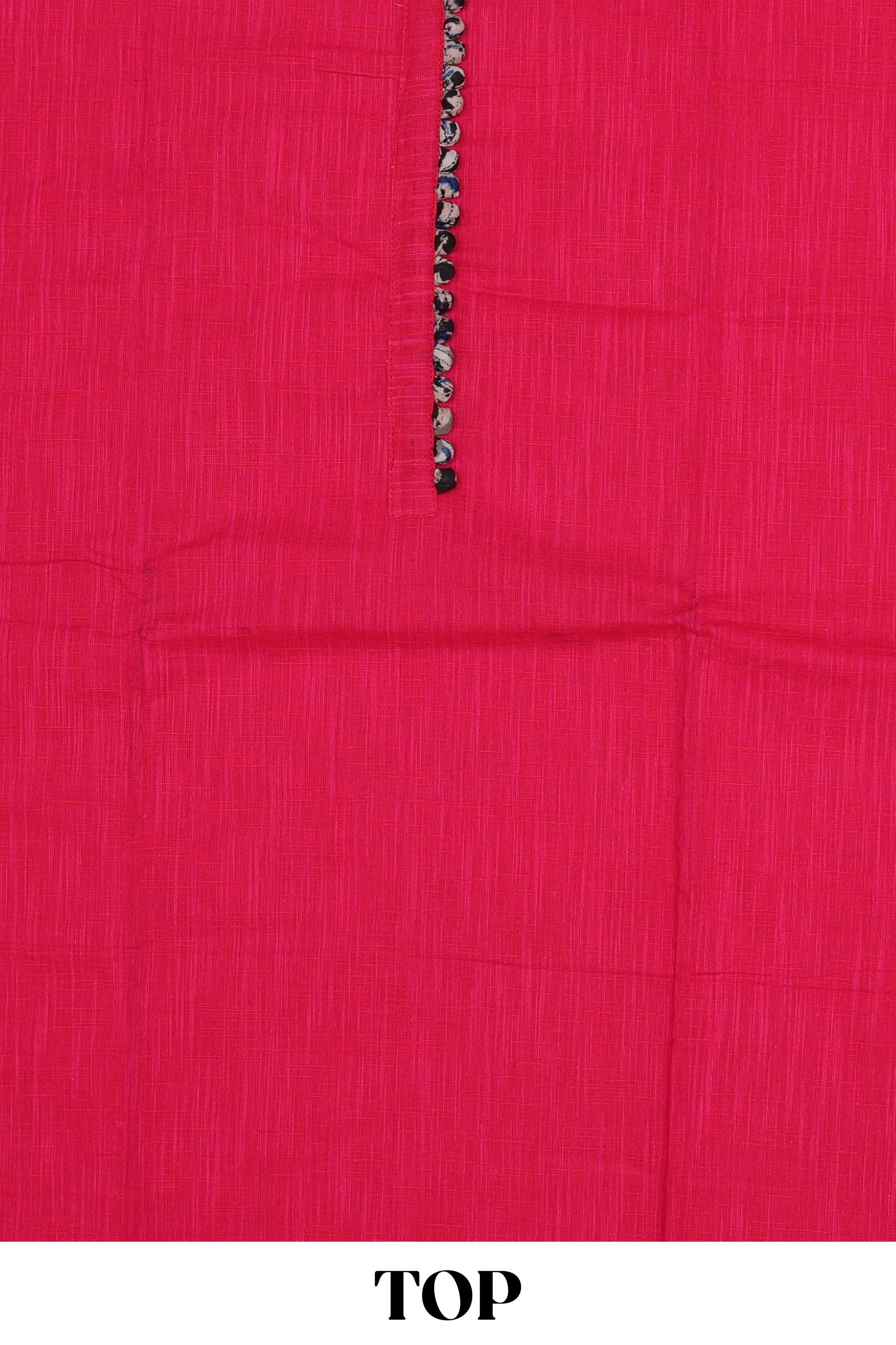 Pink plain cotton chudidhar material with kalamkari style bottom and dupatta