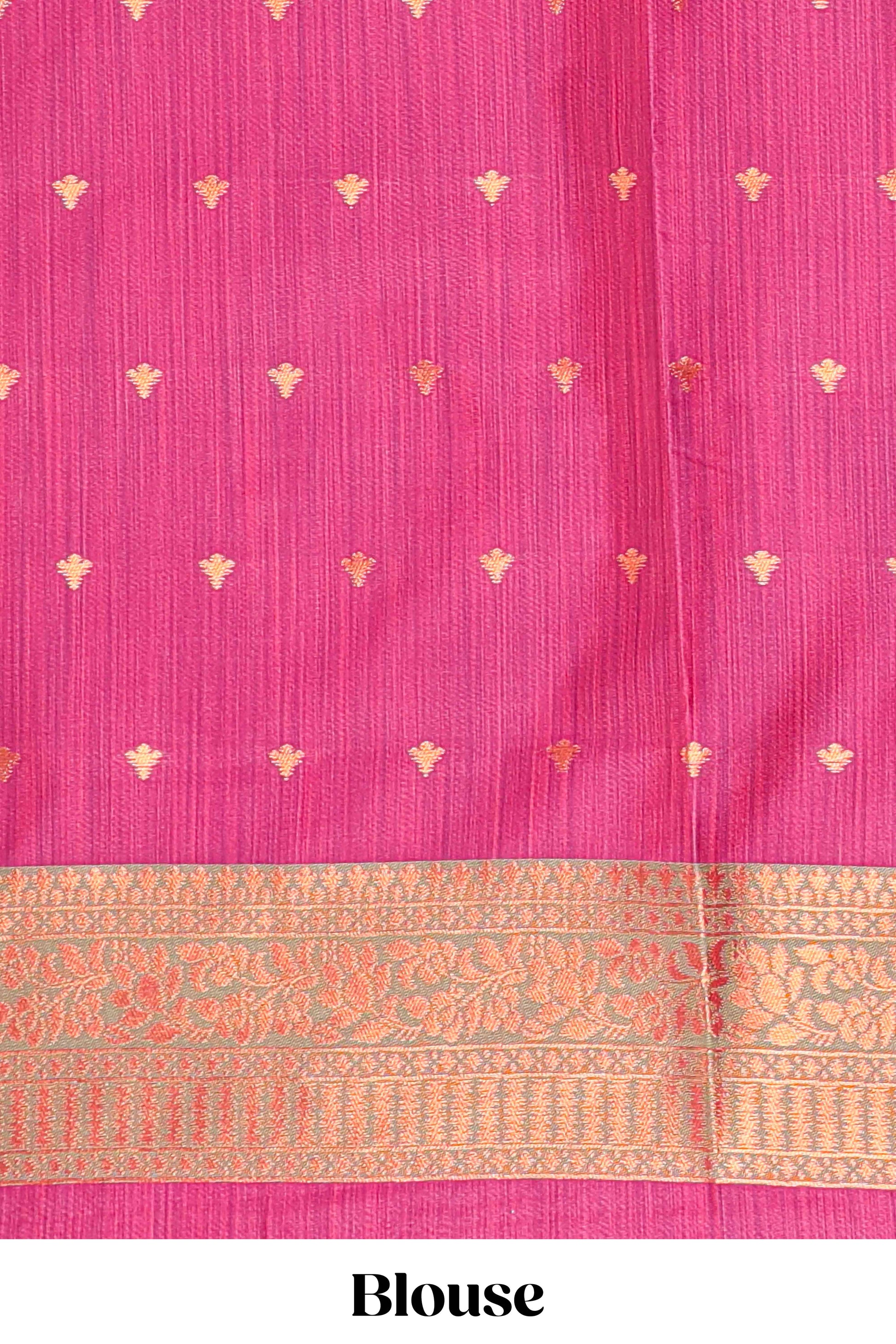 Pink Semi Soft Silk Saree Body All Over Leaf Motifs Zari Butti And Bentex Border With Grand Zari
