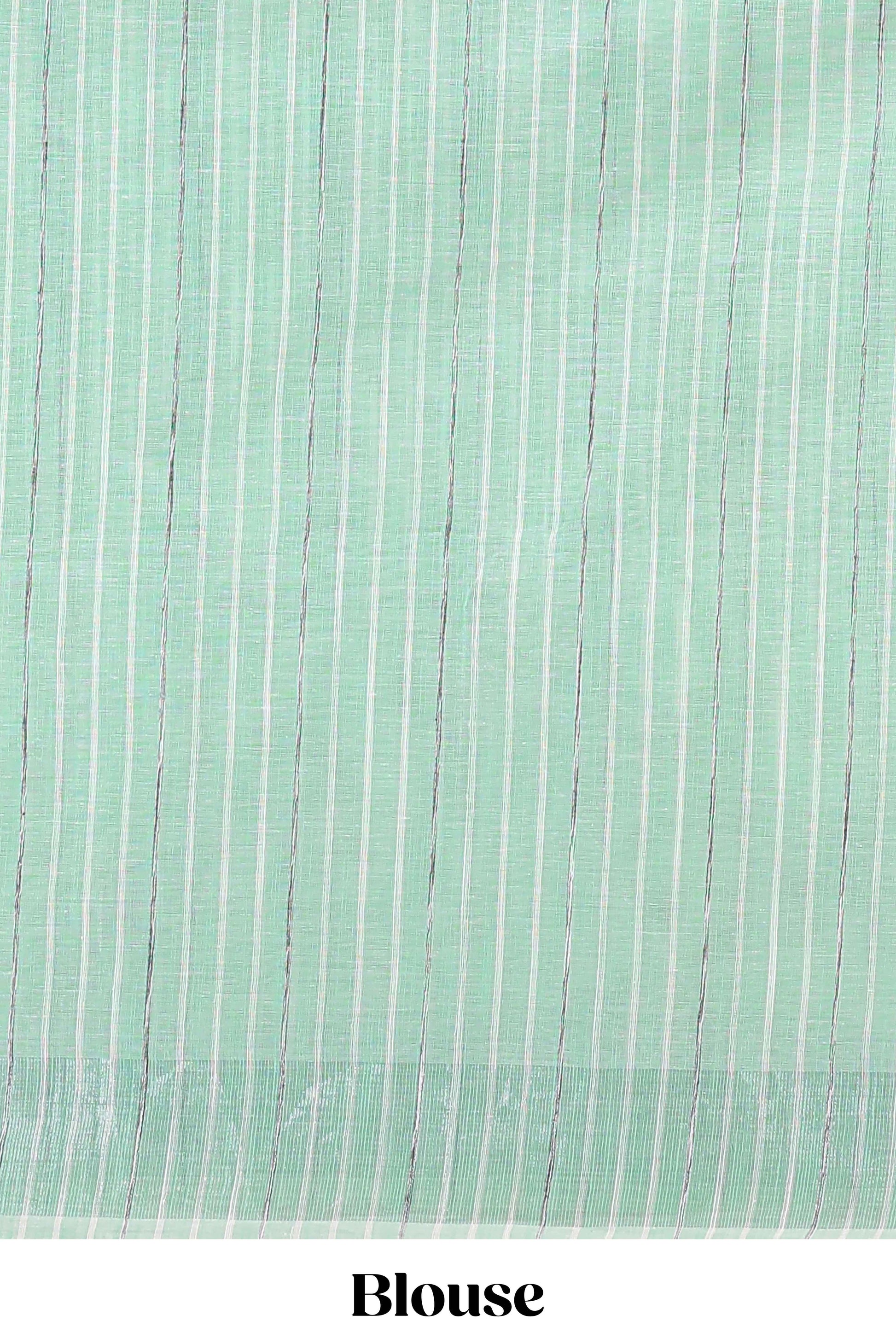 Pista green floral design jute cotton saree with self striped zari border and blouse