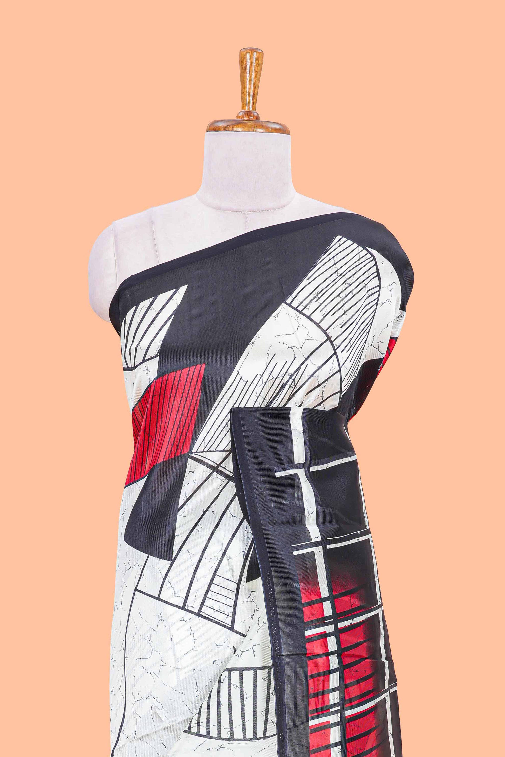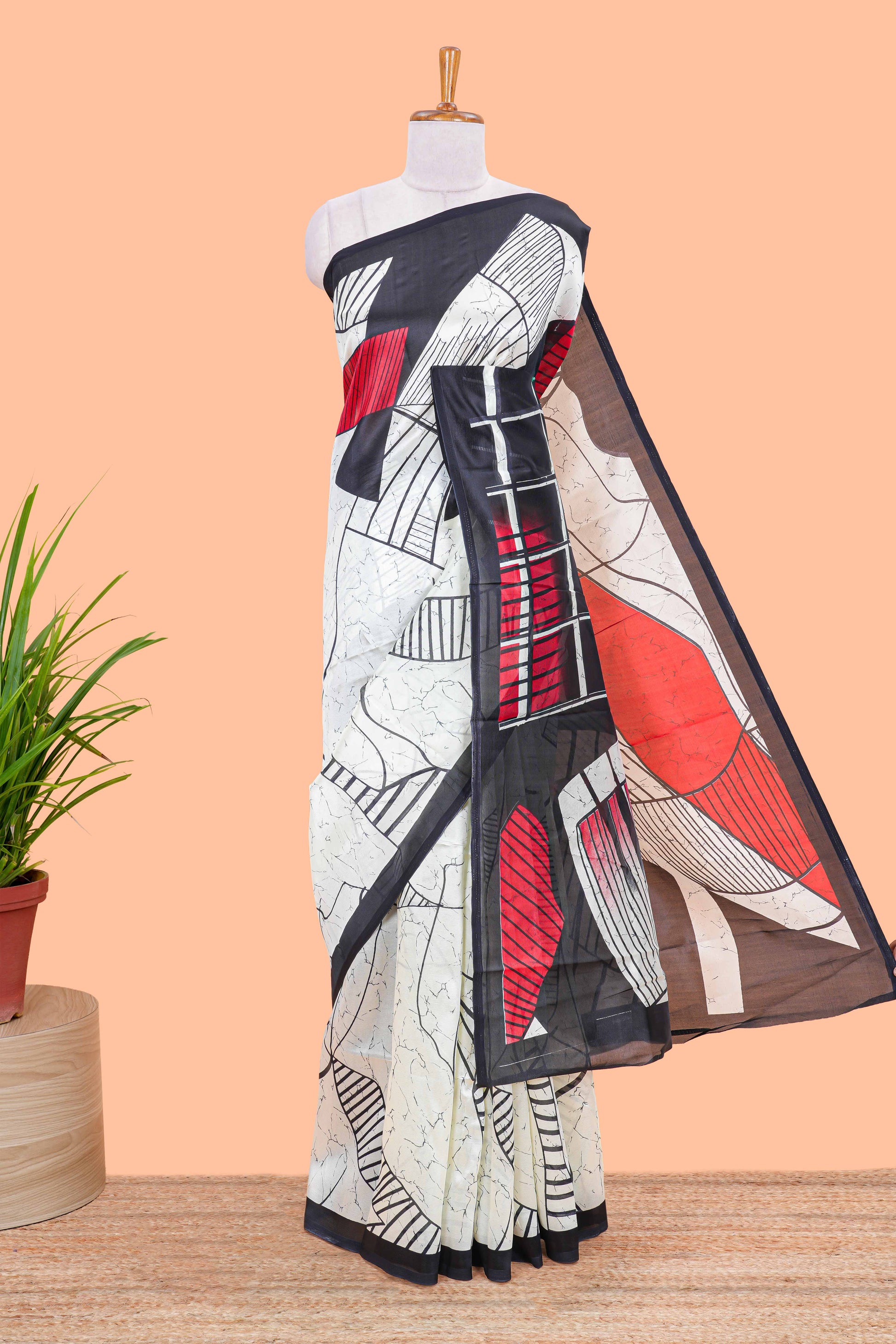 Powder Green Lichi Cotton Saree Border Less All Over Body And Pallu Abstract Print Design