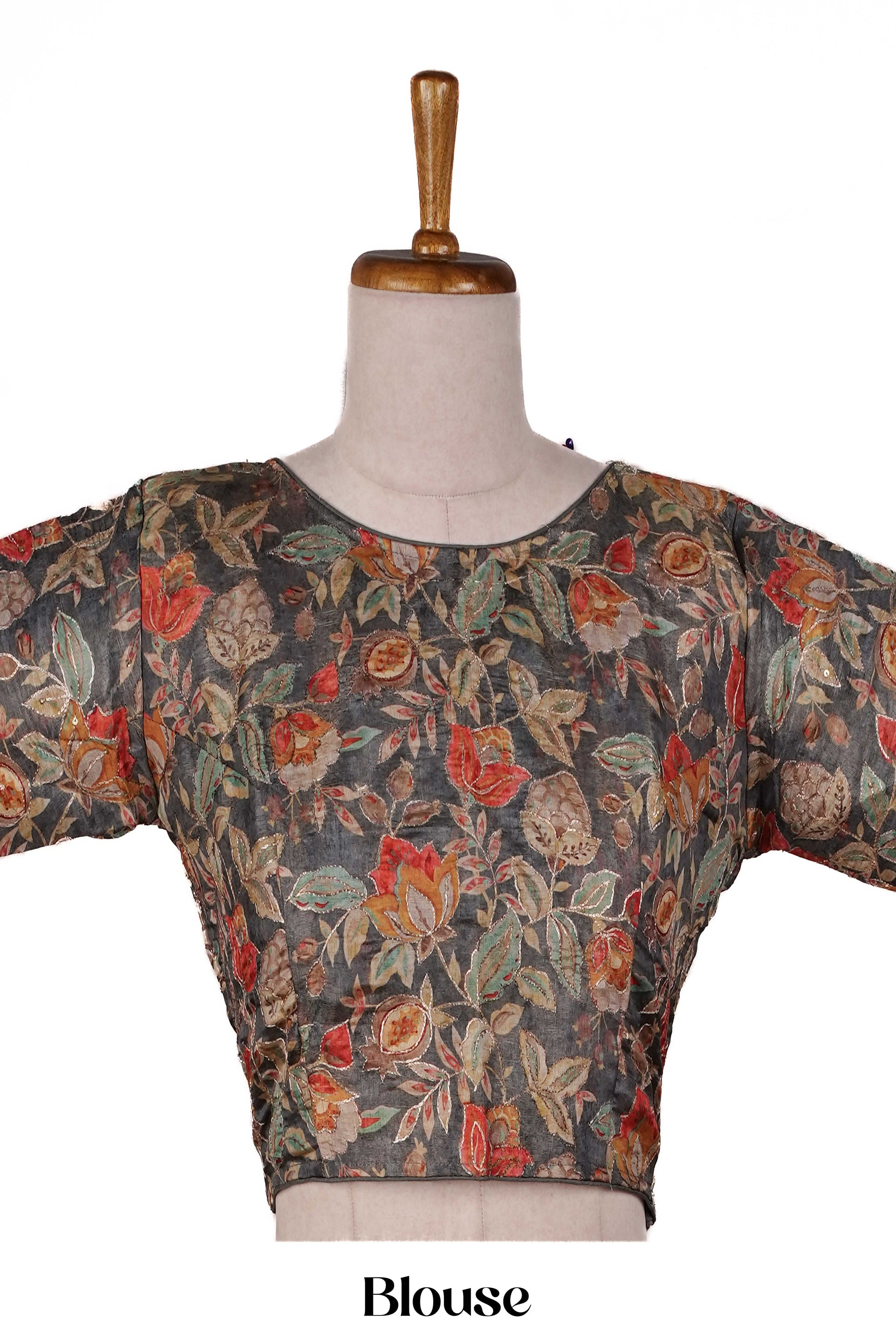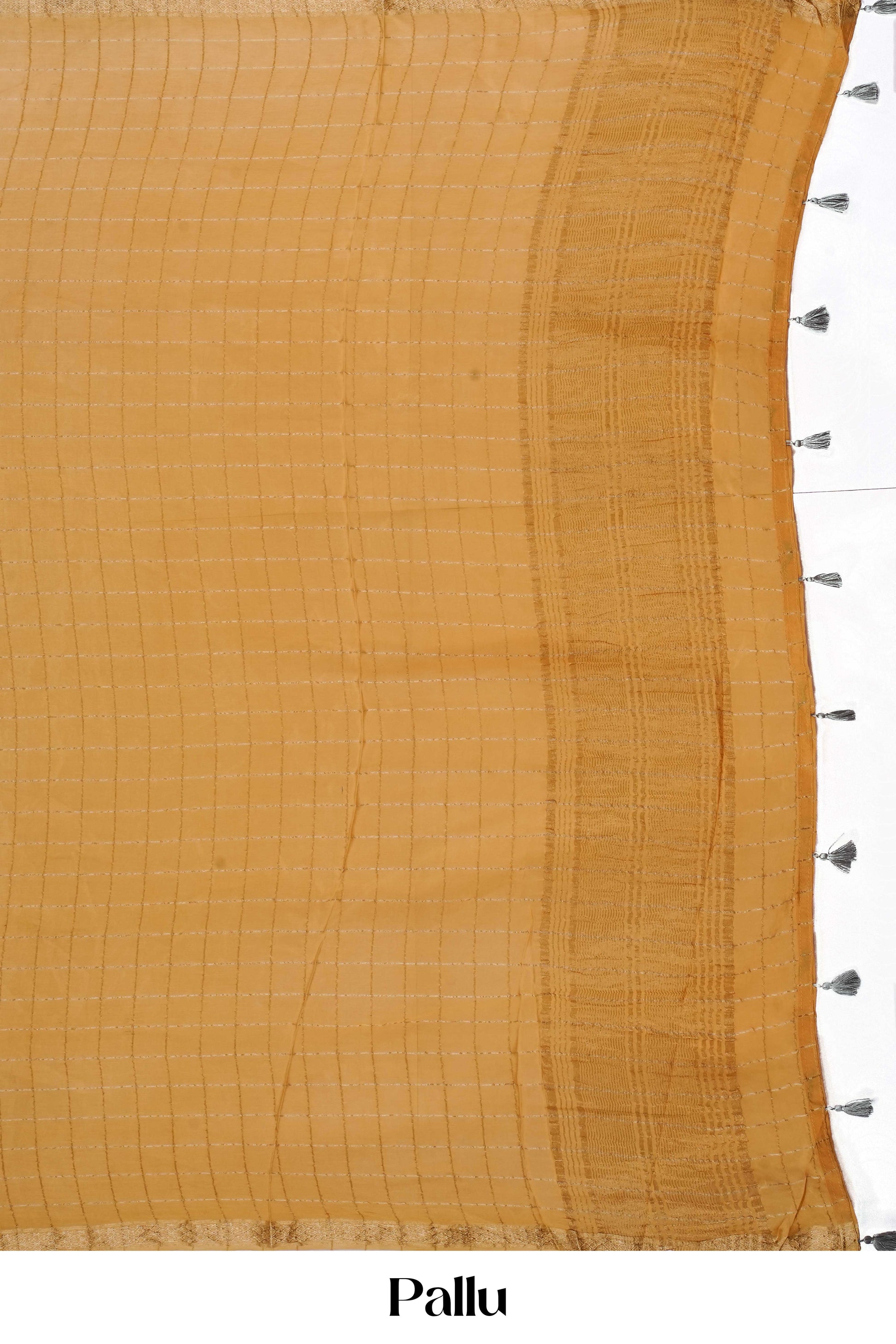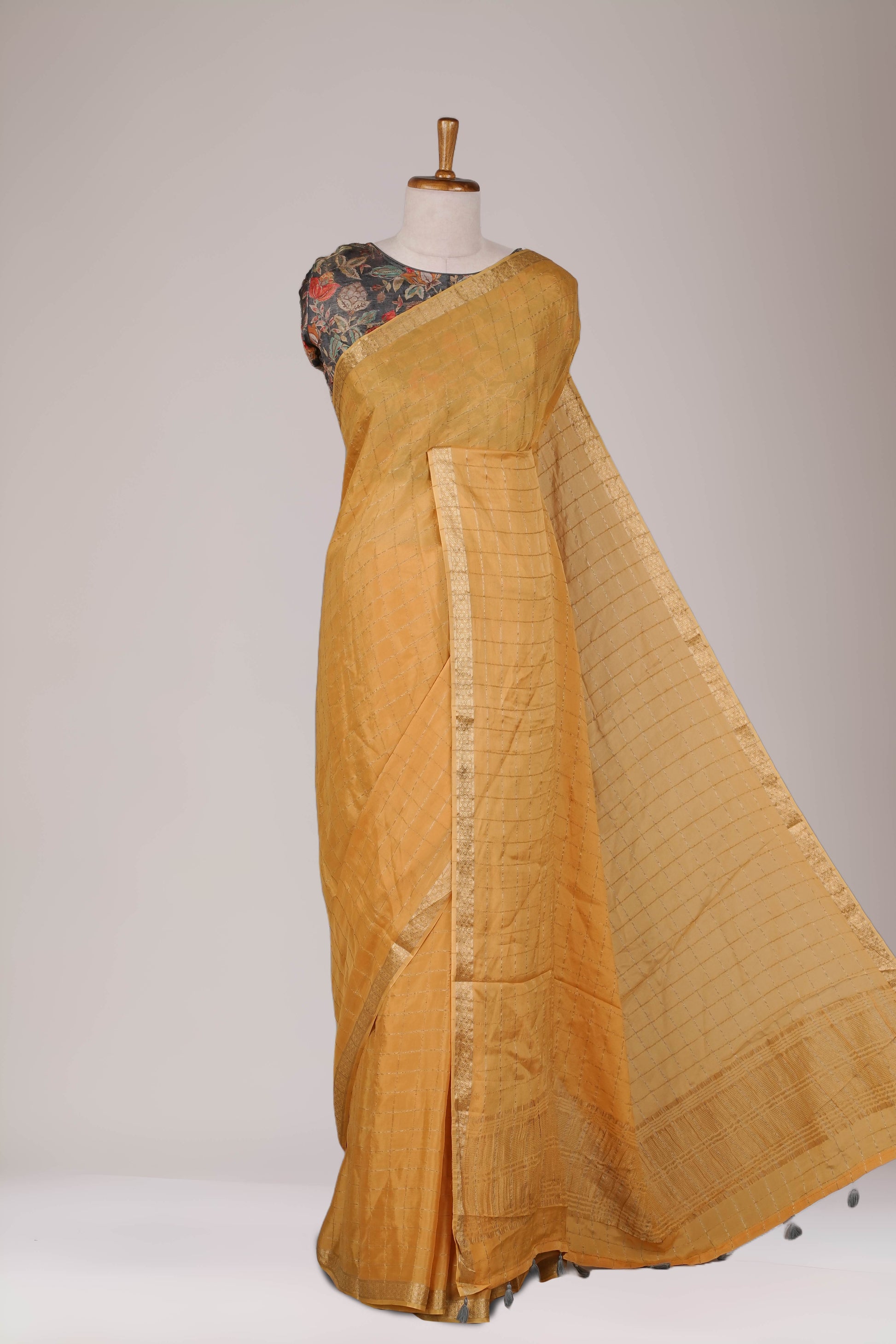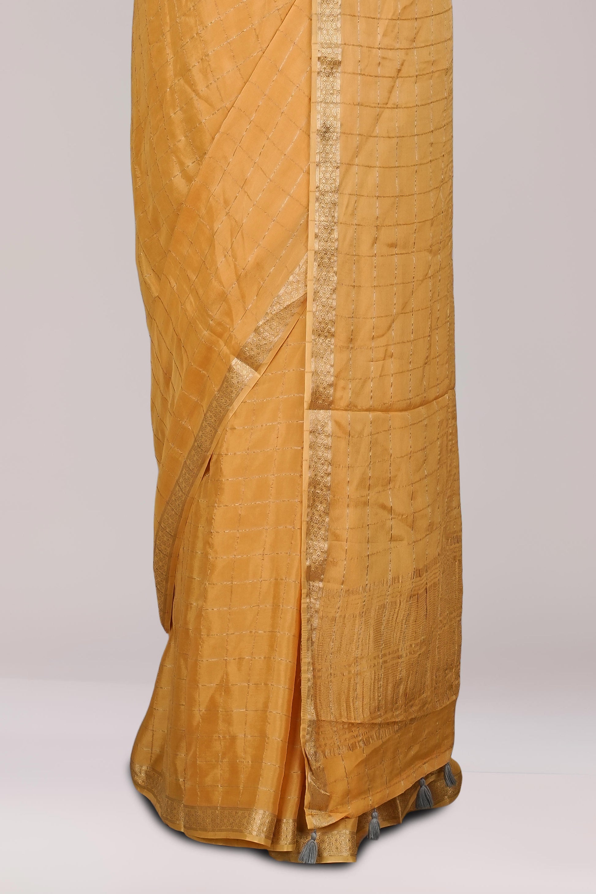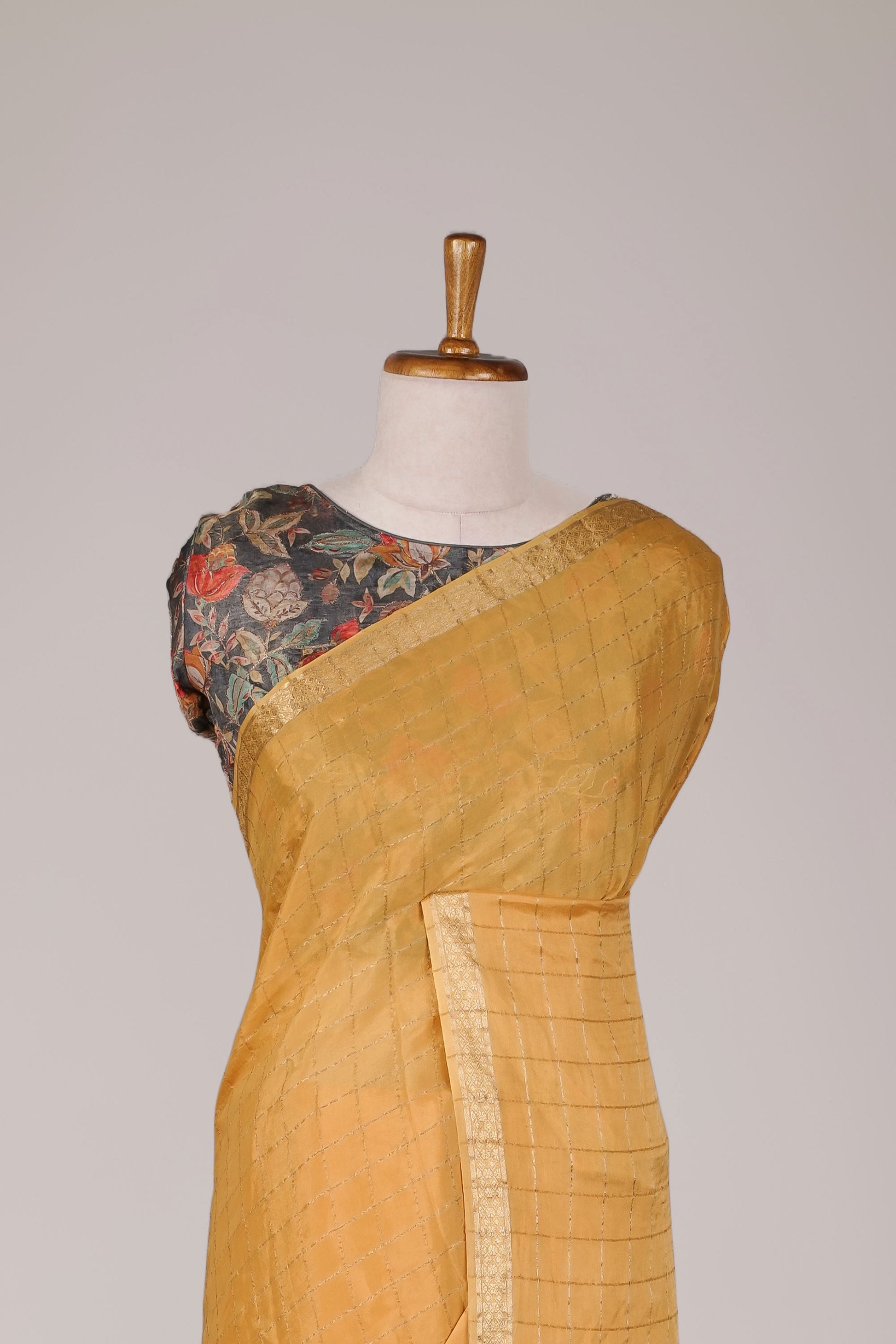 Satin Crepe Golden zari Checked With Readymade Blouse