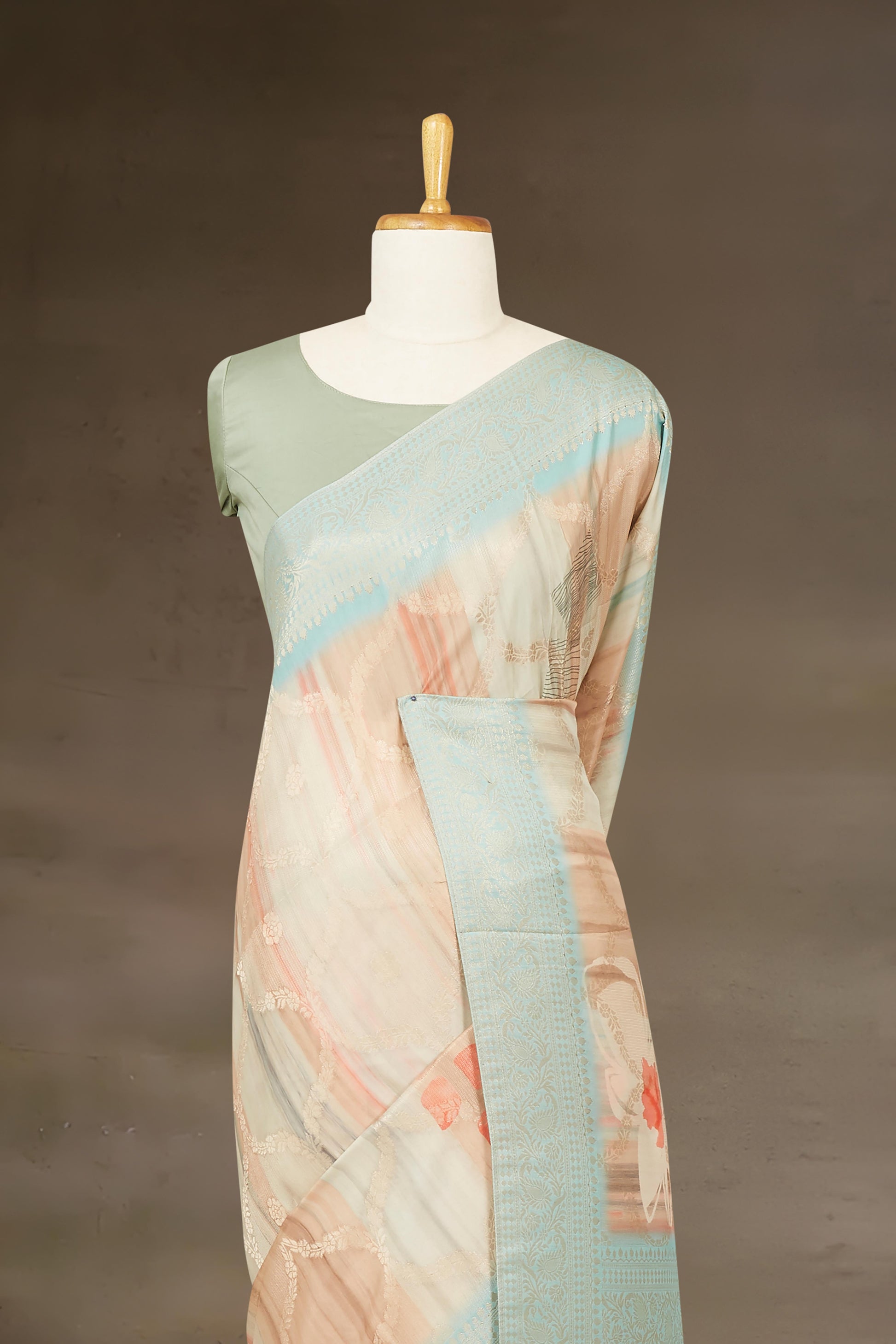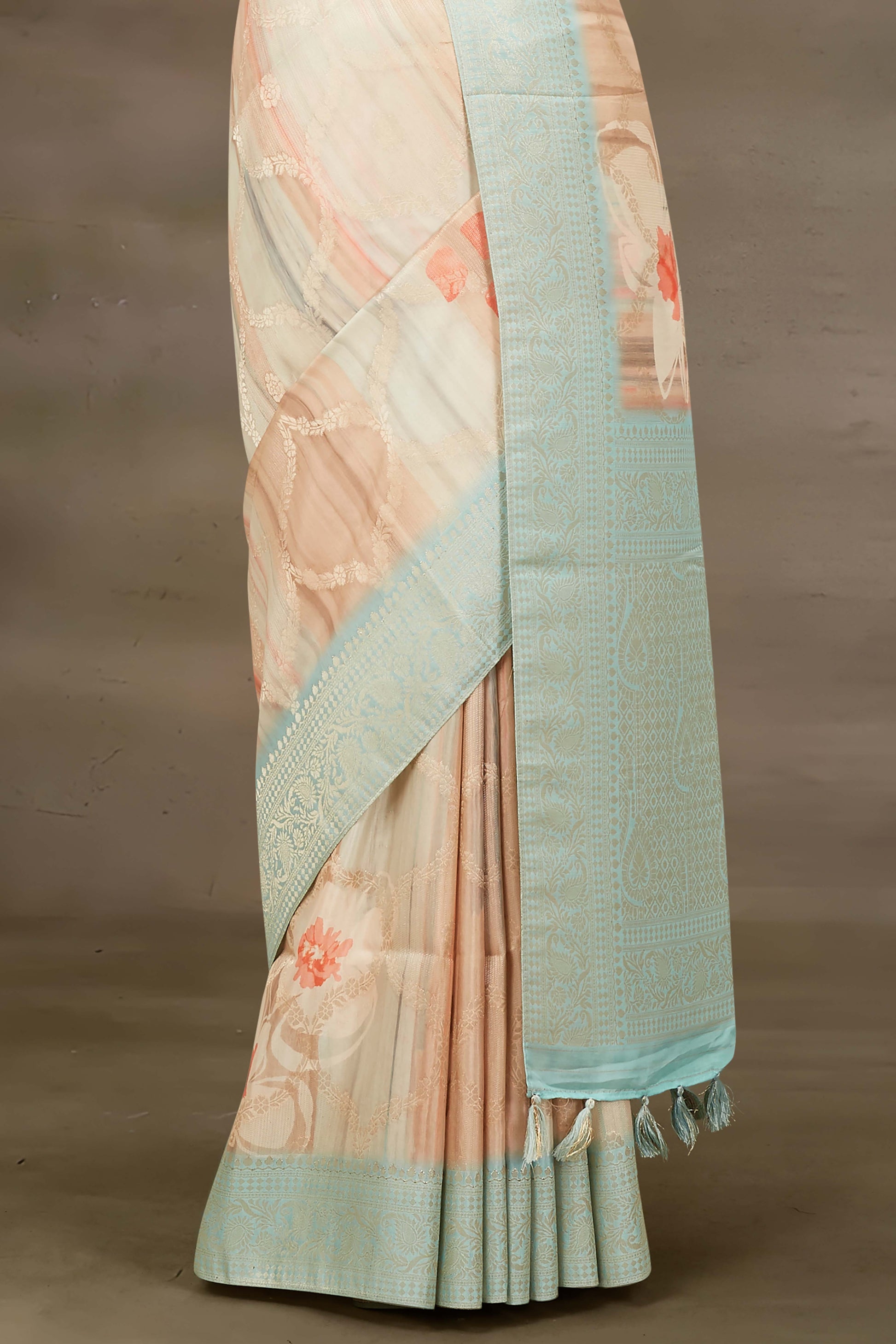 Tussar Digital Print With Zari Border