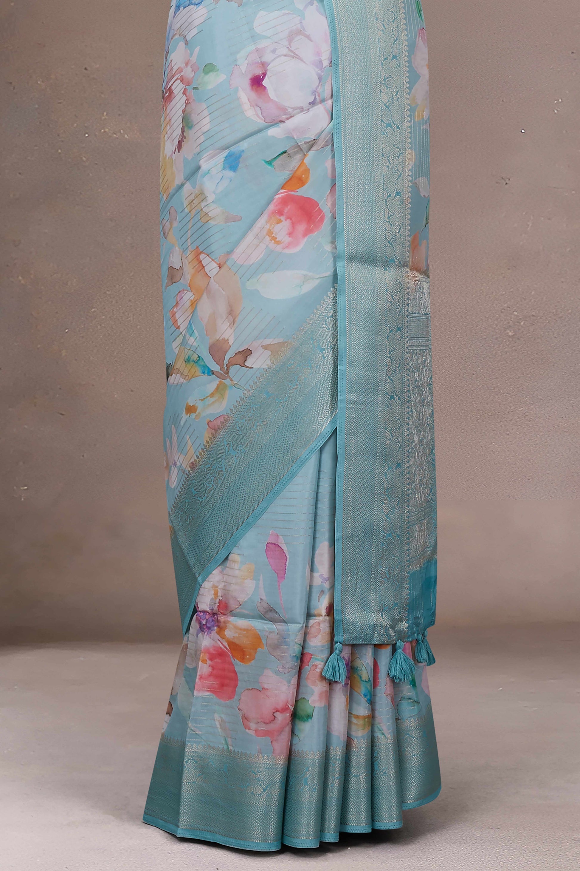 Tussar Digital Print Zari Border