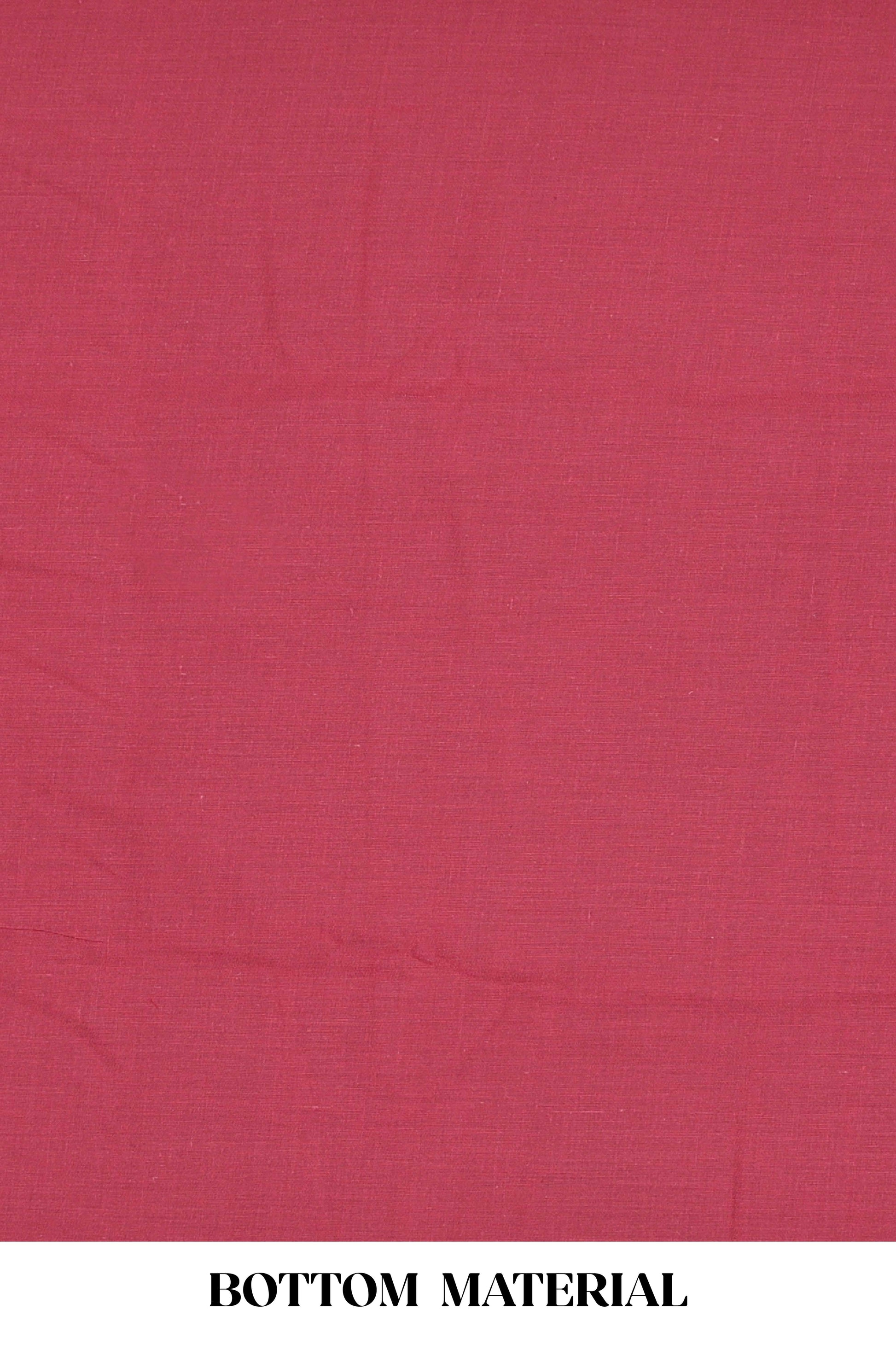 Red embroidered cotton silk chudidhar material with sequin thread work and contrast dupatta