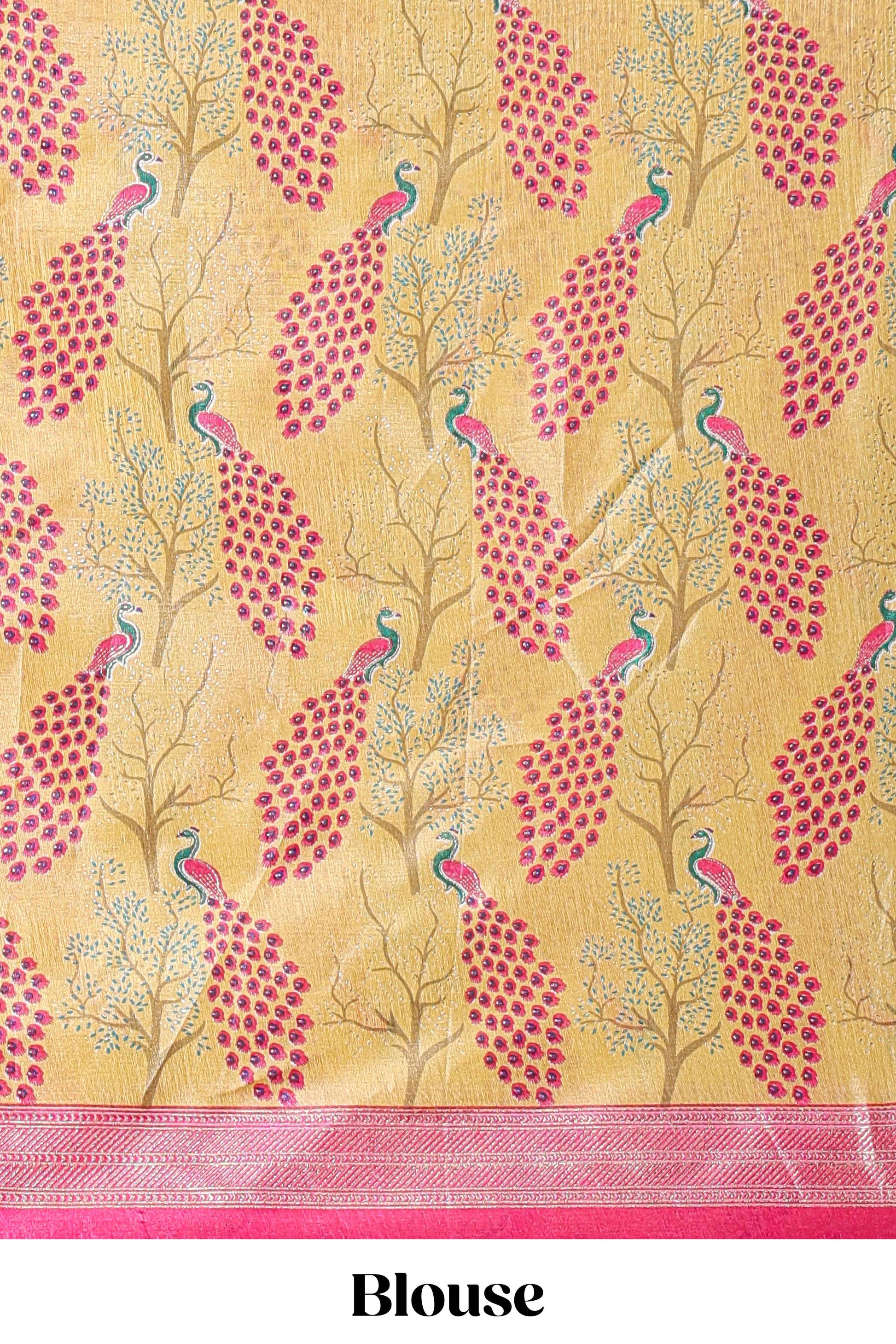 Sandal dola silk peacock and floral printed lehenga with contrast border and dhavani