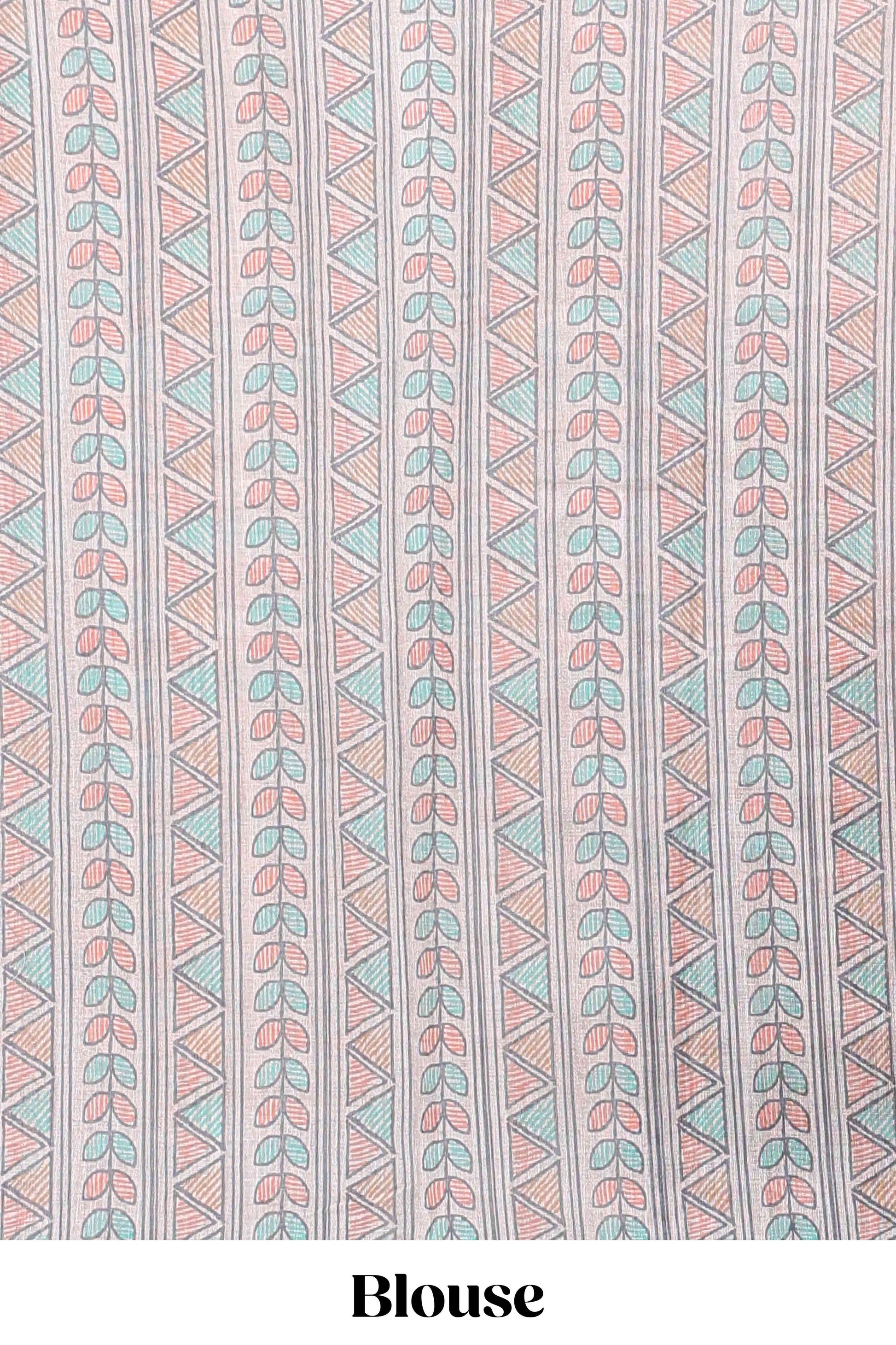 Sandal geometric pattern bandhani style linen cotton saree with self zari border and contrast printed pallu & blouse