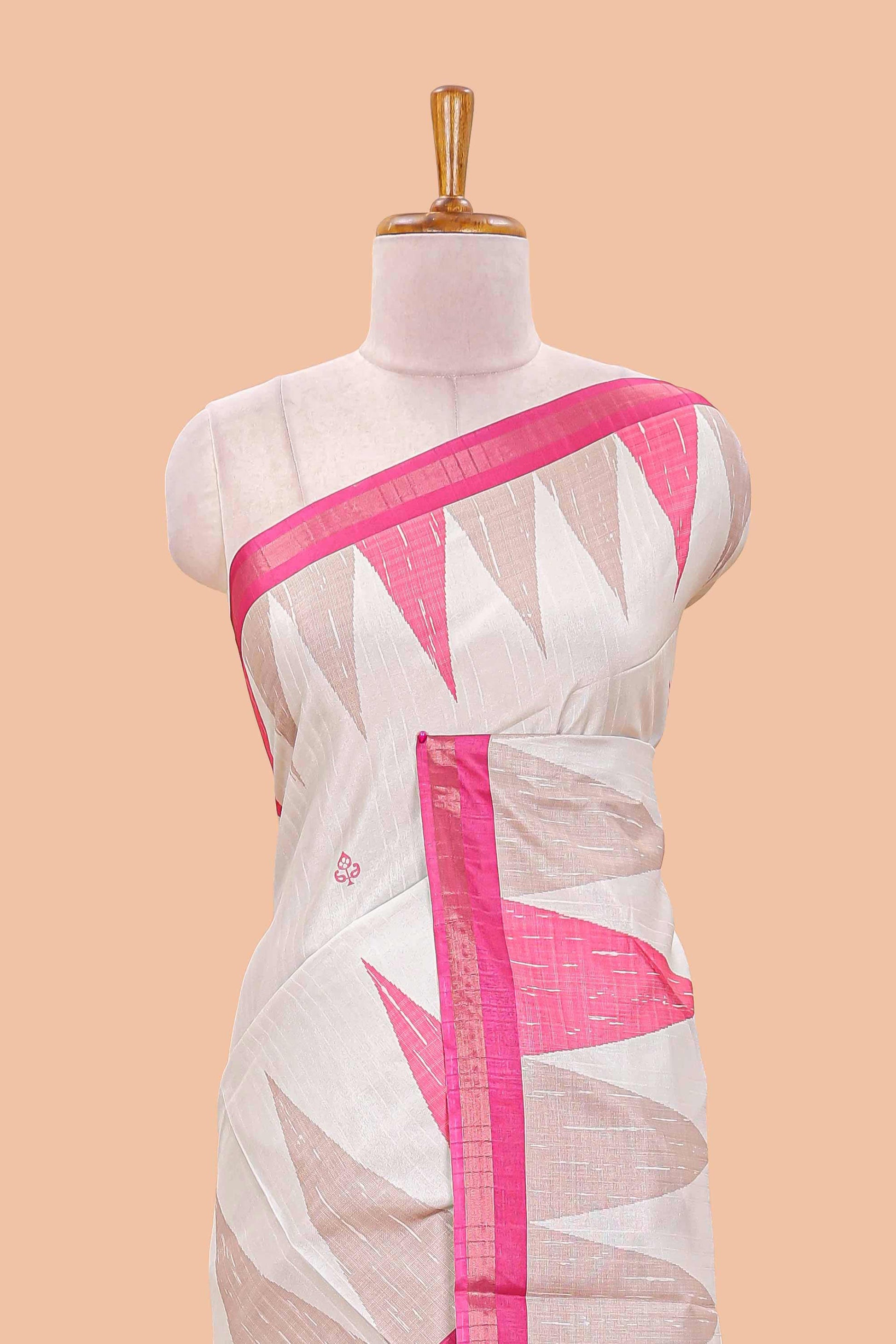 Sandal semi tussar silk saree with all over paisley butta, geometric ikkat pattern and zari border