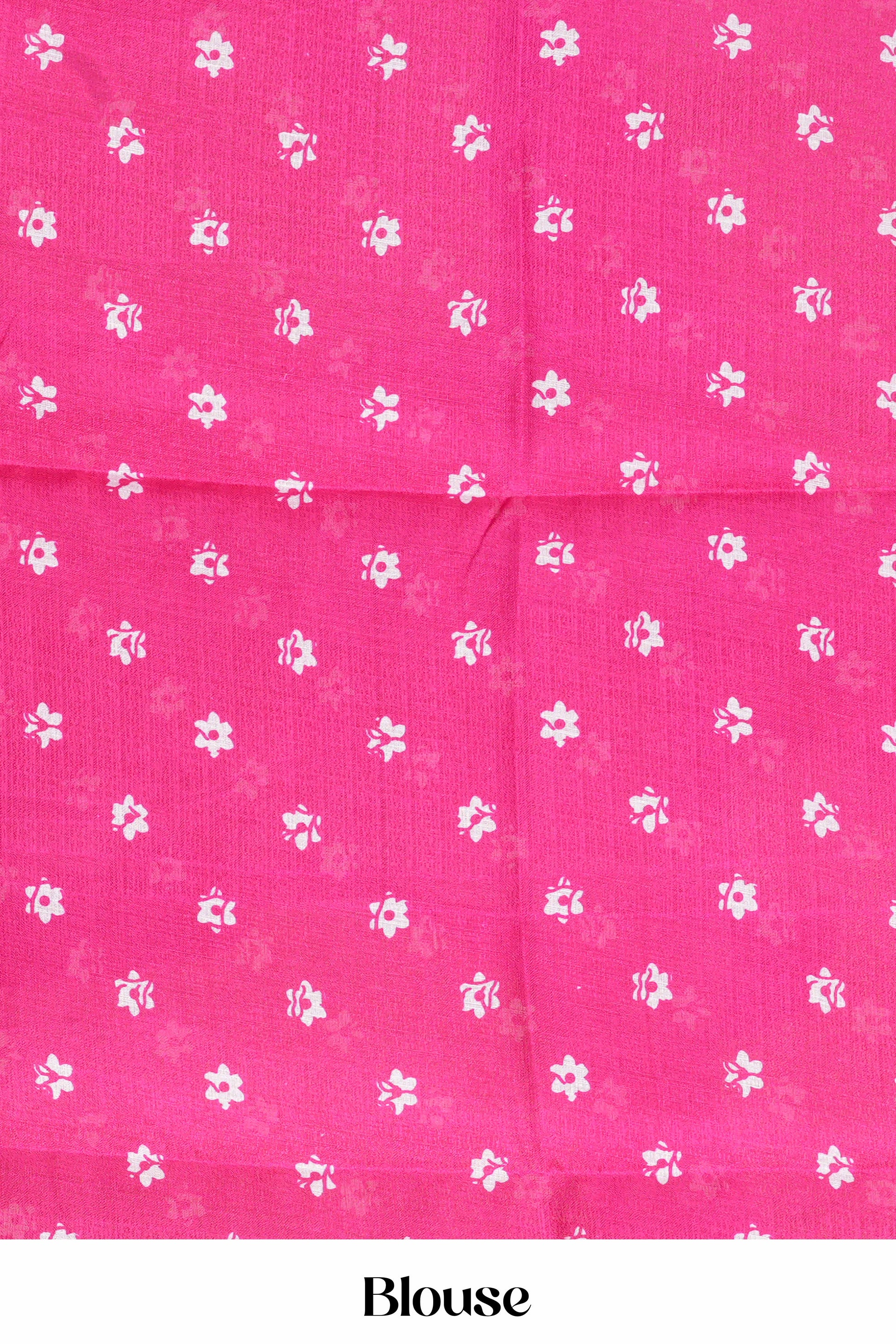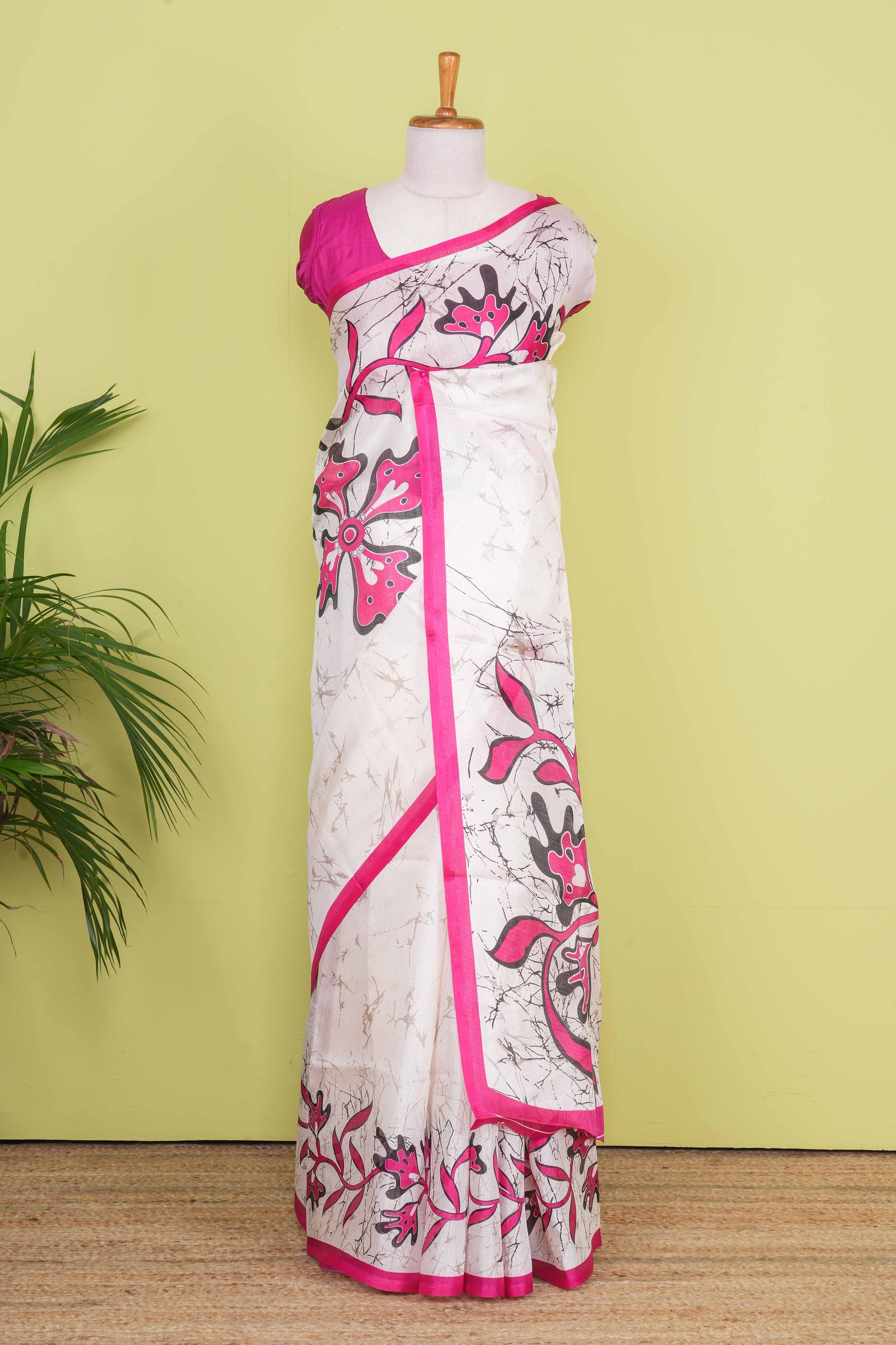 White Khadi Saree Digital Floral Print Across The Body With Contrast Border Along With Pink Flower Motifs Blouse