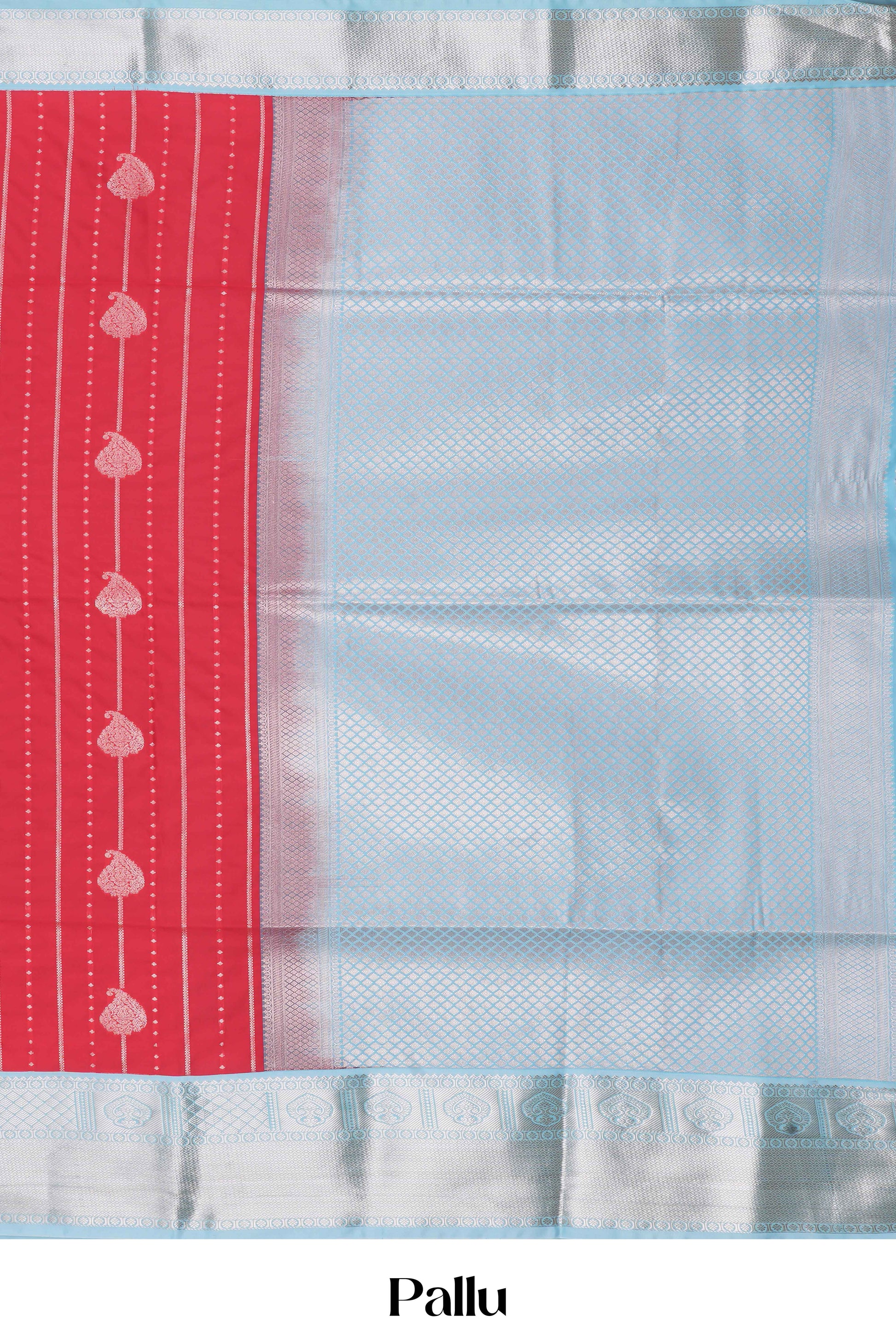 Red Luxury Silk Saree Zari Mango Motifs Weaving Across The Body With Contrast Copper Zari Weaving Pallu Along With Blouse