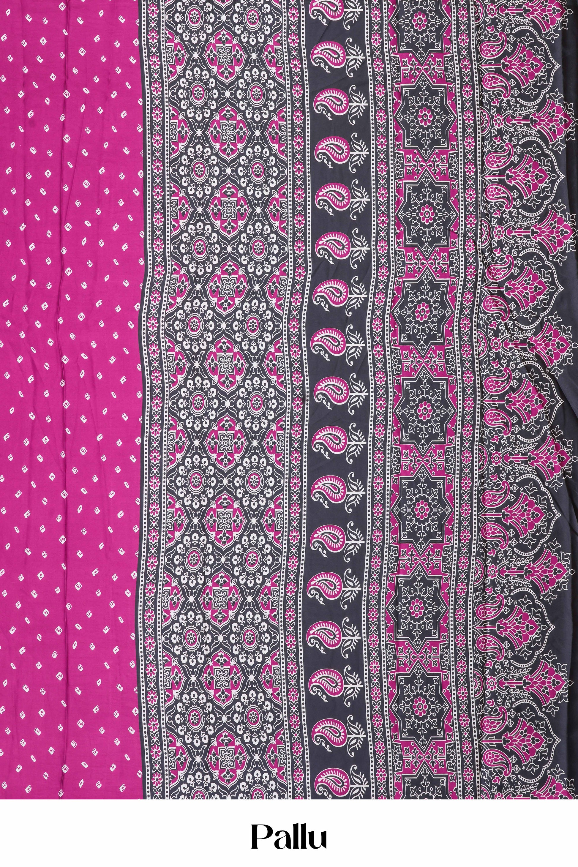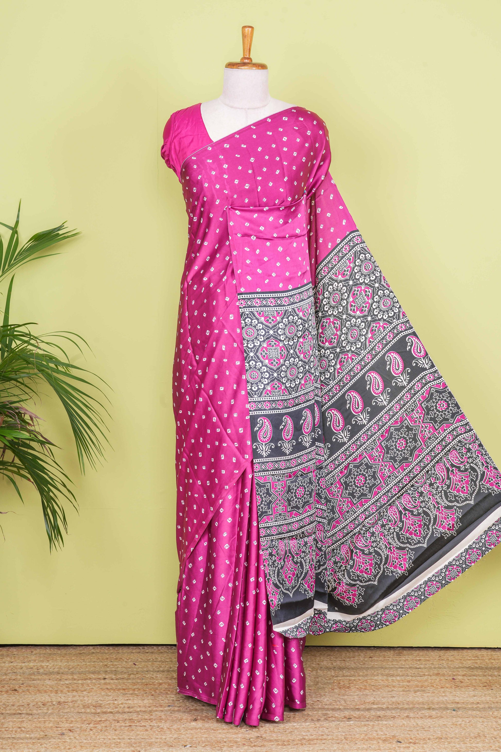 Pink Modal Silk Traditional and Contemporary Design Element Bandhani Print Across The Body With Ajrakh Design Pallu Along With Blouse