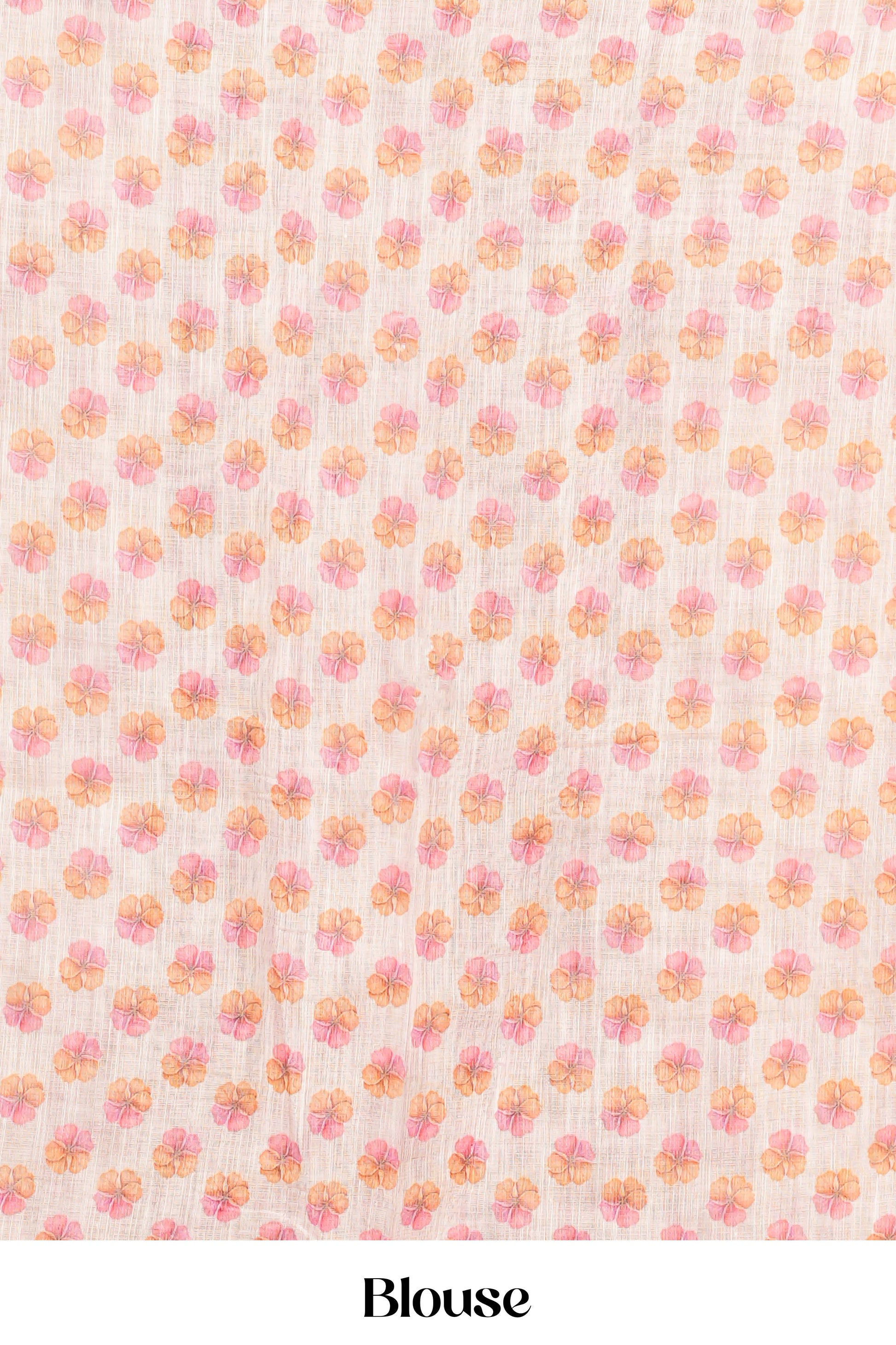 Sandal Linen Cotton Saree Flower Motifs Across The Body Along With Blouse