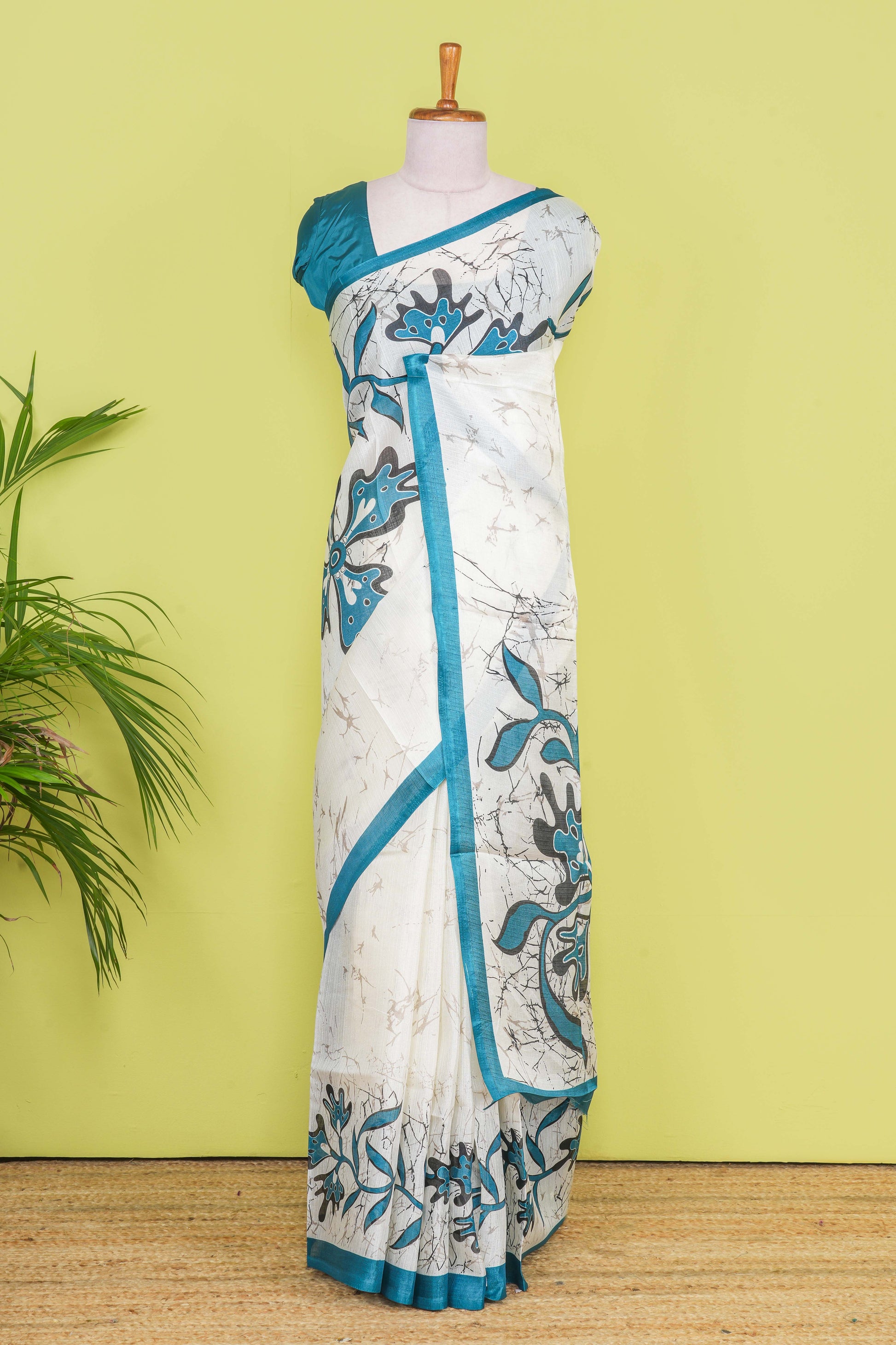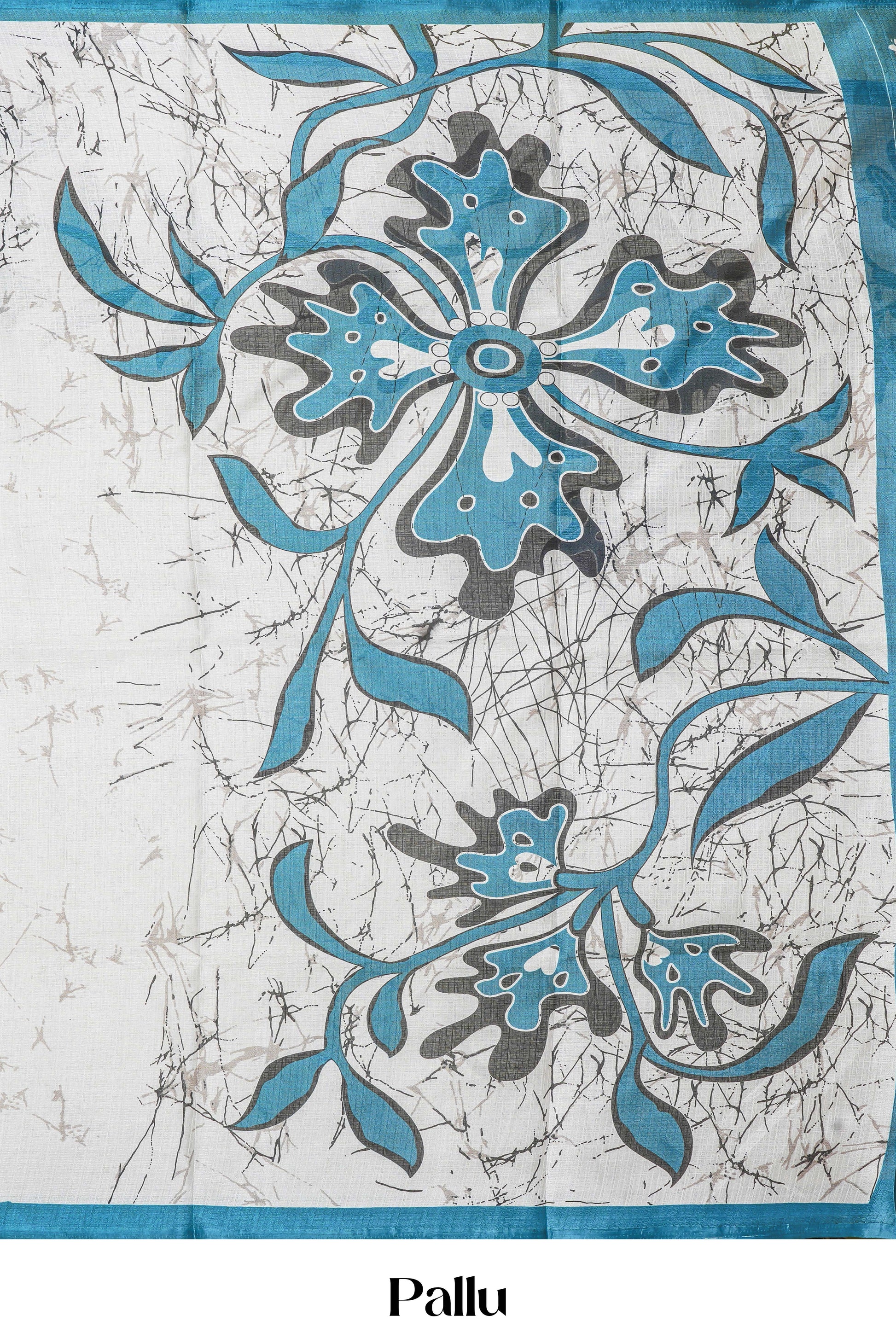 White Khadi Saree Digital Floral Print Across The Body With Contrast Border Along With Pink Flower Motifs Blouse