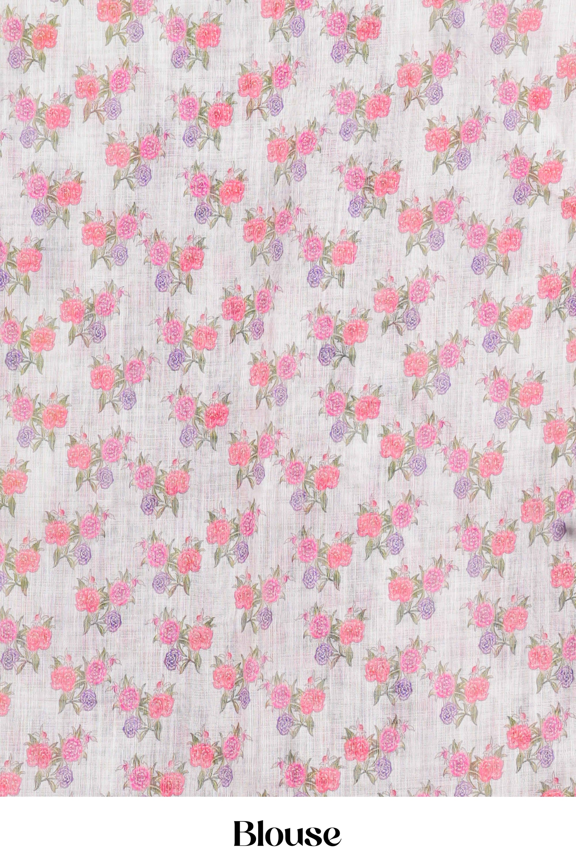 Sandal Linen Cotton Saree Flower Motifs Across The Body Along With Blouse