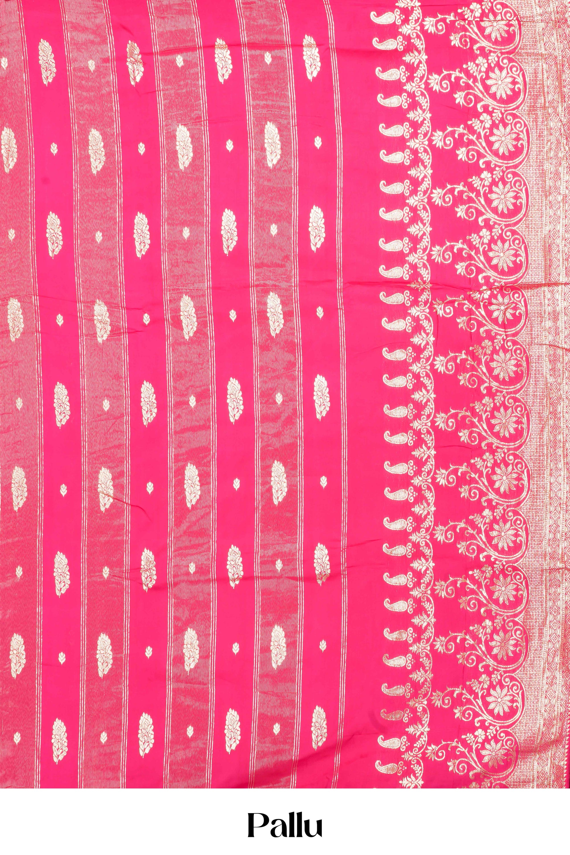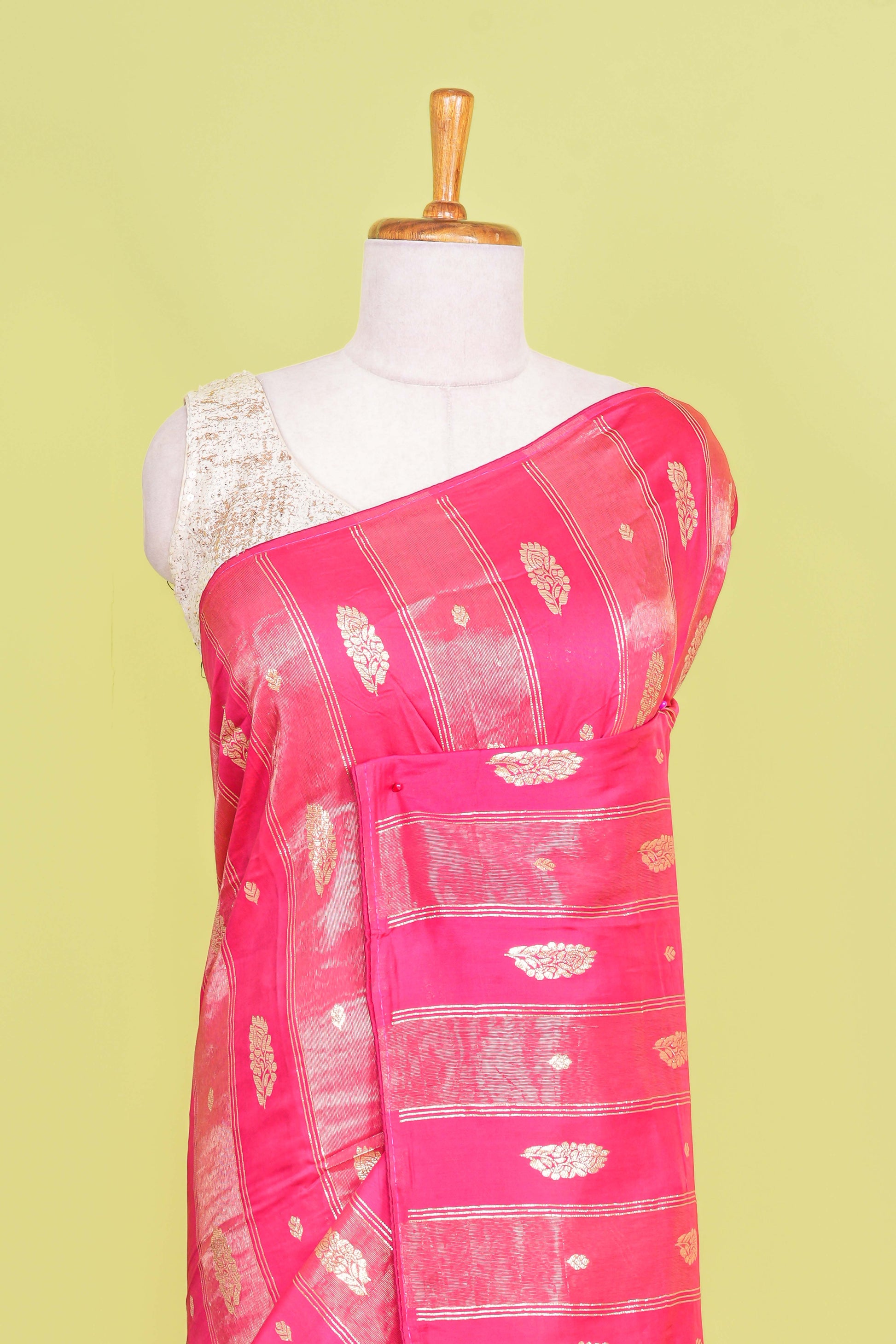 Rani Pink Viscose Georgette Saree Zari Woven Stripes, Floral Pattern Across The Body With Paisley Motifs Pallu Along With Zari Butta Blouse