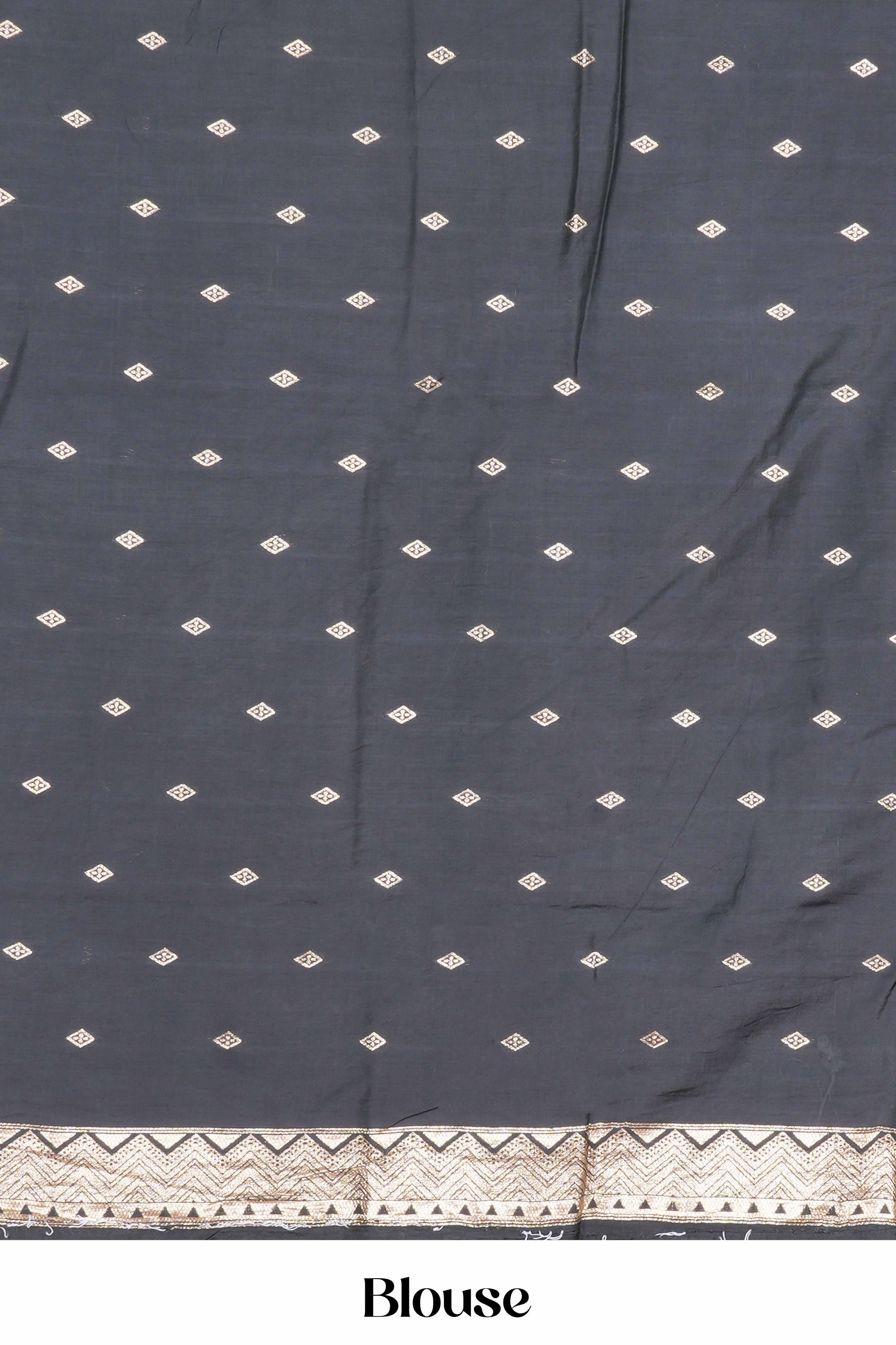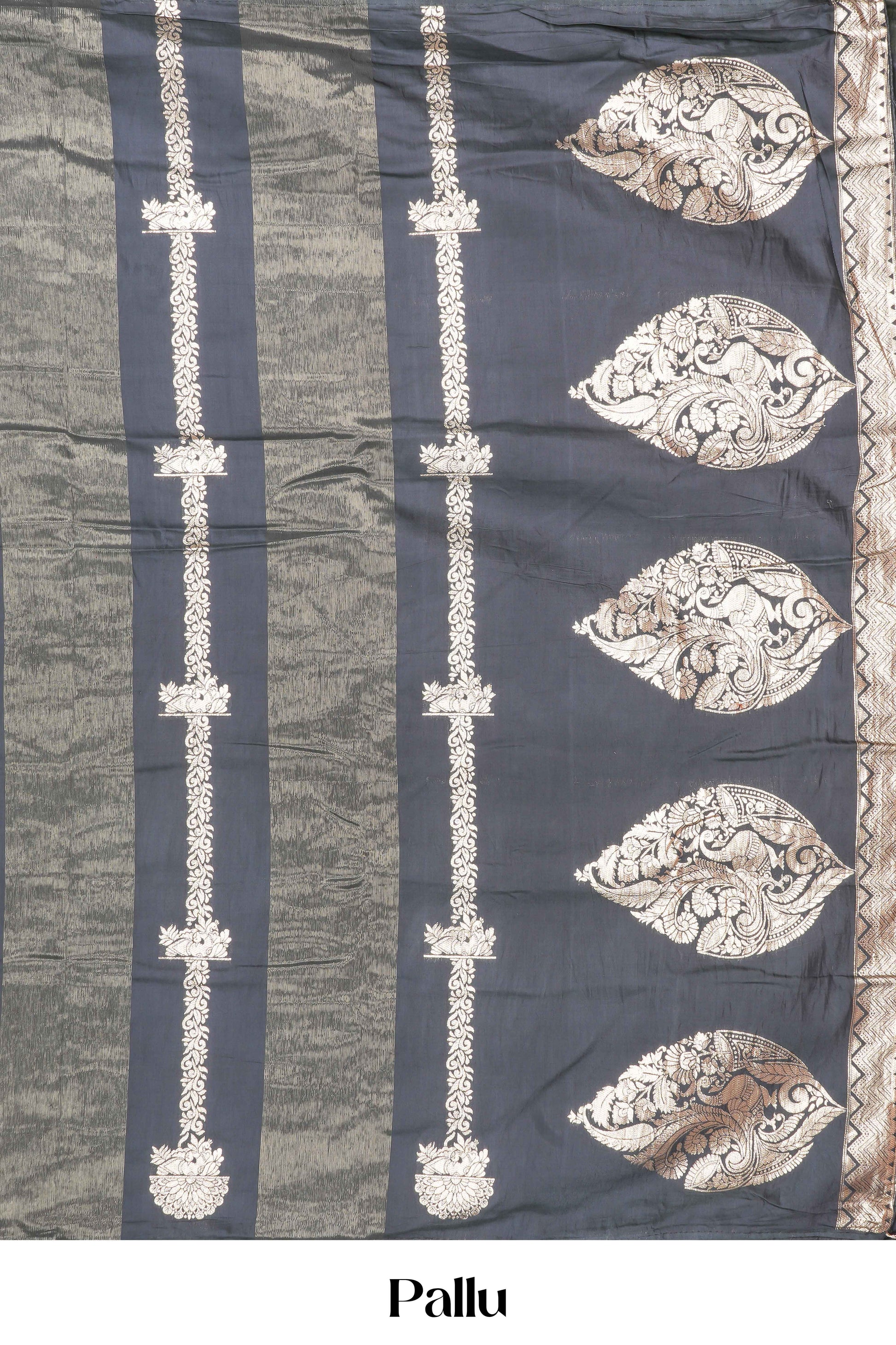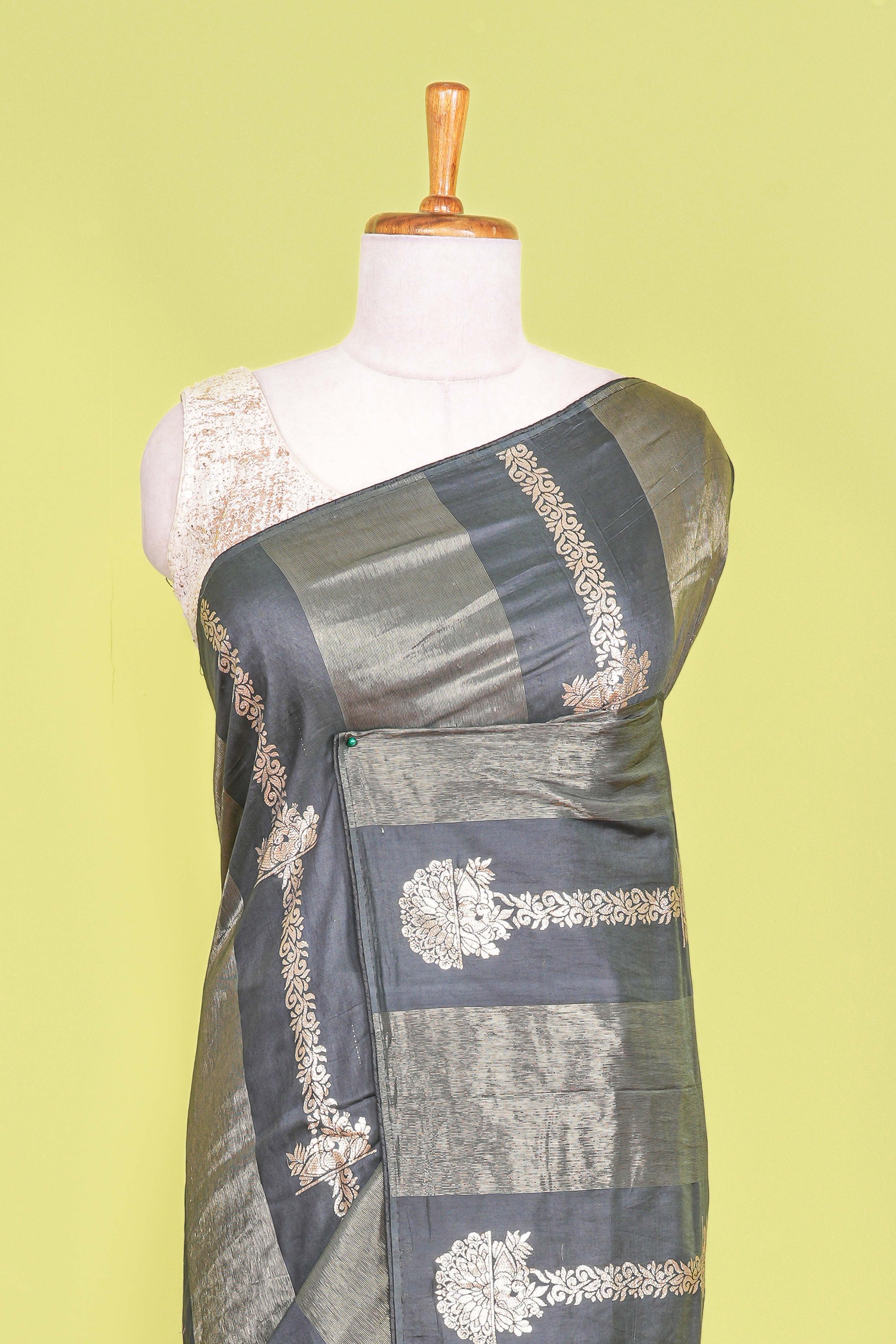 Grey Viscose Georgette Saree Zari Woven Stripes, Floral Pattern Across The Body With Paisley Motifs Pallu Along With Zari Butta Blouse