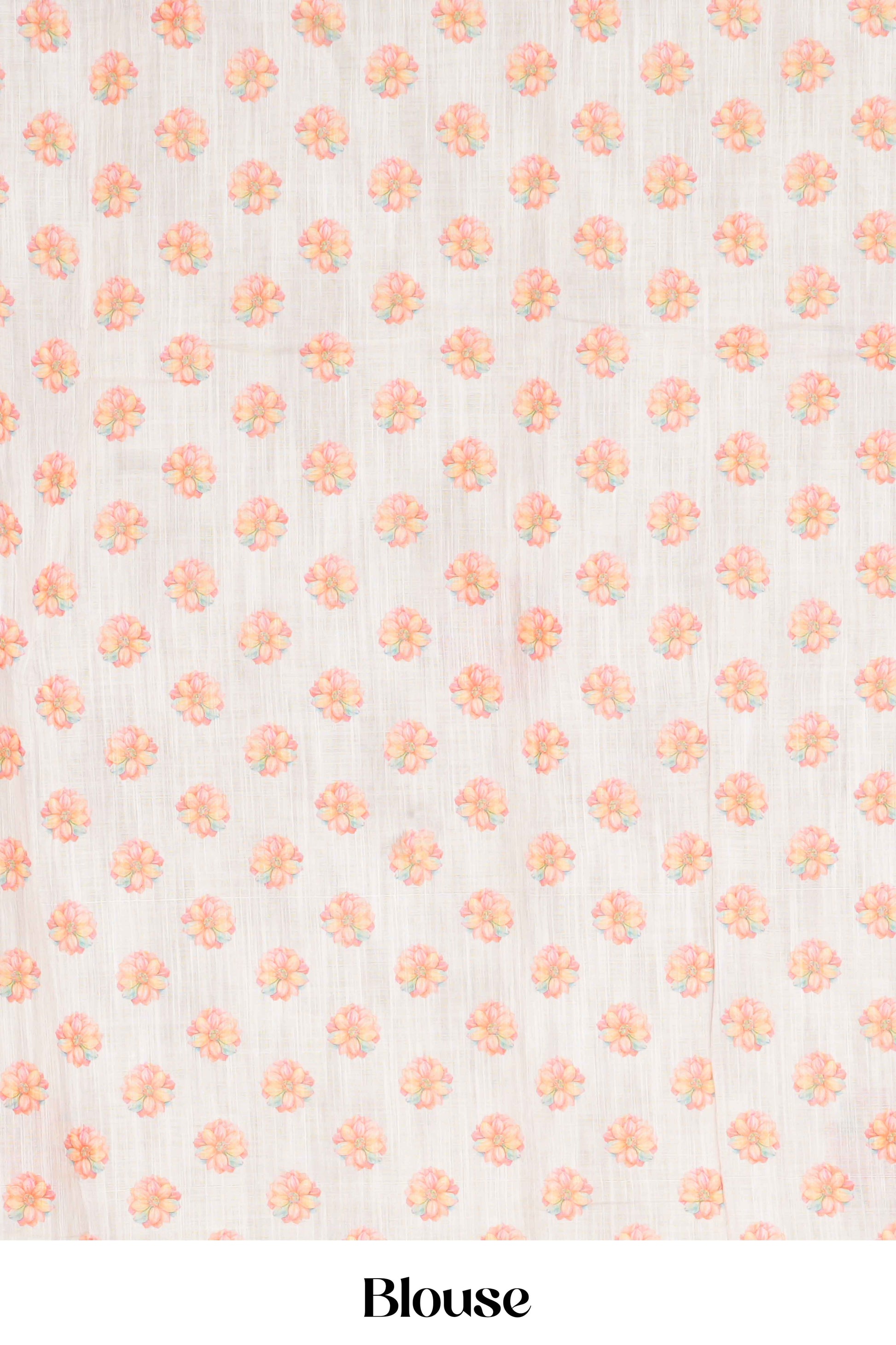 Sandal Linen Cotton Saree Flower Motifs Across The Body Along With Blouse