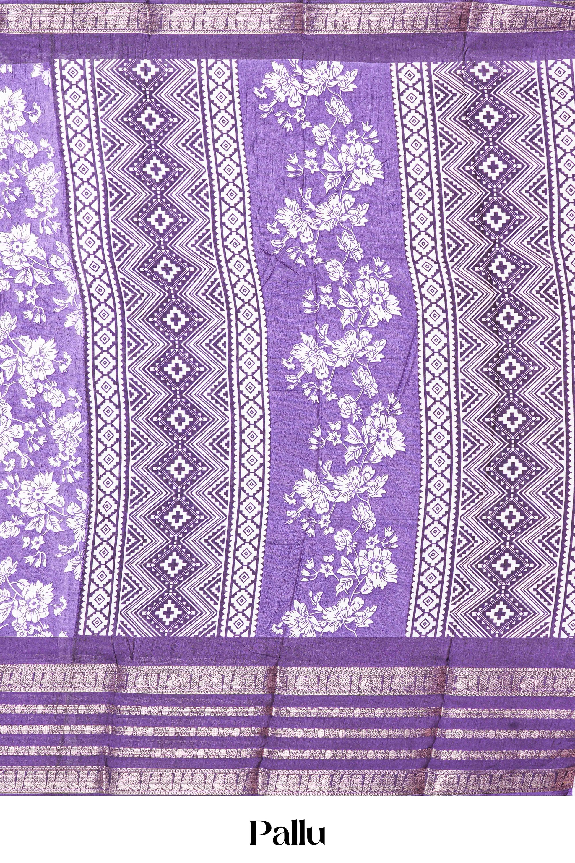 Violet Dola Silk Saree All- Over Floral Design With Zari Border Along With Flower Motifs Blouse