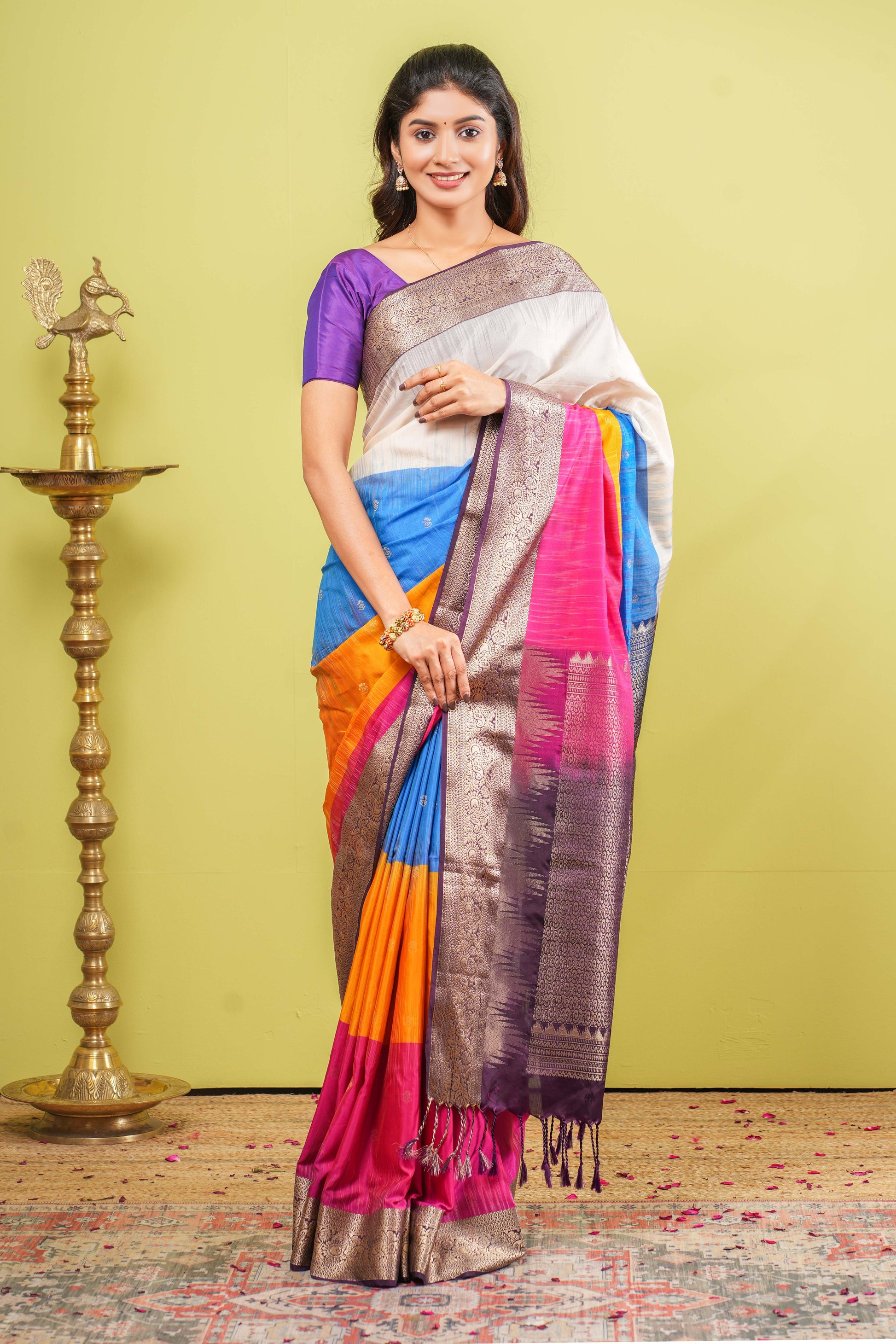 Multi Colours Small Butta Ketti Border Rich Pallu With Blouse