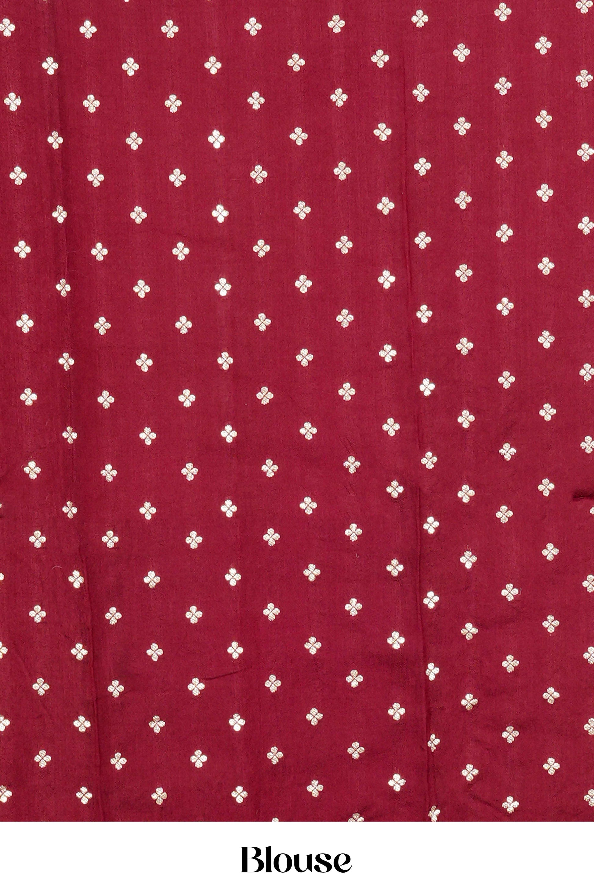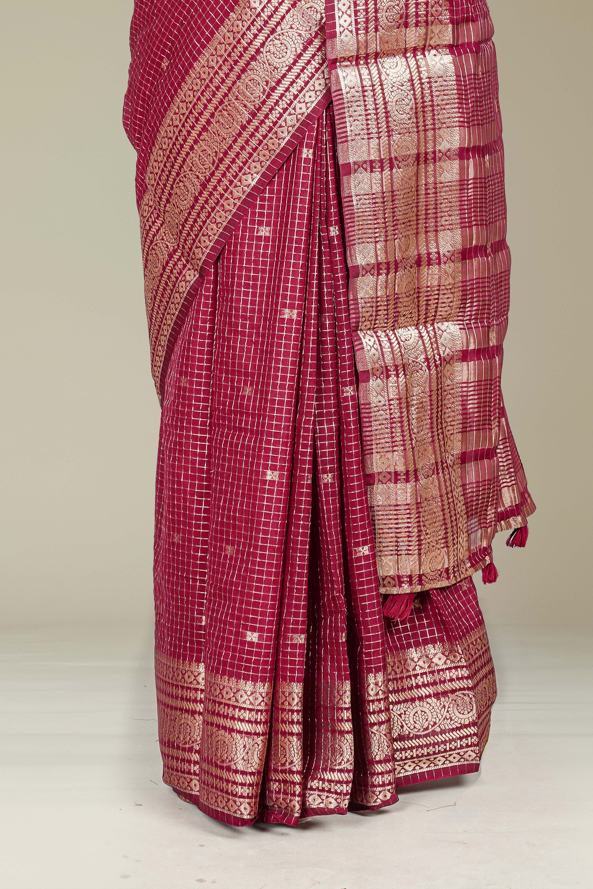 Maroon Georgette Saree Rich Golden Zari Check Pattern Woven & Small Butta Across The Body With Zari Weaving Stripes Pallu Along With Blouse