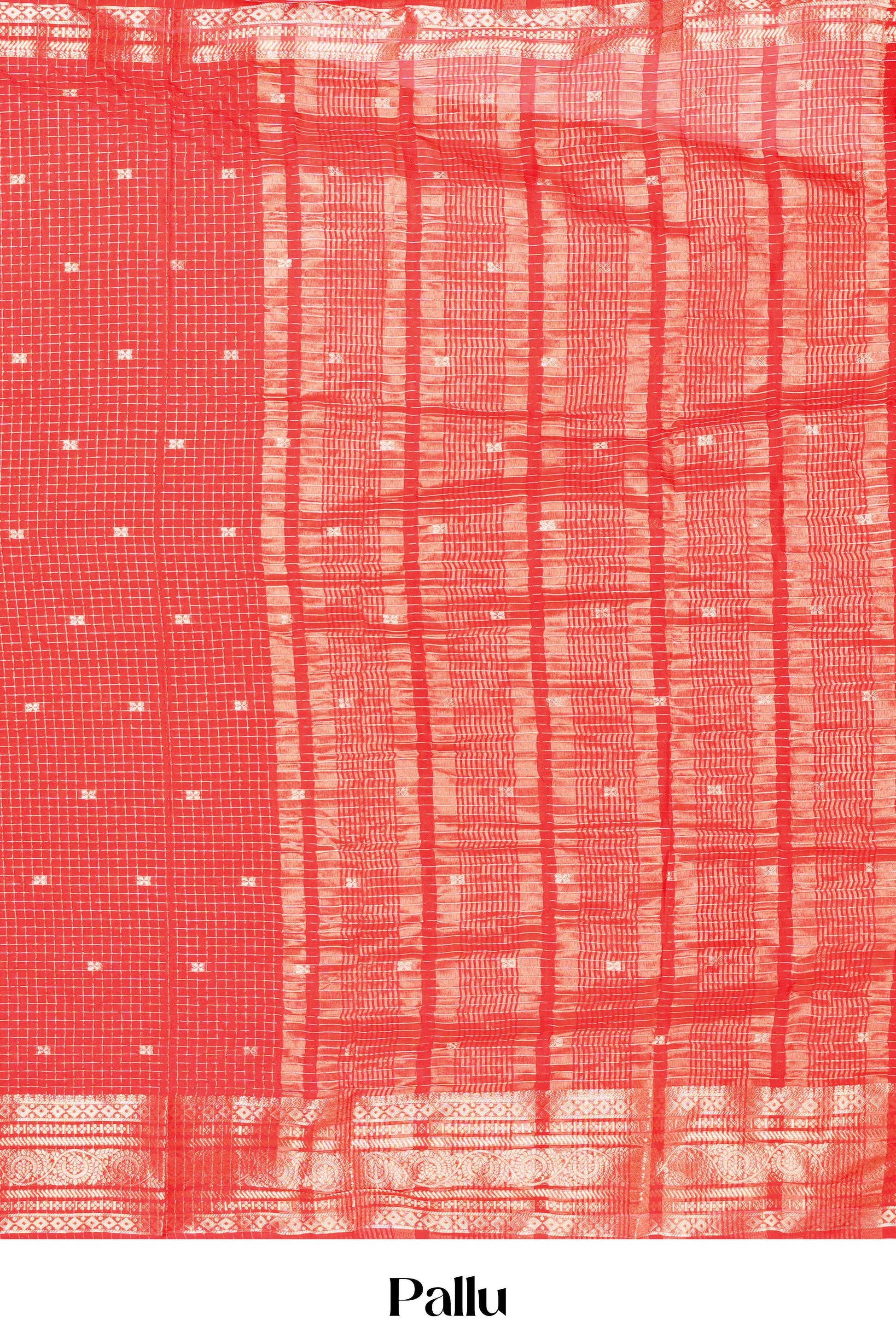 Red Georgette Saree Rich Golden Zari Check Pattern Woven & Small Butta Across The Body With Zari Weaving Stripes Pallu Along With Blouse