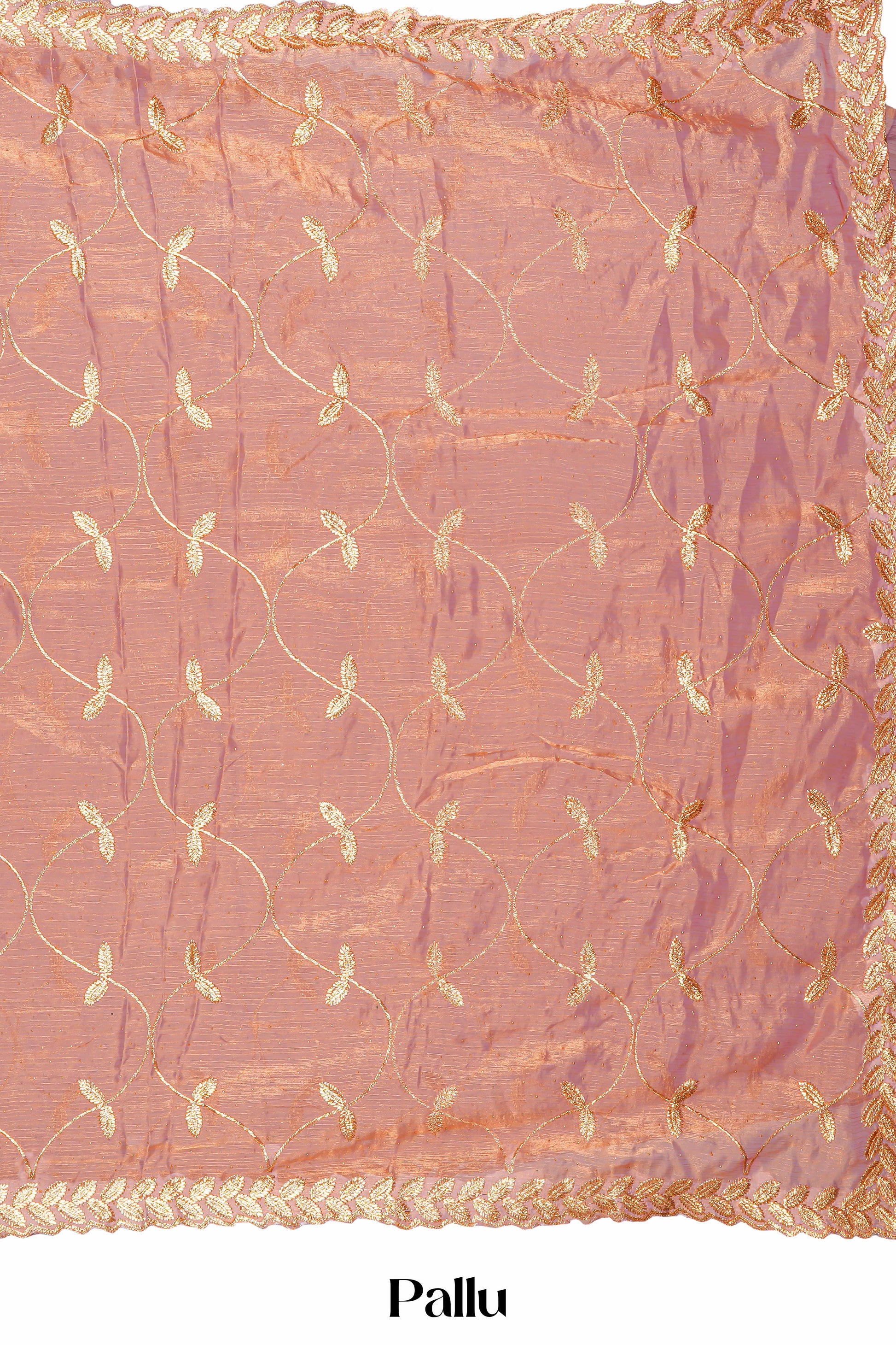 Light Pink Fendi Chiffon Saree Embroidery & Stone Work Across The Body Along With Contrast Blouse