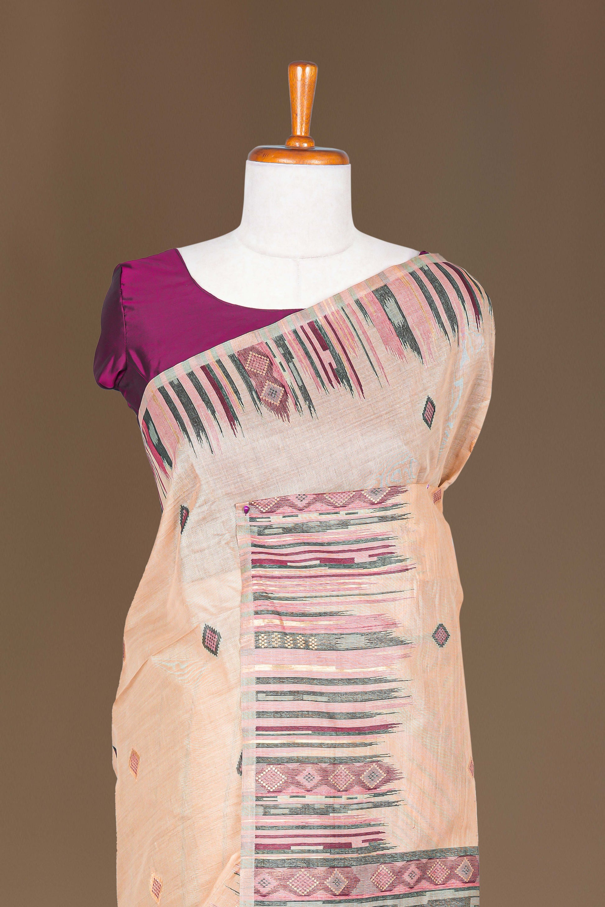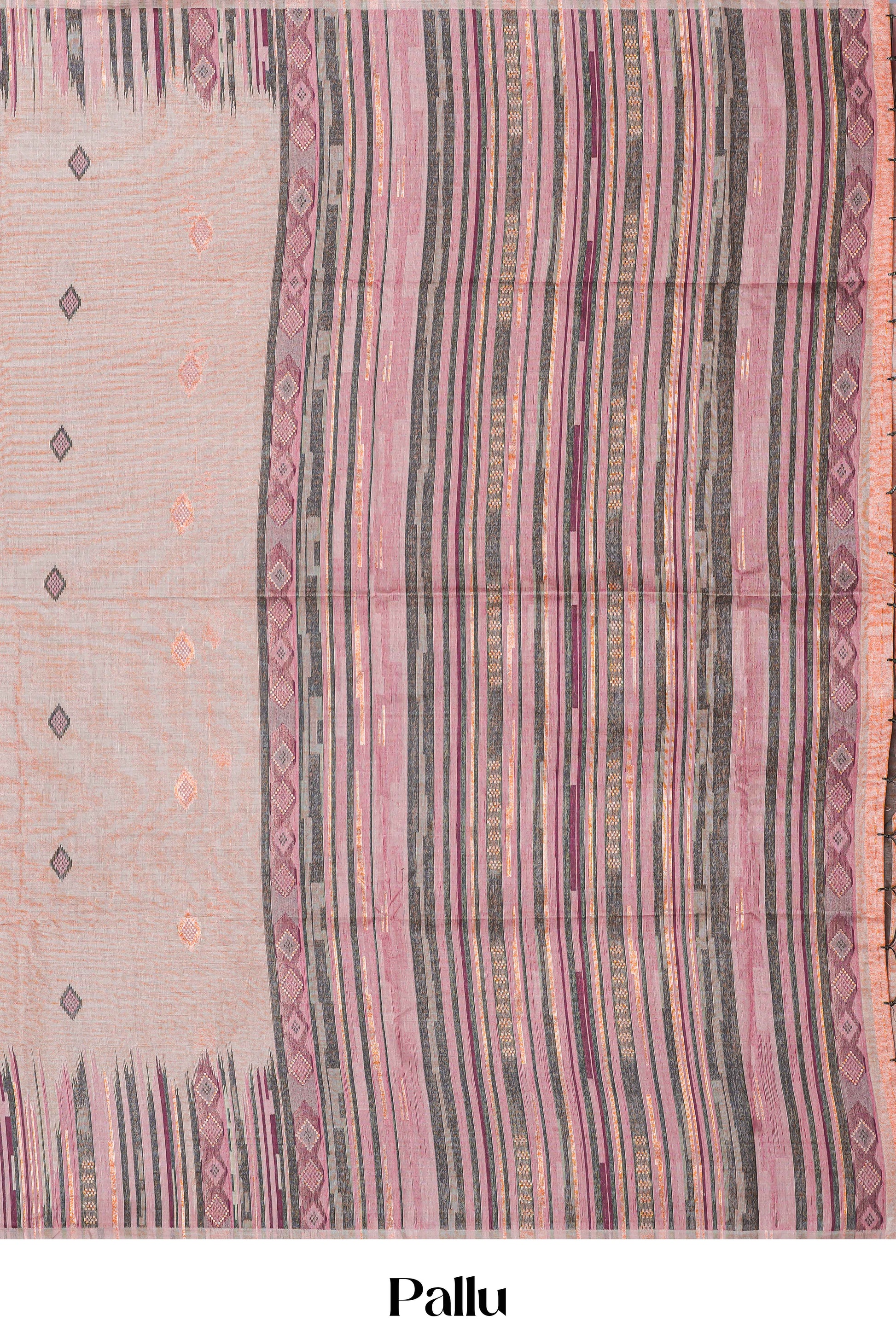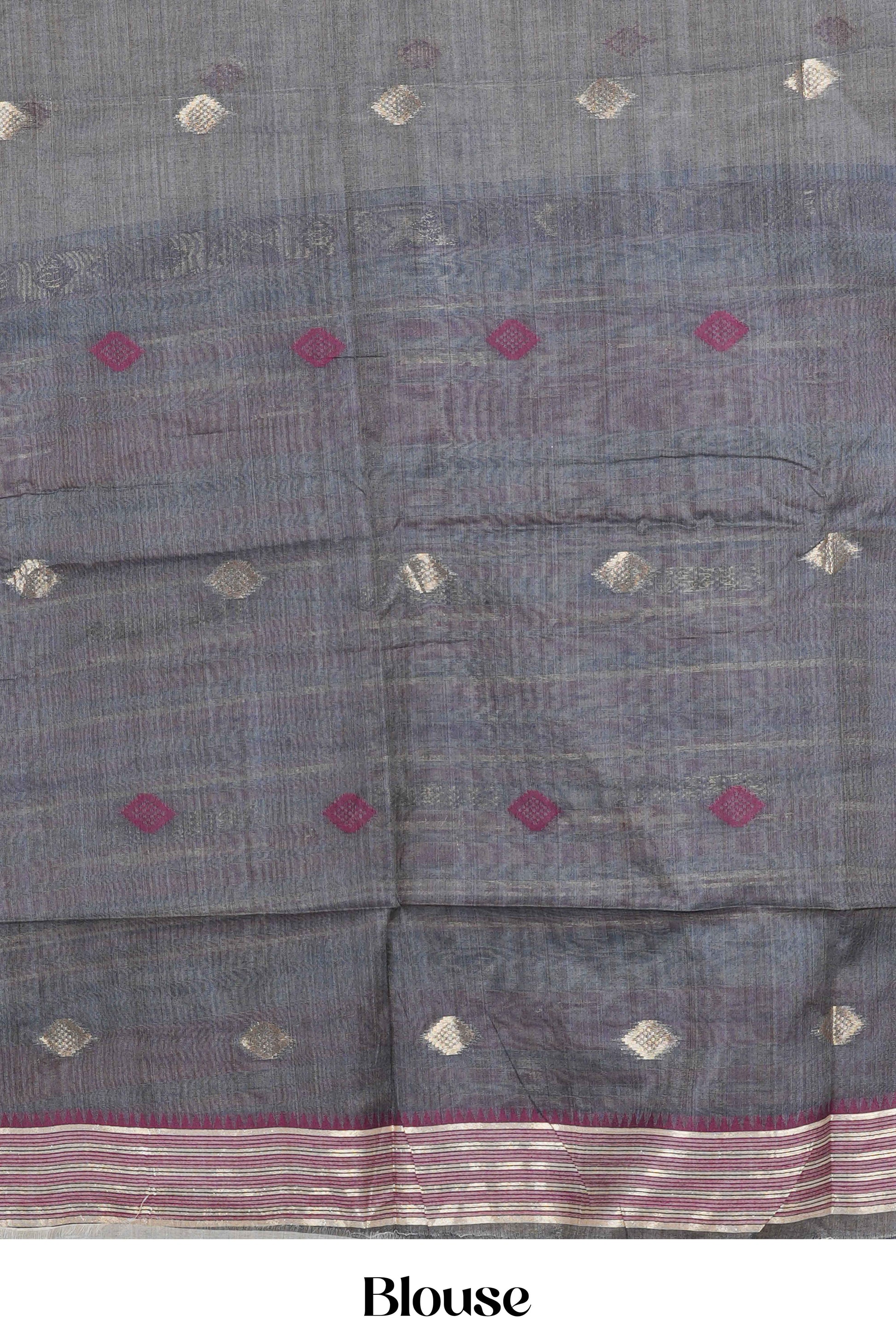 Sandal Munga Cotton Saree Butta Across The Body With Thalampoo Border & Multi Color Stripes Pallu Along With Contrast Blouse