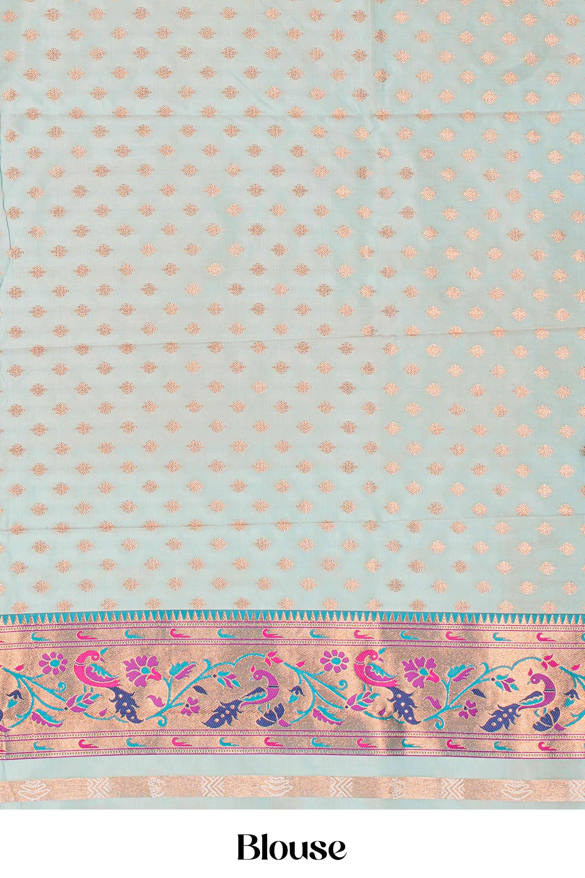 Pastel Green Art Silk Saree Zari Mayil Butta Across The Body With Intricate Paithani Pallu Along With Blouse