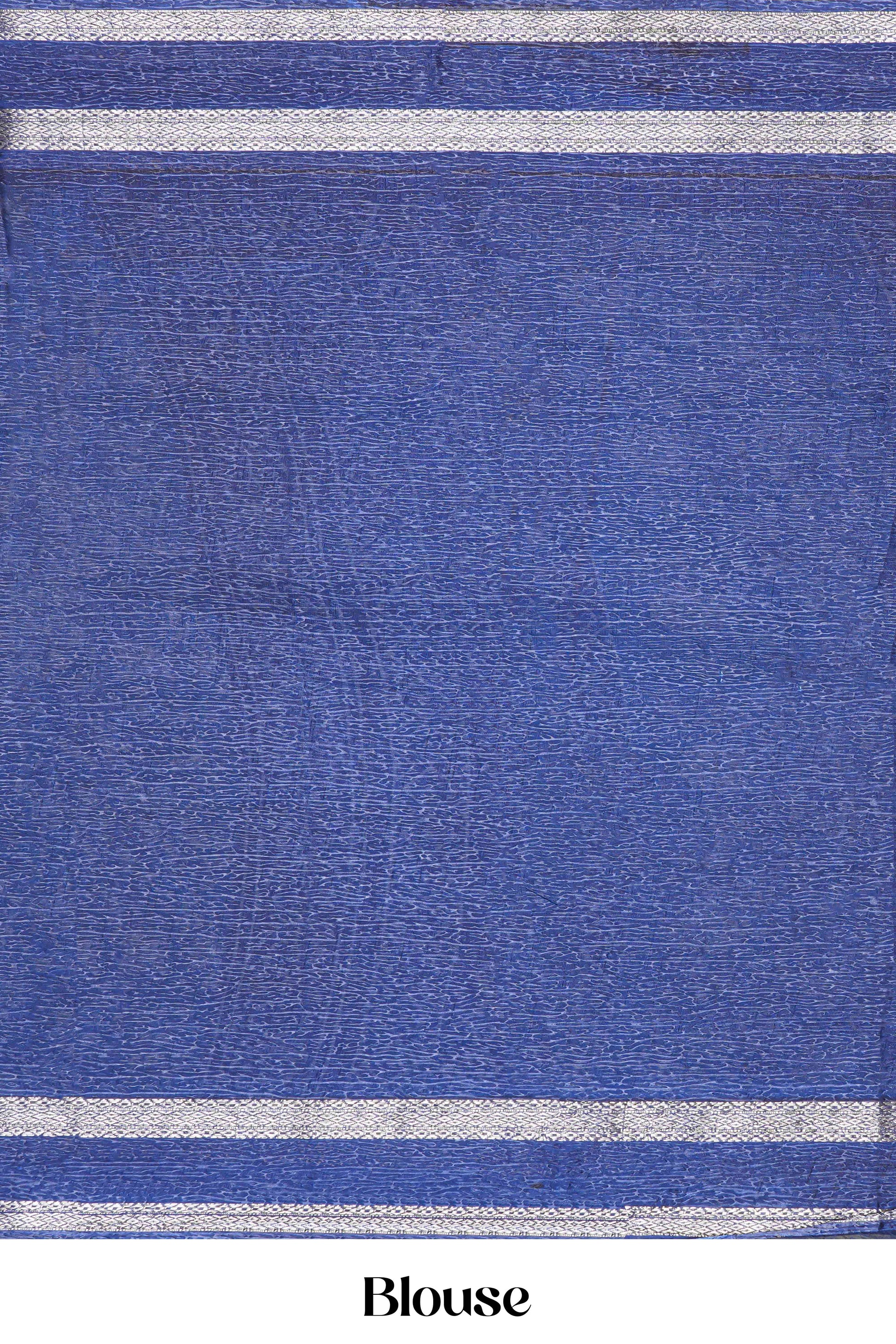 Blue Dola Crush Saree Detailing Floral Printed With Retta Petta Border Along With Blouse