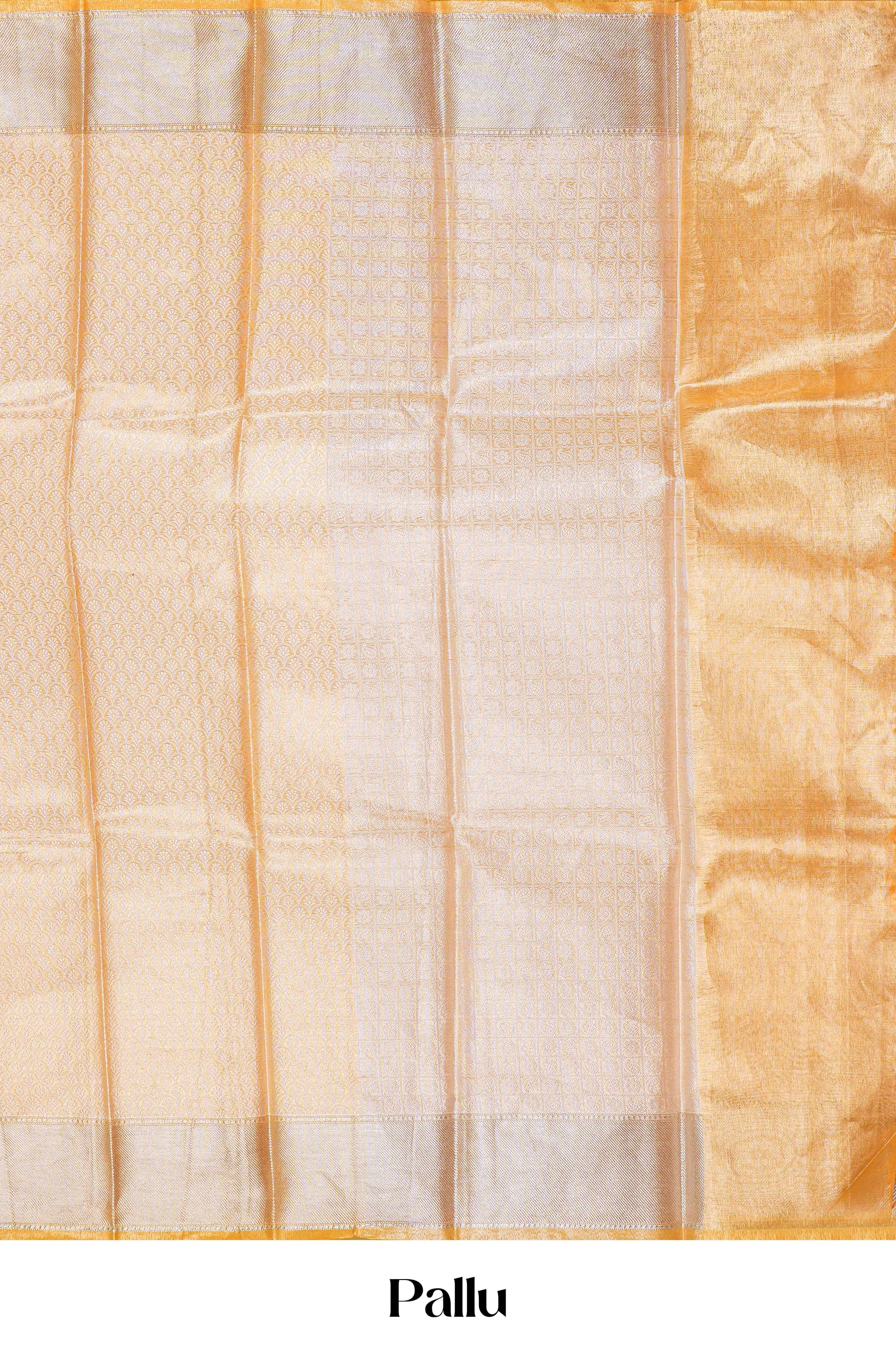 Yellow Tissue Saree Zari Floral Design Across The Body With Zari Border Along With Along With Blouse
